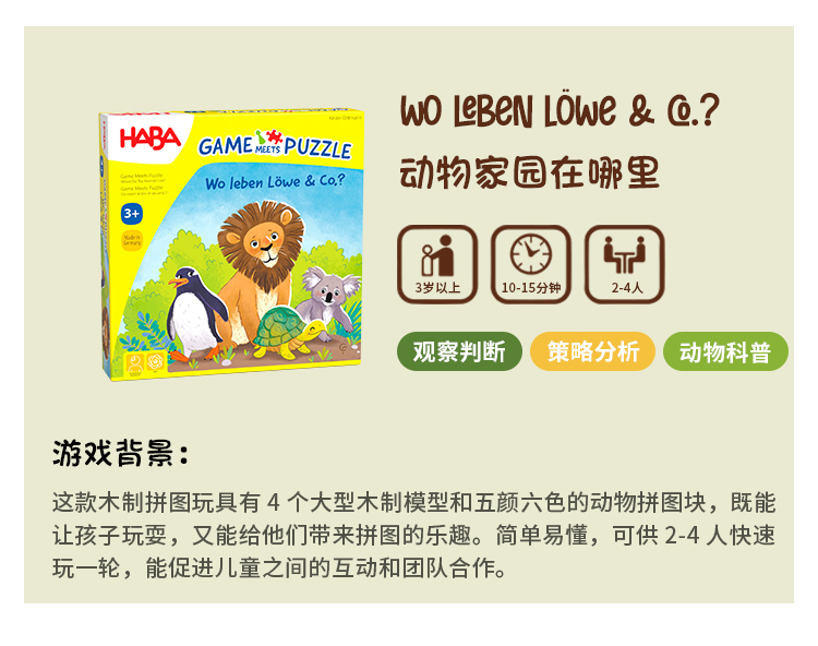HABA 动物家园在哪里 桌游 适合3岁+ 拼图与桌游的完美结合 德国品牌-2011724001