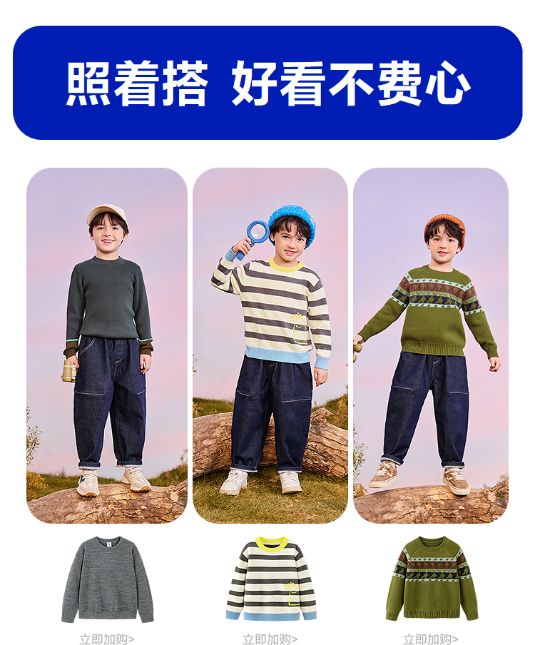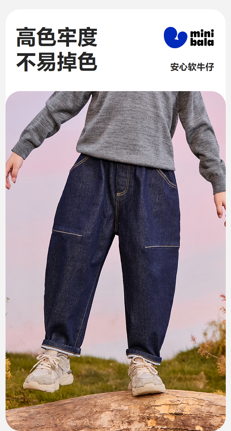 [软牛仔]迷你巴拉巴拉男童儿童裤子2025冬新品亲肤不易褪色萝卜裤