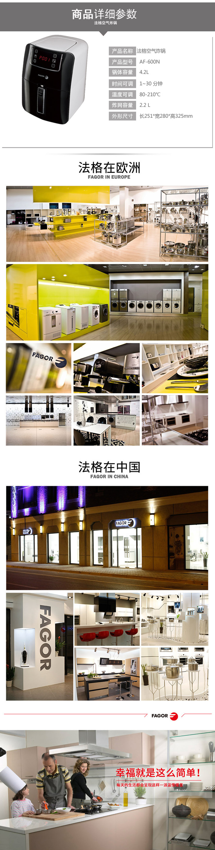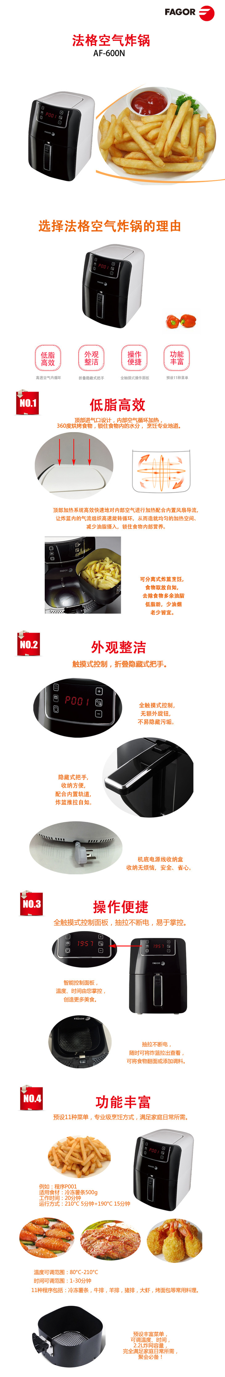 西班牙Fagor/法格 空气炸锅多功能无油家用机AF-600N 空气炸锅