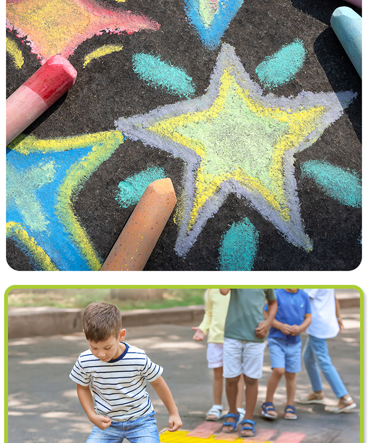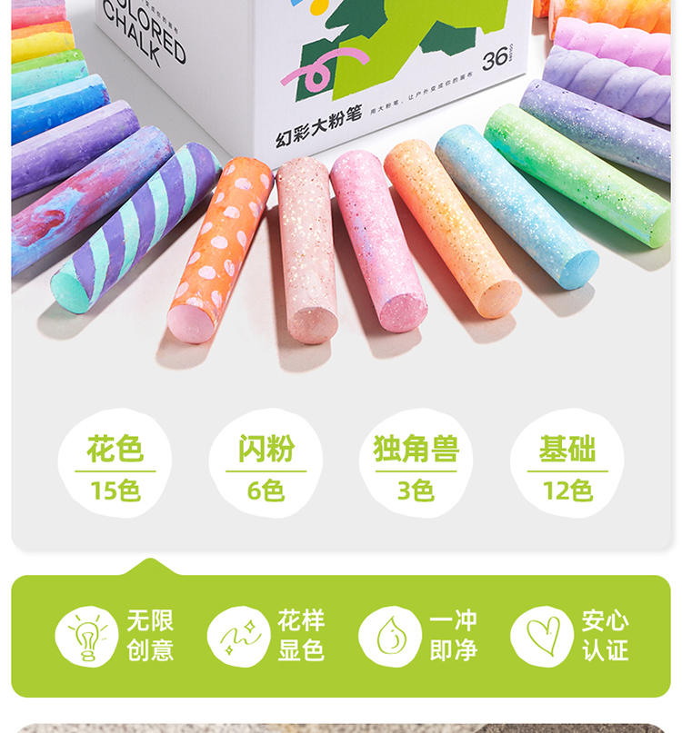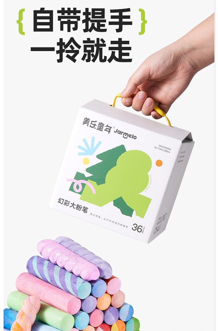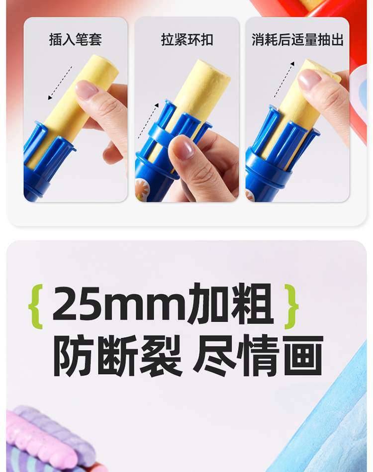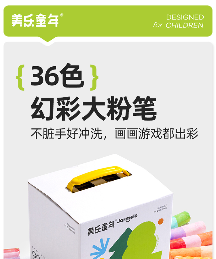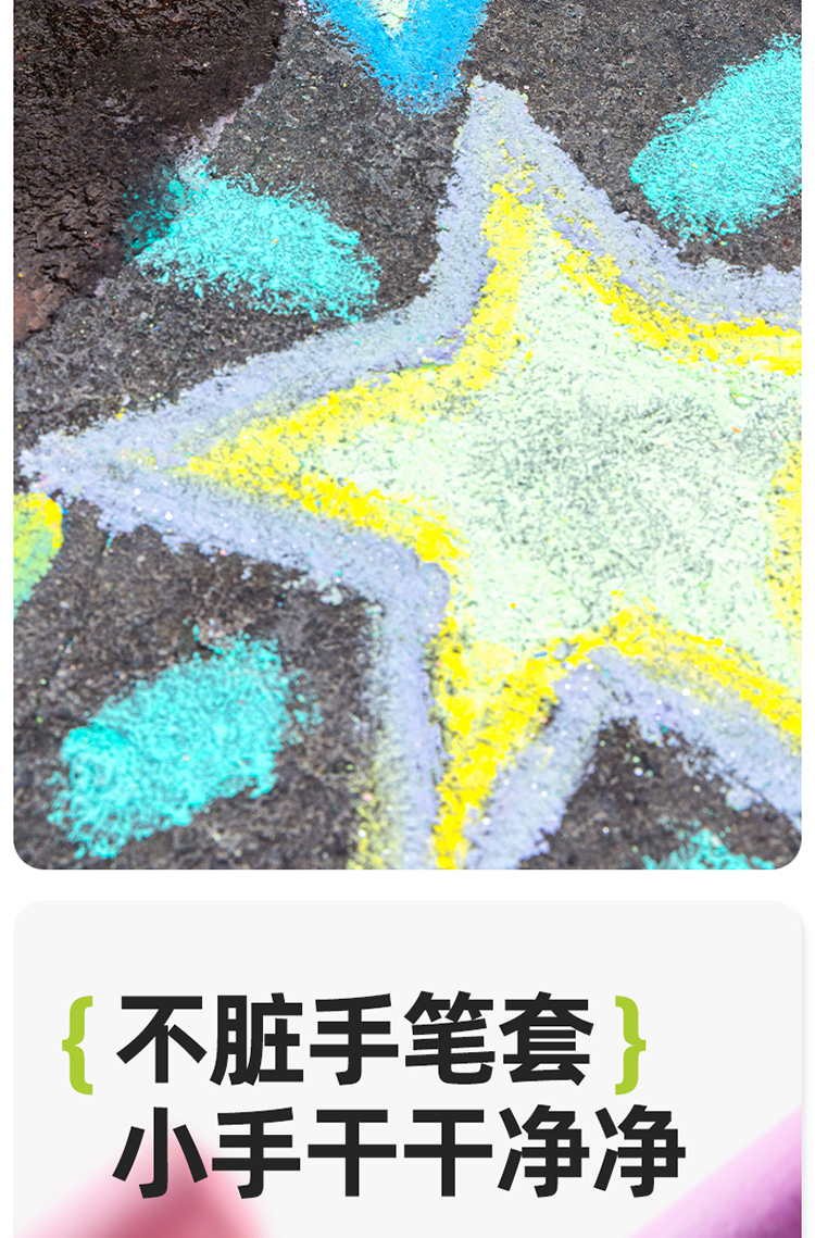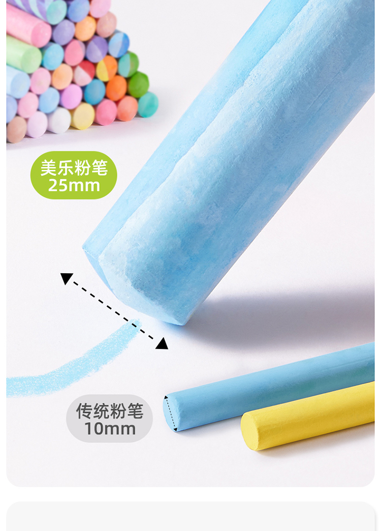 美乐童年幻彩大粉笔水溶性无尘无毒儿童彩色粉笔套鲜艳黑板报不脏手板报专用白色粉笔手指保护套粗粉笔握笔器