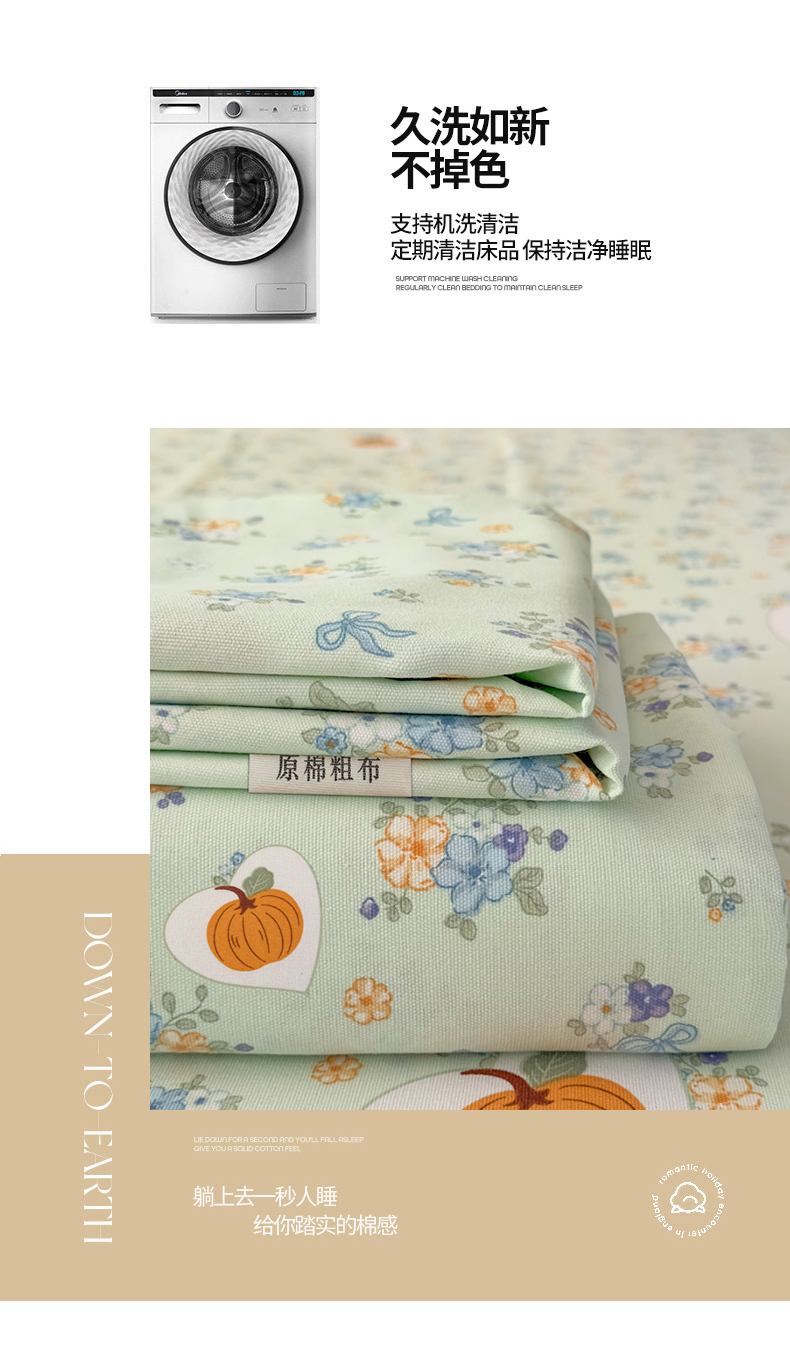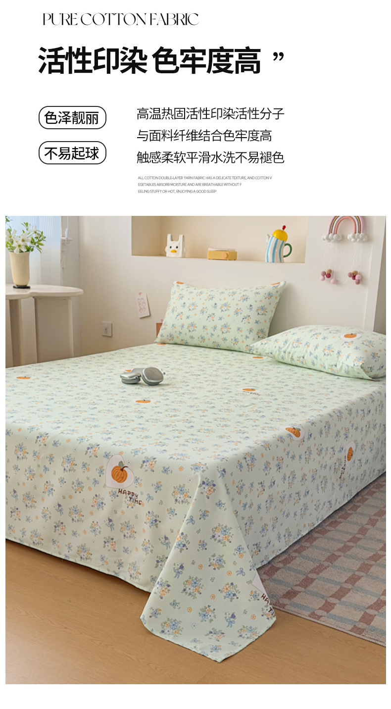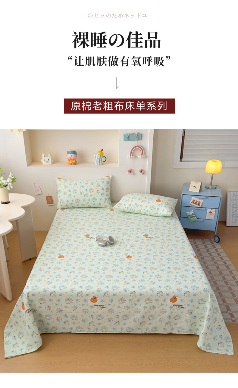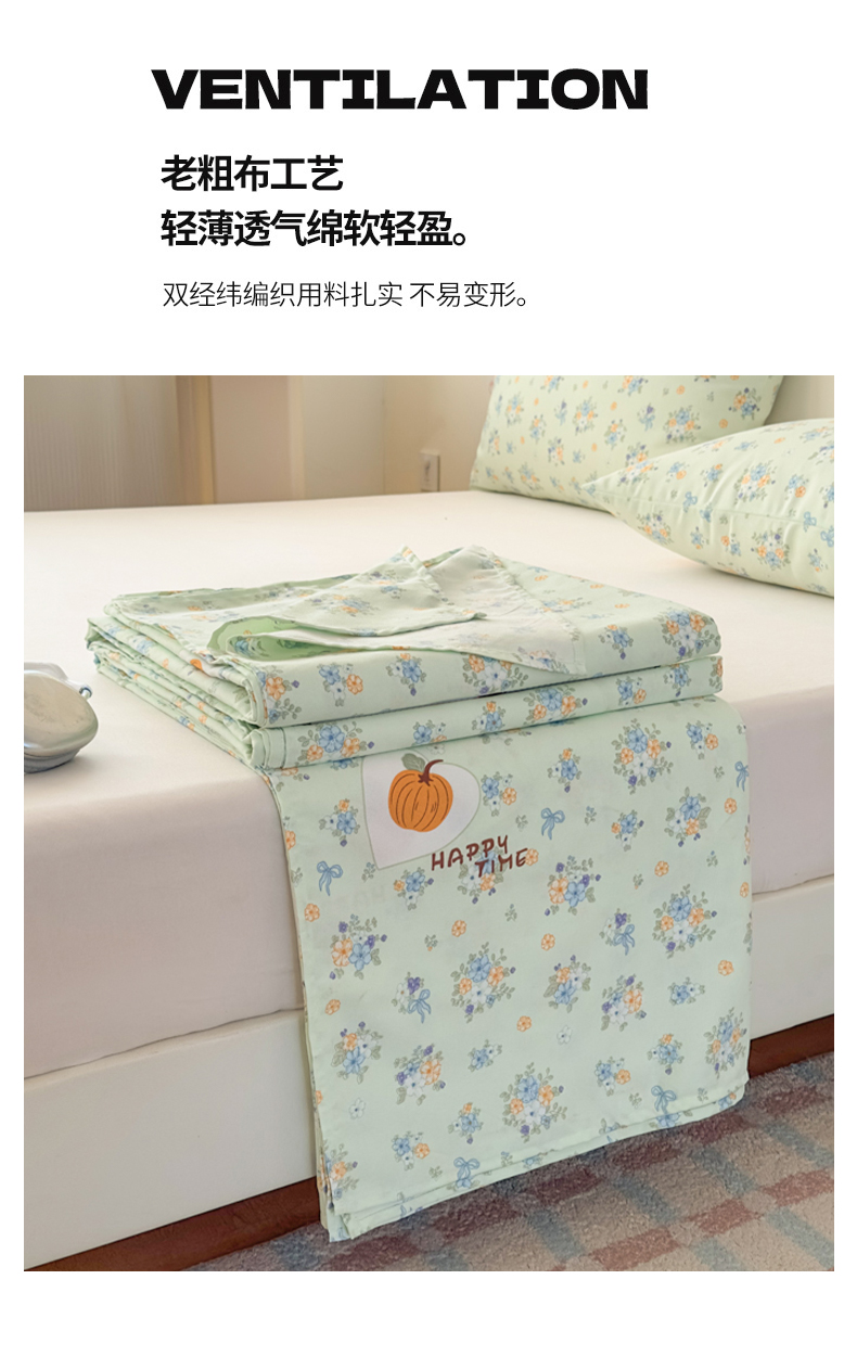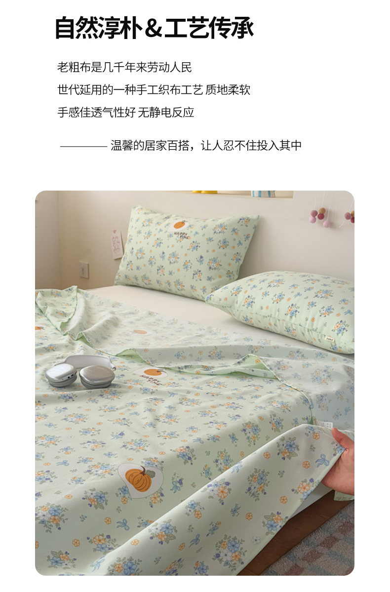 【品牌直发】加倍生活 全新升级原棉老粗布细纱工艺床单凉席三件套-花笺系列 7色可选yc0318020