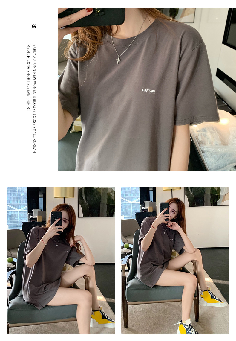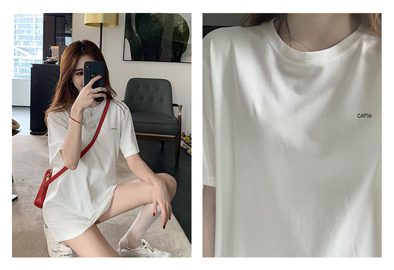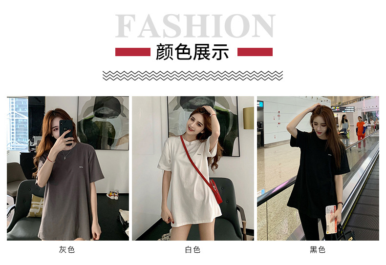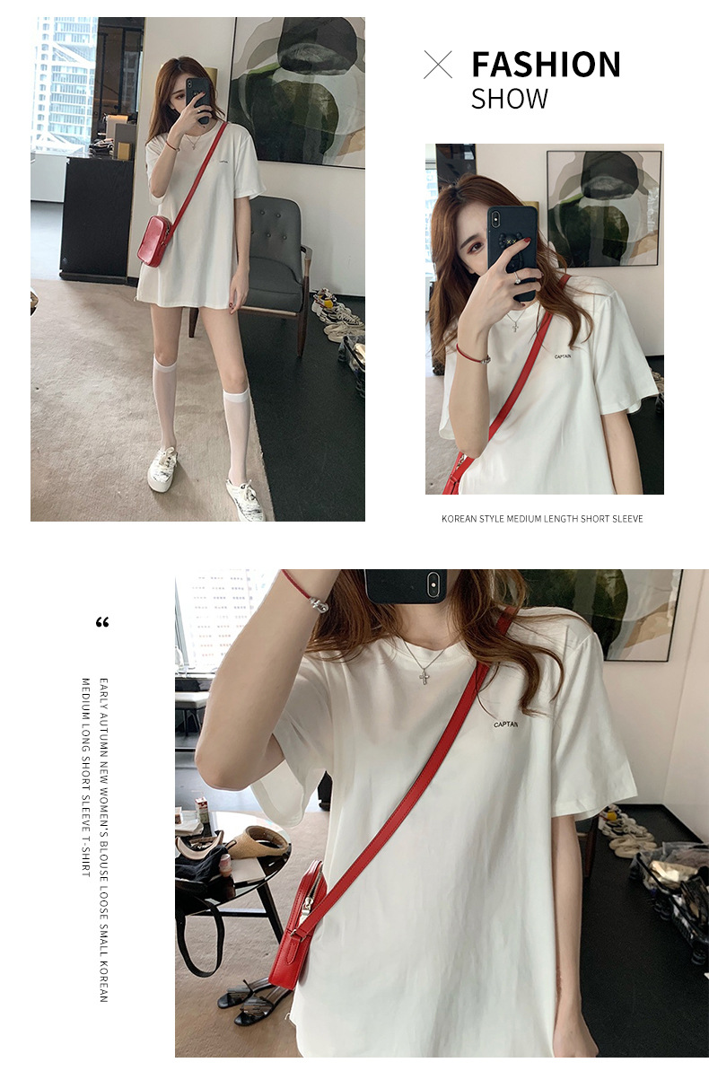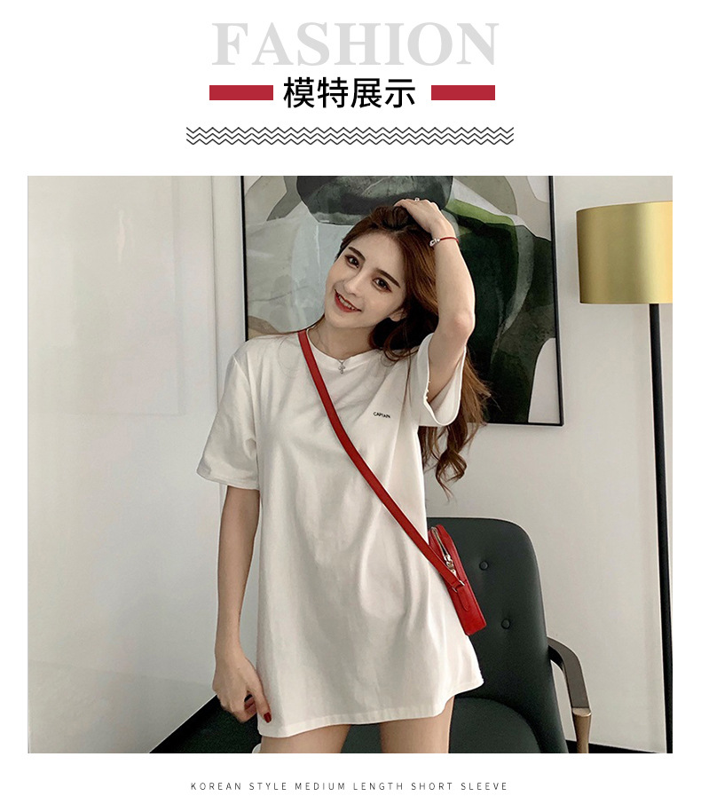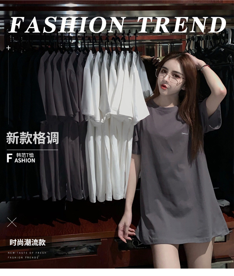 【夏季新款!女神必备~】韩版宽松中长款短袖T恤,时尚潮流款,简洁大方,舒适自在,女学生衣服女装,让你瞬间引领潮流!