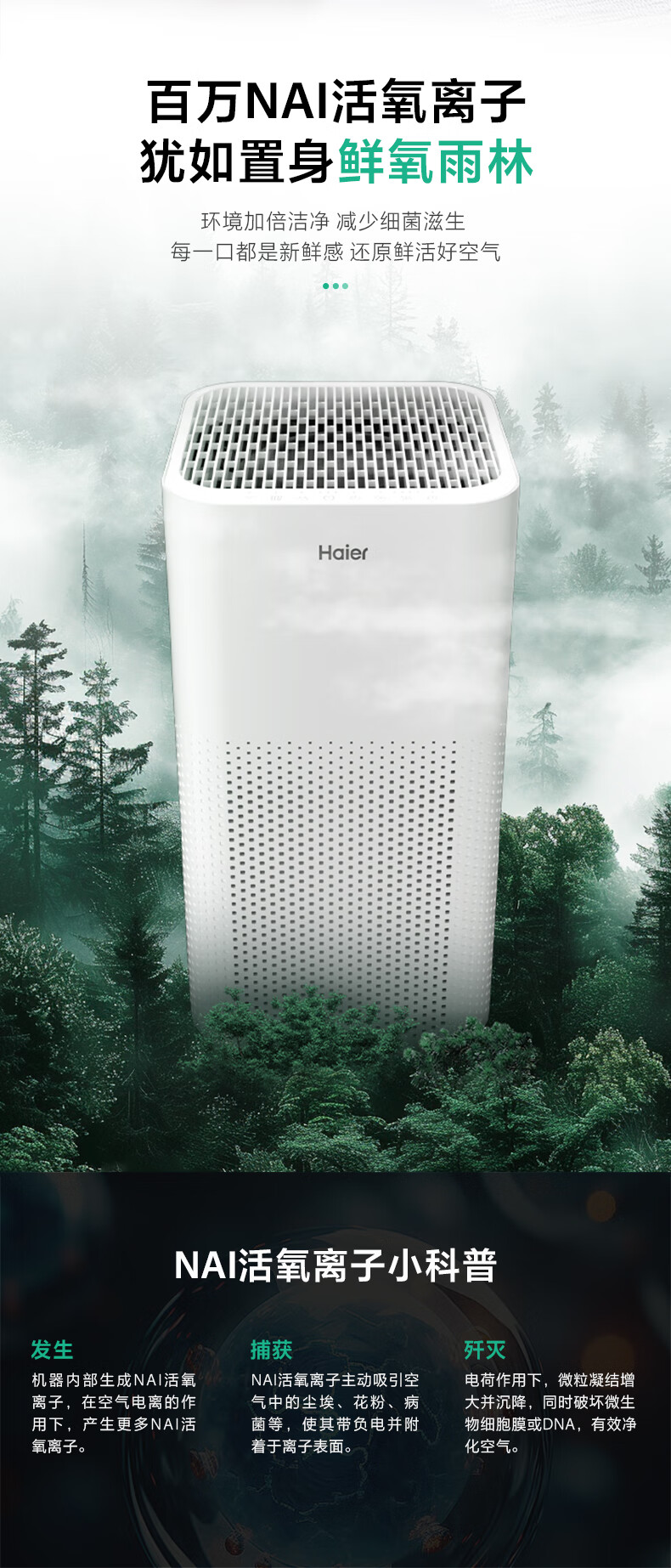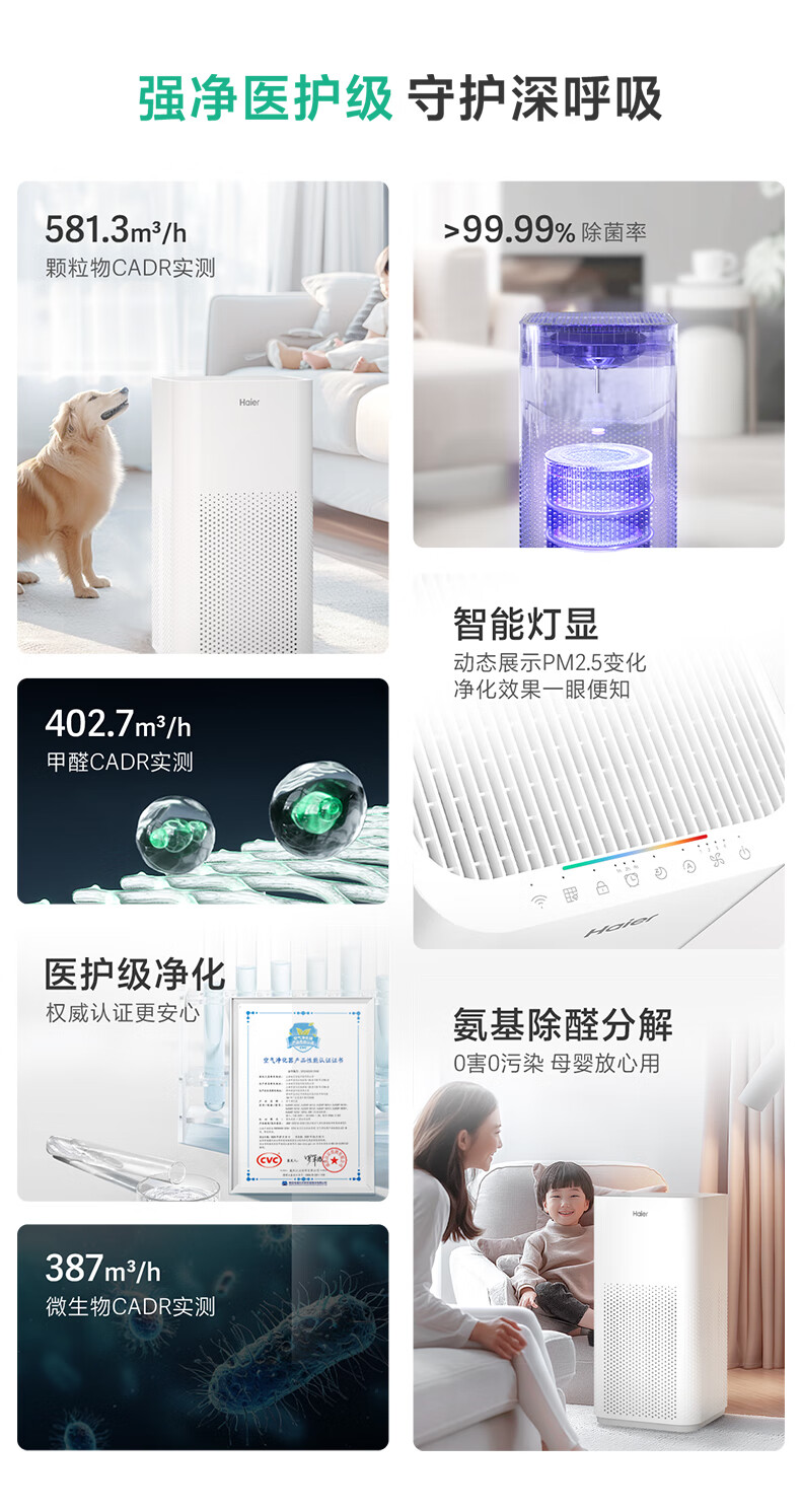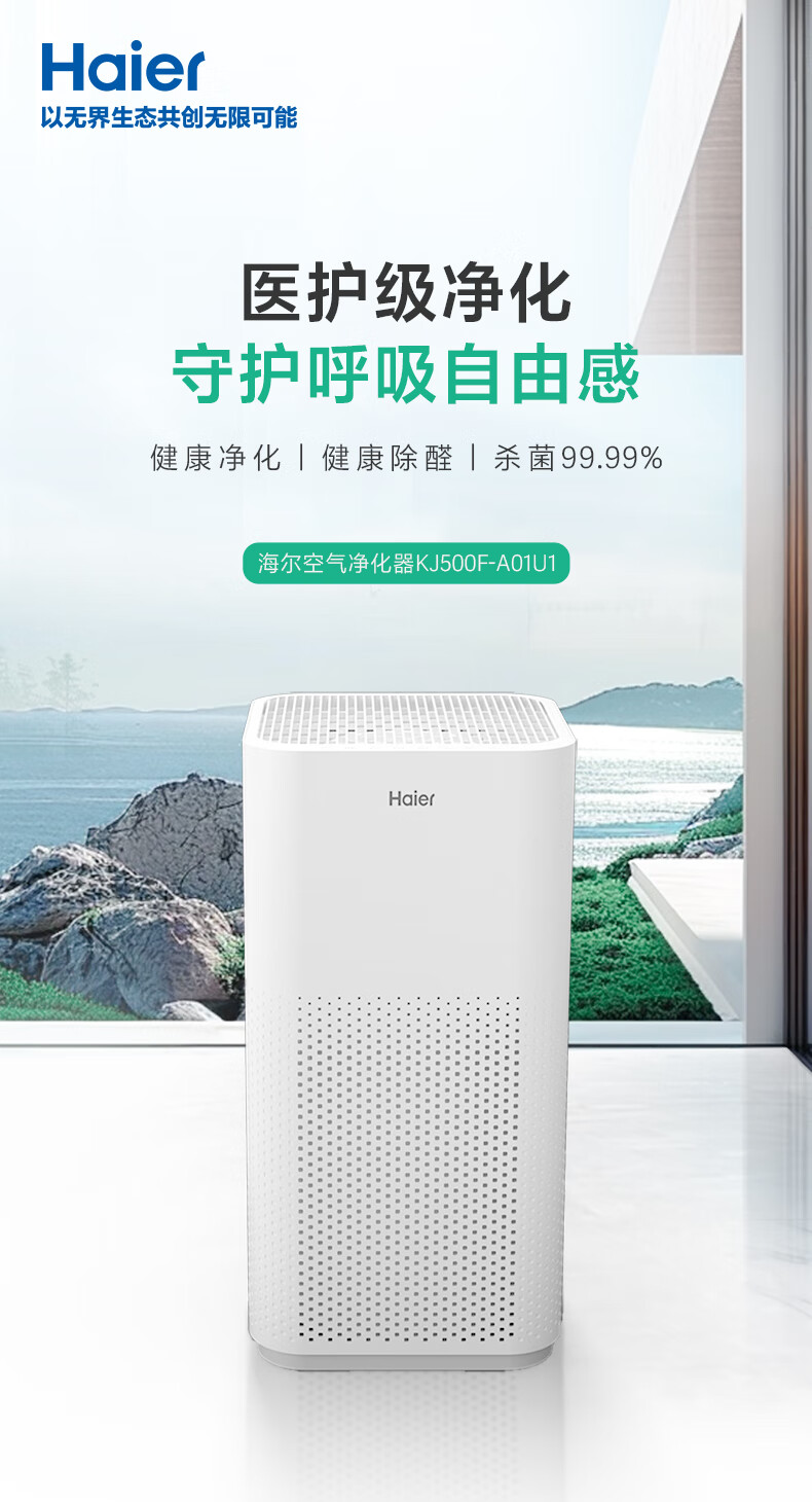海尔(Haier)空气净化器除甲醛家用除烟味除猫毛UV除菌家用母婴小型负离子净化机KJ500F-A01U1