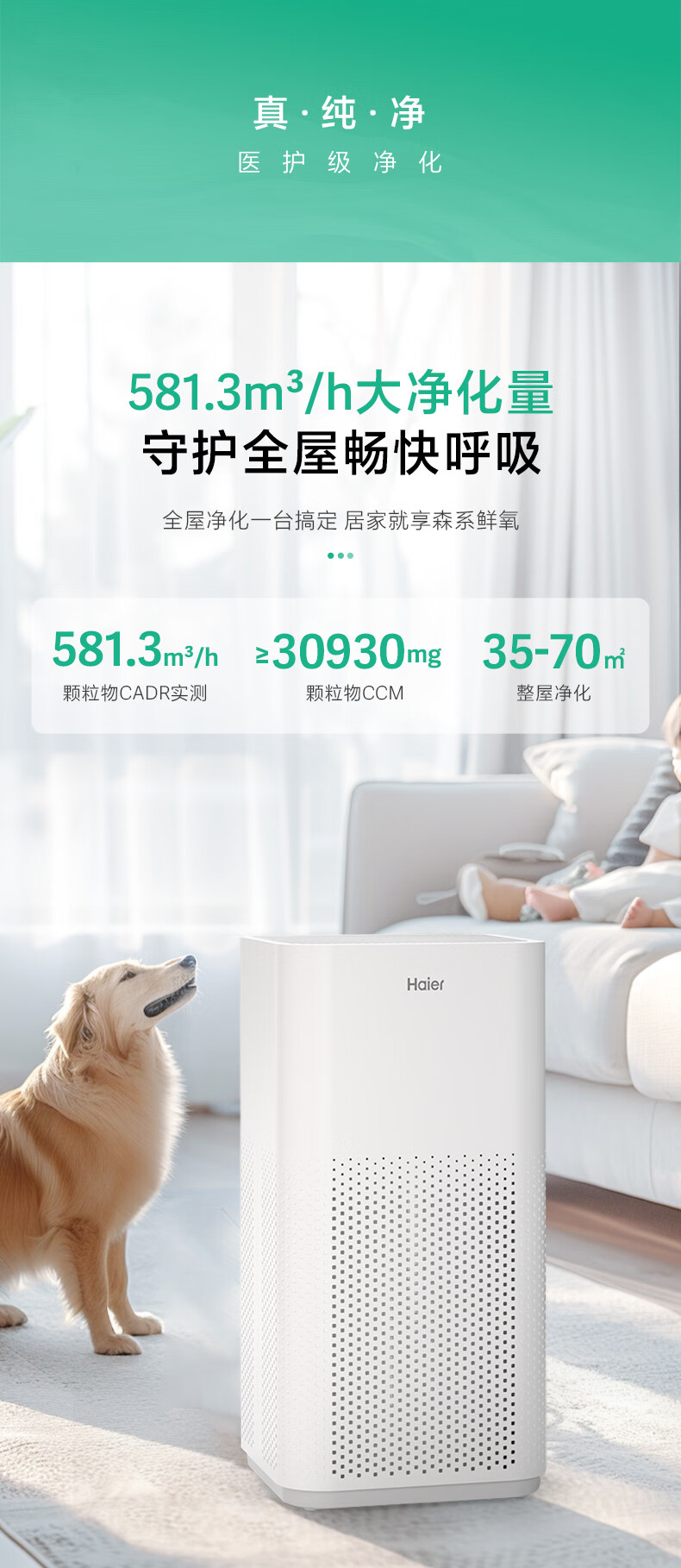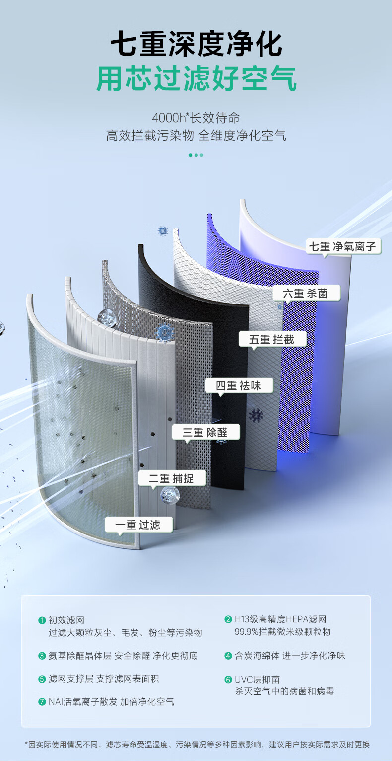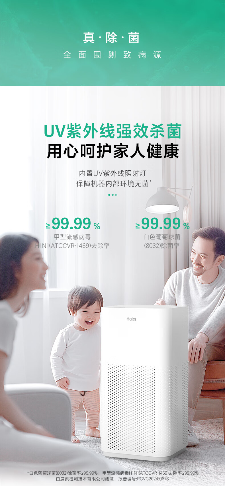 海尔(Haier)空气净化器除甲醛家用除烟味除猫毛UV除菌家用母婴小型负离子净化机KJ500F-A01U1