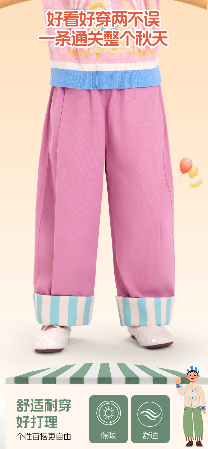年衣童装儿童长裤25秋冬新款男女童直筒裤厚实保暖戏境巡游长裤