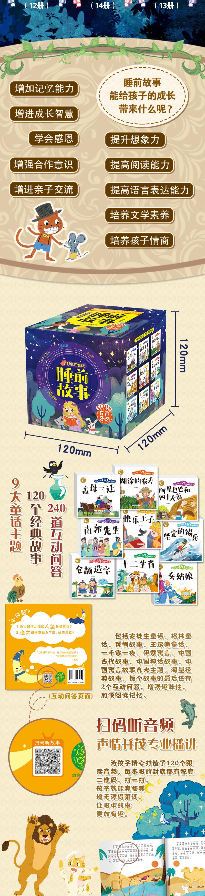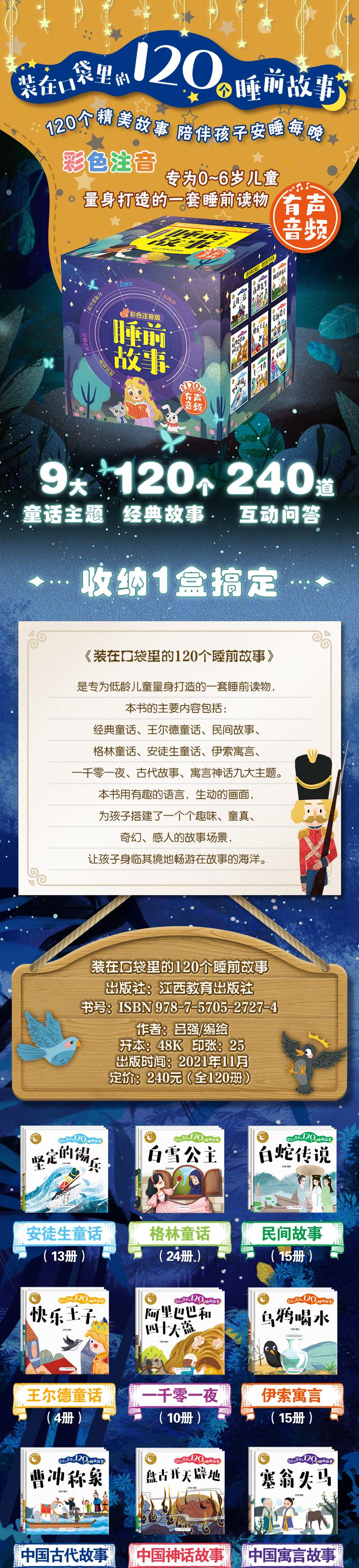 【3-6岁】《装在口袋里的120个睡前故事(120册)》礼盒包装,小开本口袋书设计,全注音,附赠120篇音频