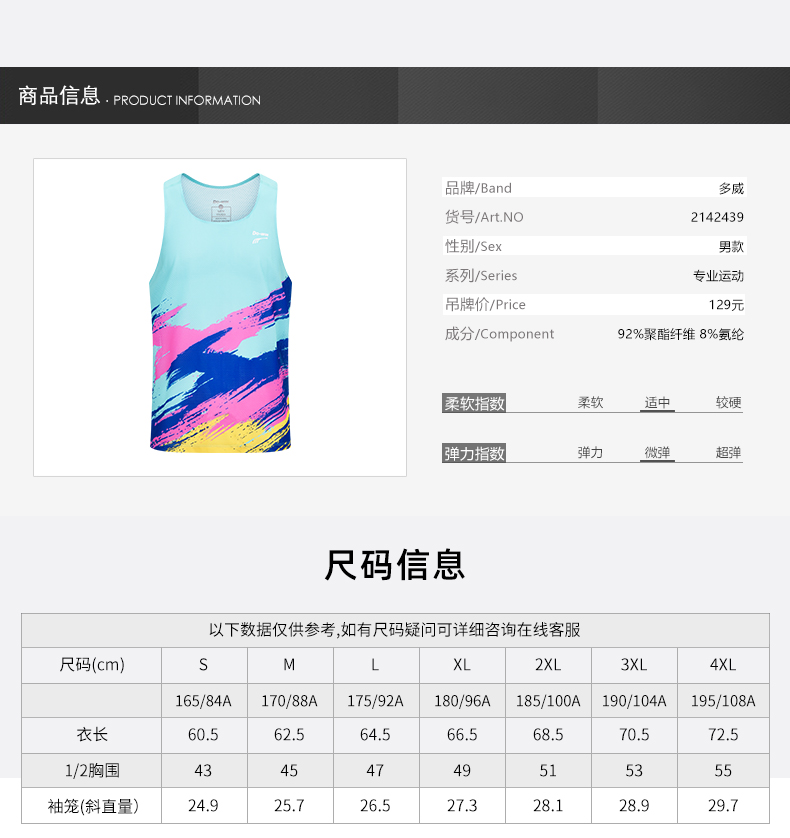 多威背心新款男士跑步背心轻薄透气运动背心2142439