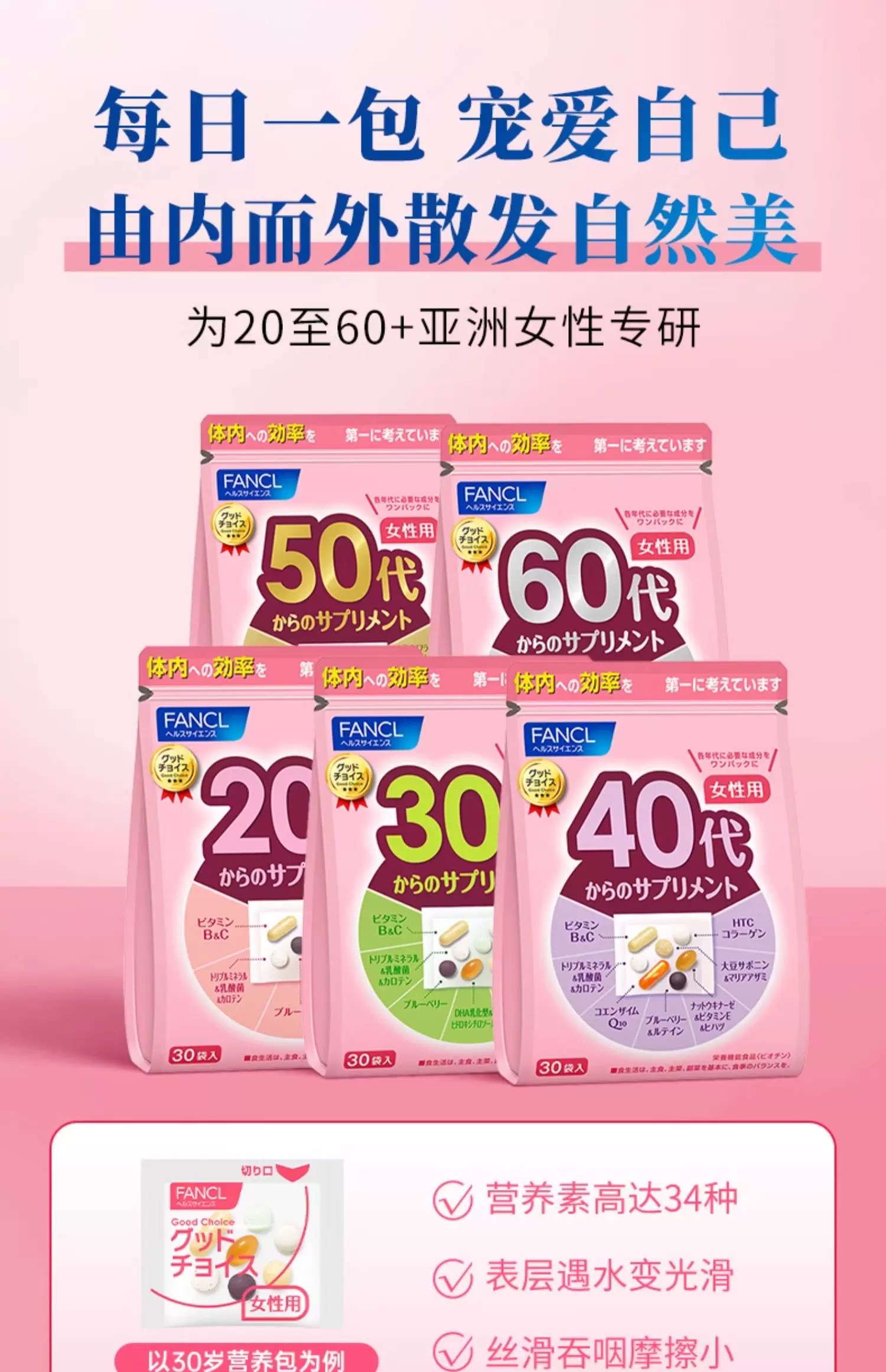日本 FANCL芳珂 每日维生素 30袋/包