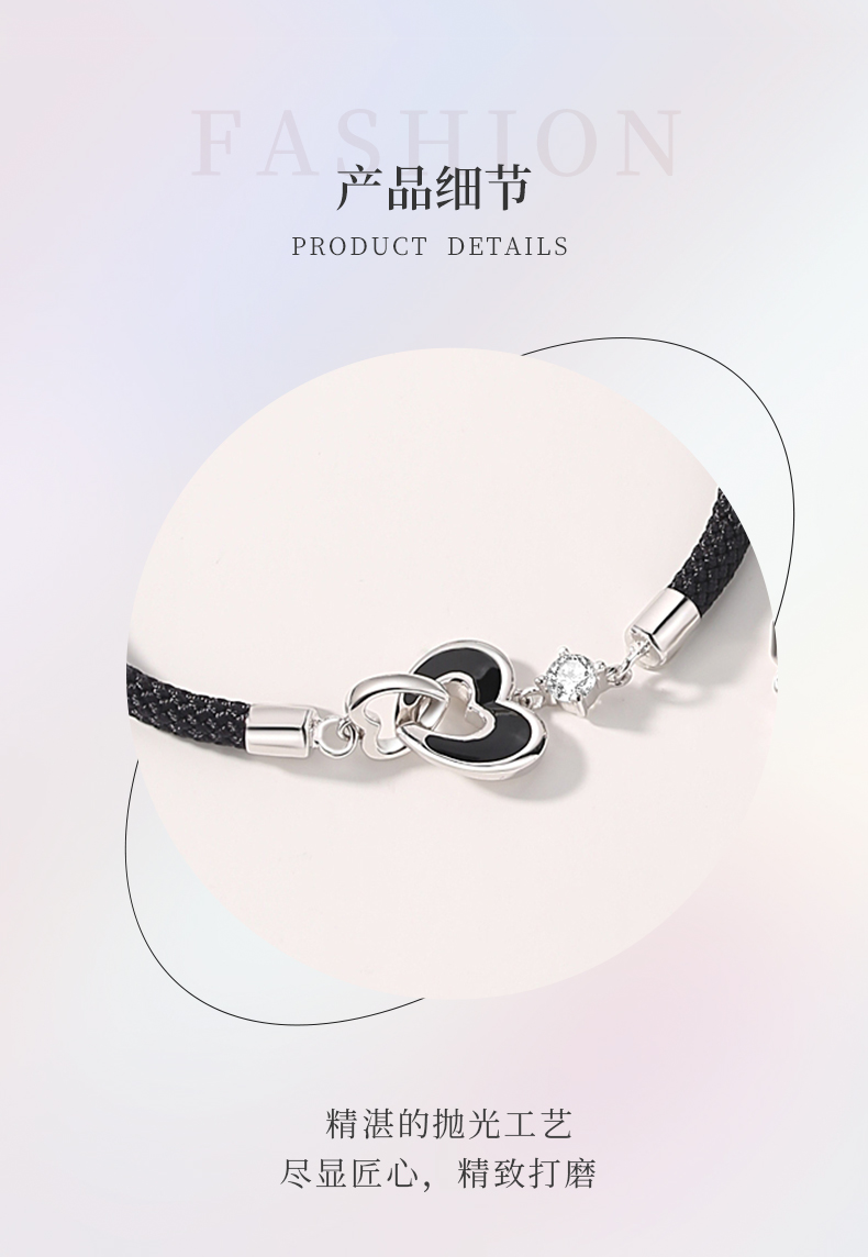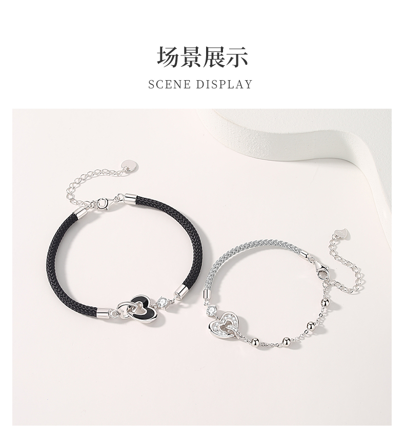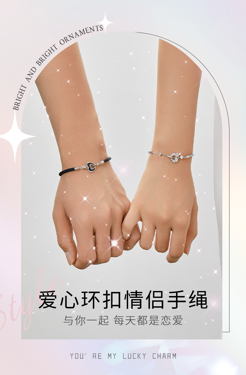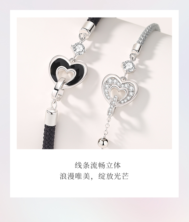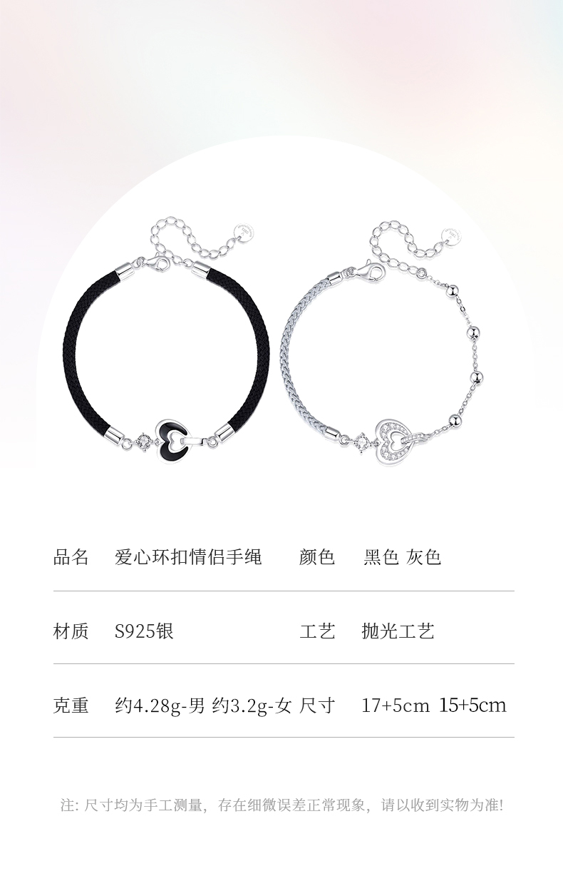 卡蒂罗KADER 爱心环扣情侣手链 925银爱心男女友造型设计配饰一对精致氛围感拼接链 小众简约百搭甜蜜爱恋