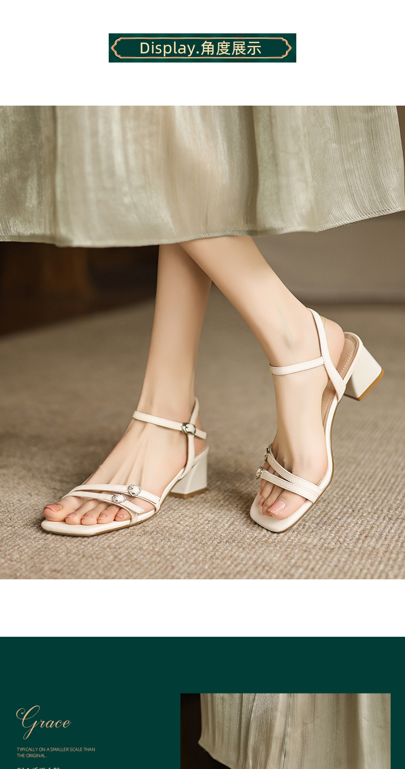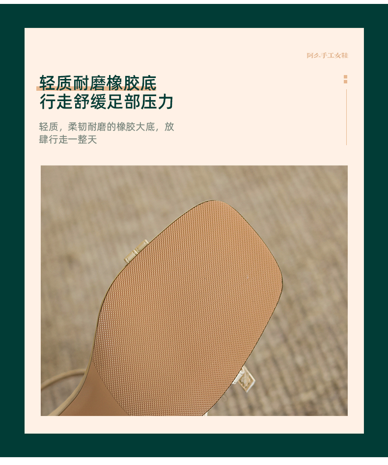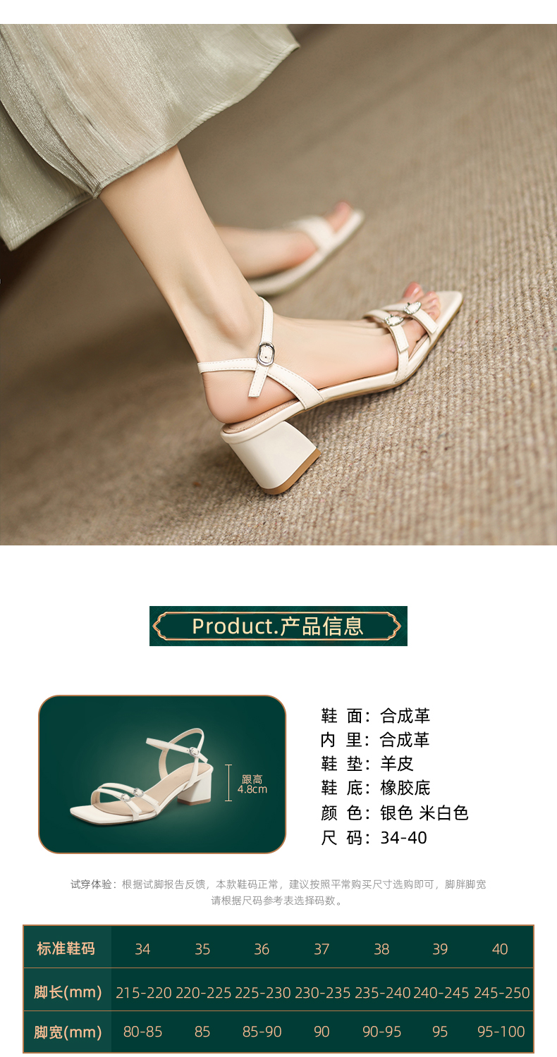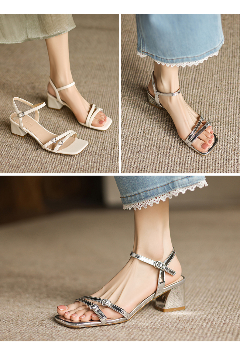 阿么手工女鞋方头仙女风一字带凉鞋不累脚夏季银色百搭中跟4.8CM