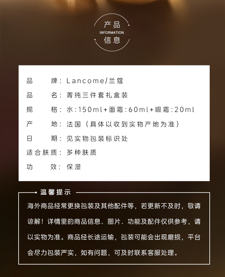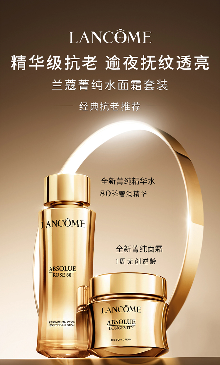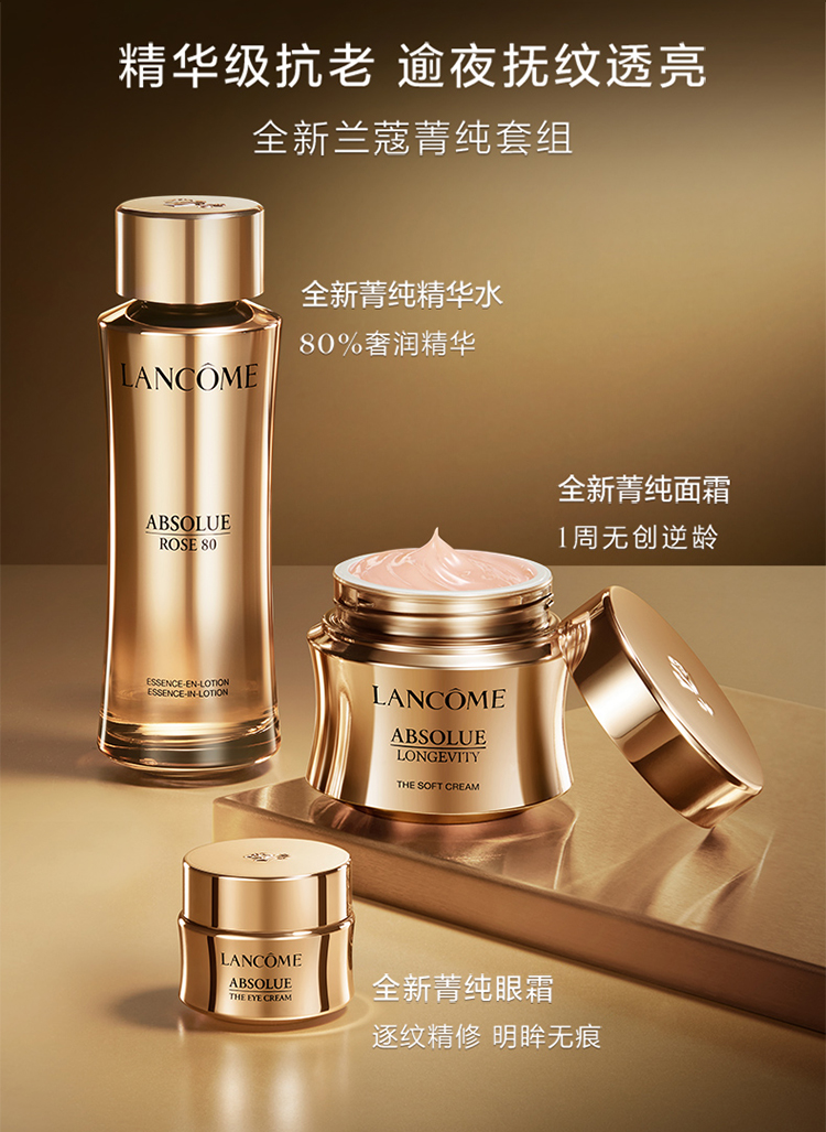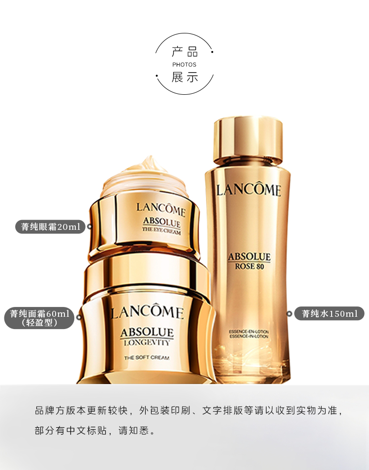 兰蔻菁纯三件正装礼盒款(菁纯玫瑰水150ml+菁纯眼霜20ml+菁纯清爽面霜60ml) 礼盒装 节日送礼必备