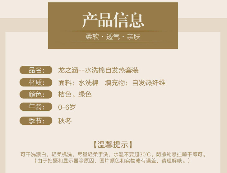 龙之涵自发热吸湿棉服套装、马甲轻薄保暖舒适透气A类标准发热纤维