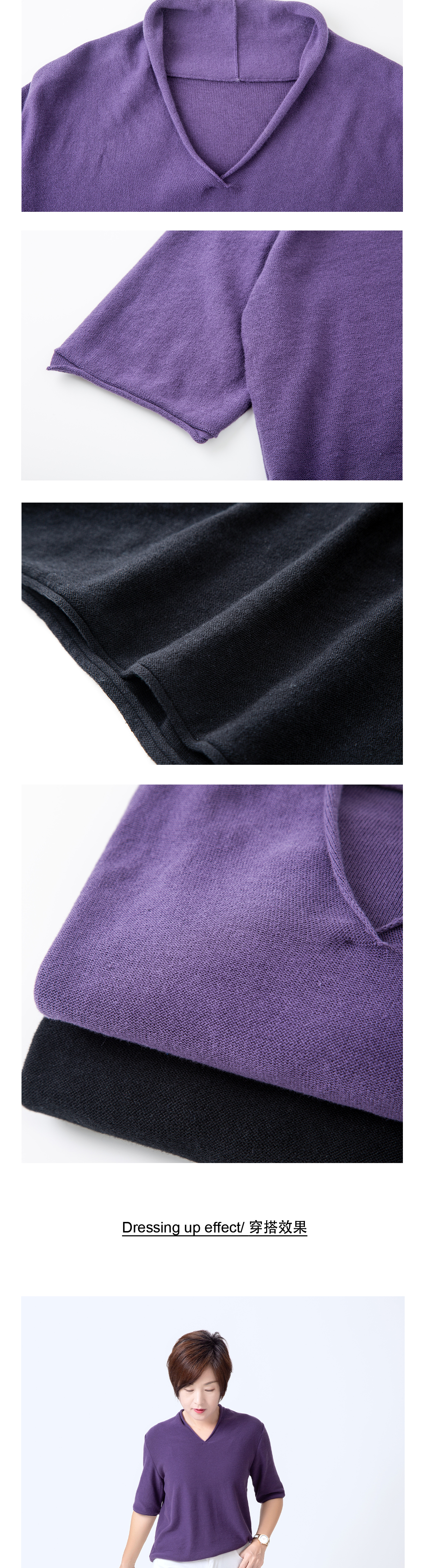 V领五分袖针织衫