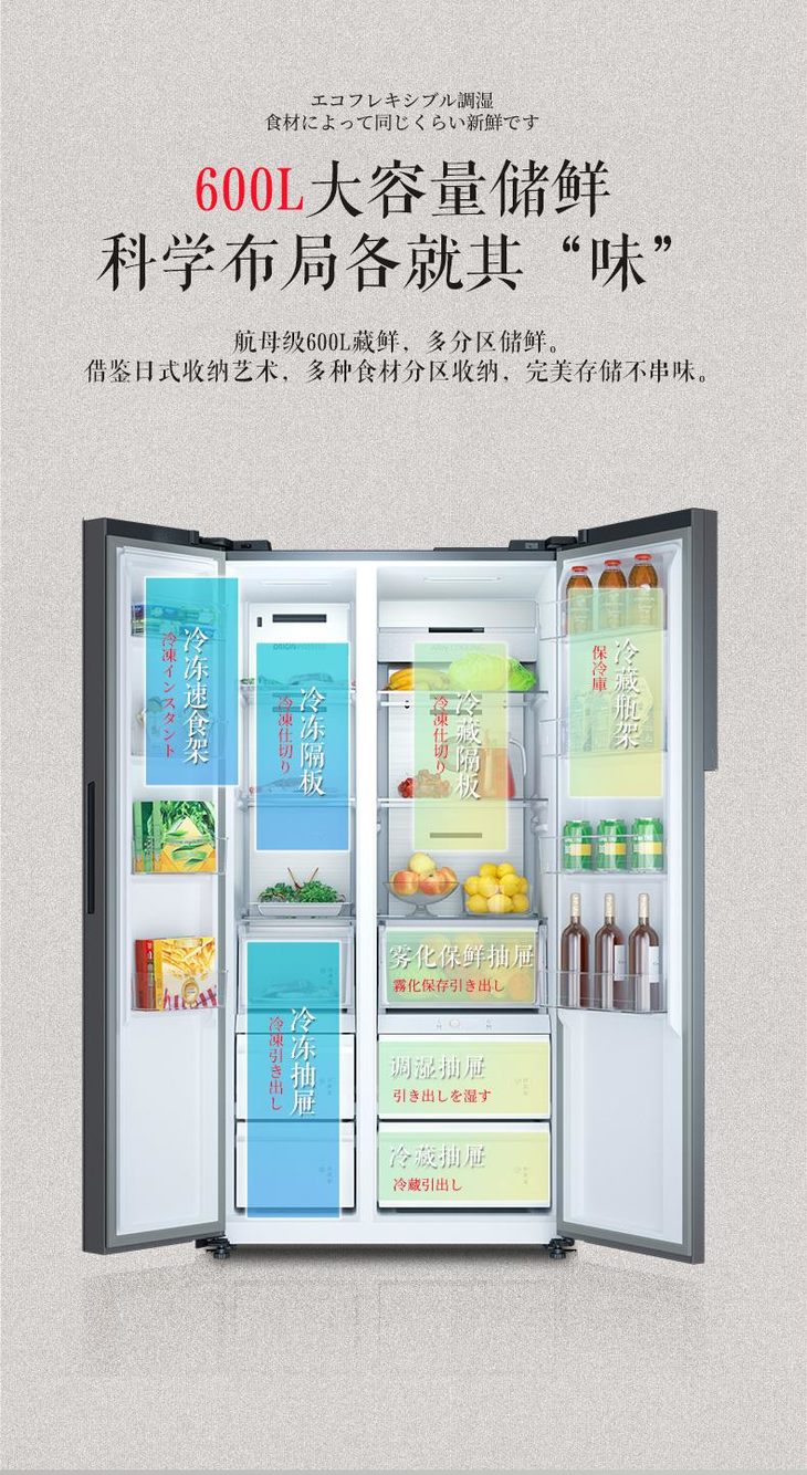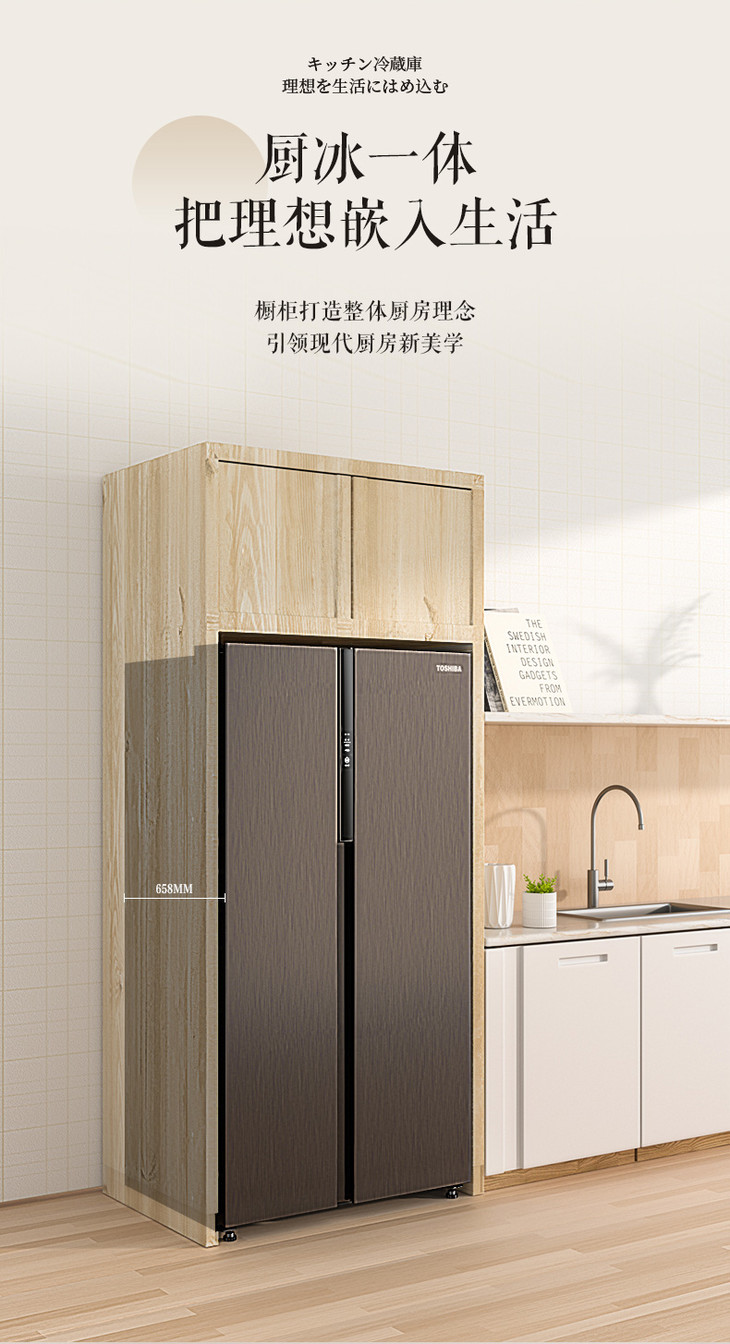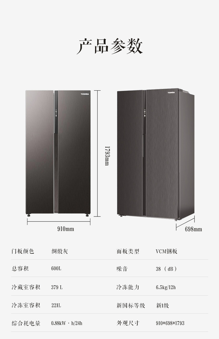 东芝冰箱(12993)600升双门对开门智能家电生态柔感调湿雾化保鲜电冰箱GR-RS625WE-PM137绸缎灰