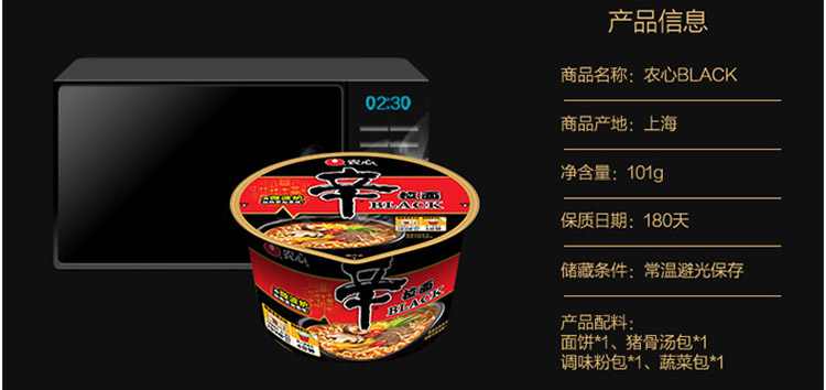 农心(NONG SHIM) 辛拉面Black 豚骨汤风味方便面(可微波炉加热食用) 碗面泡面速食零食 101g 张新成推荐