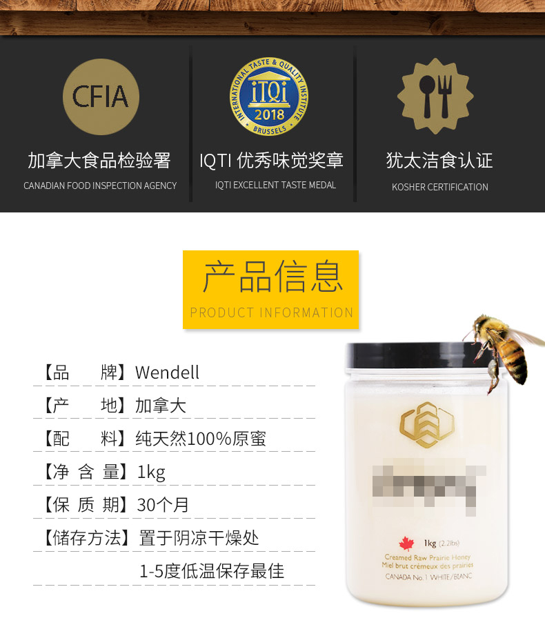 加拿大wendell 温德尔庄园白蜜 蜂蜜瓶装 #山东仓