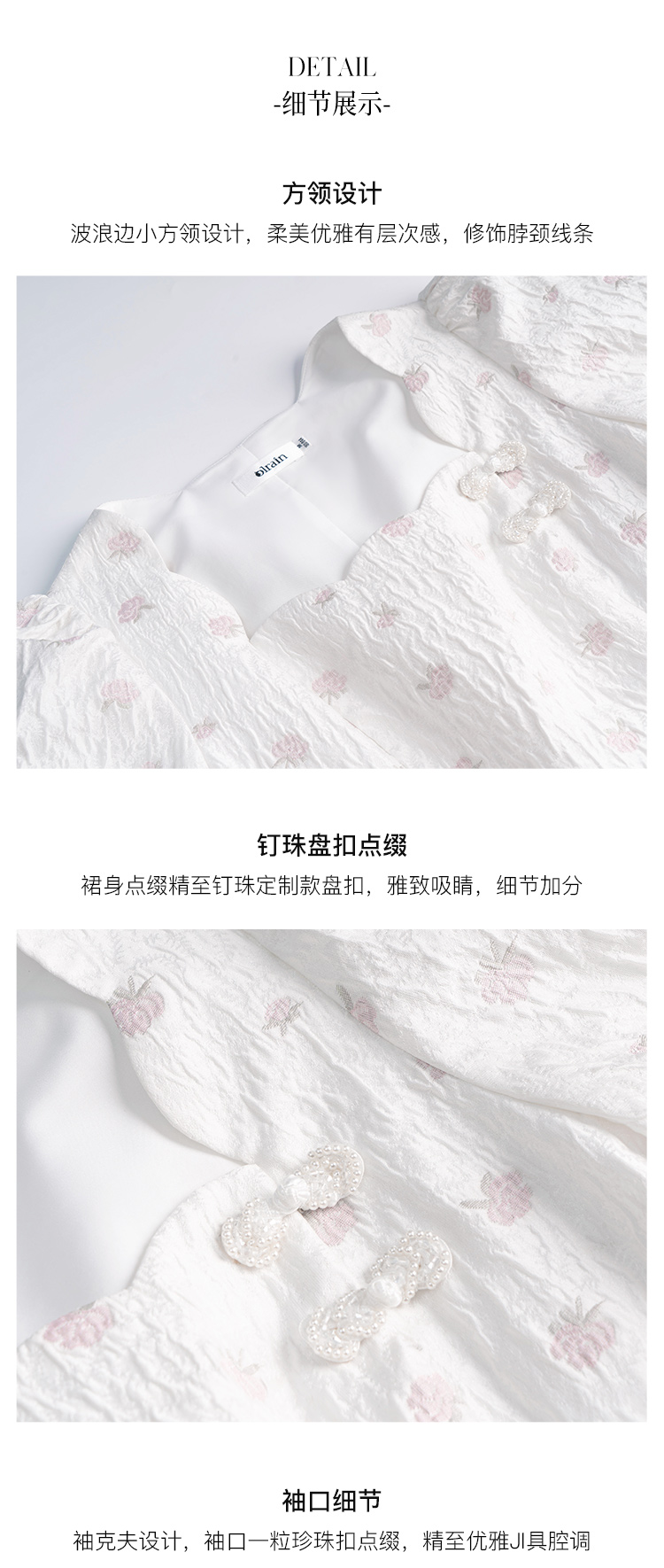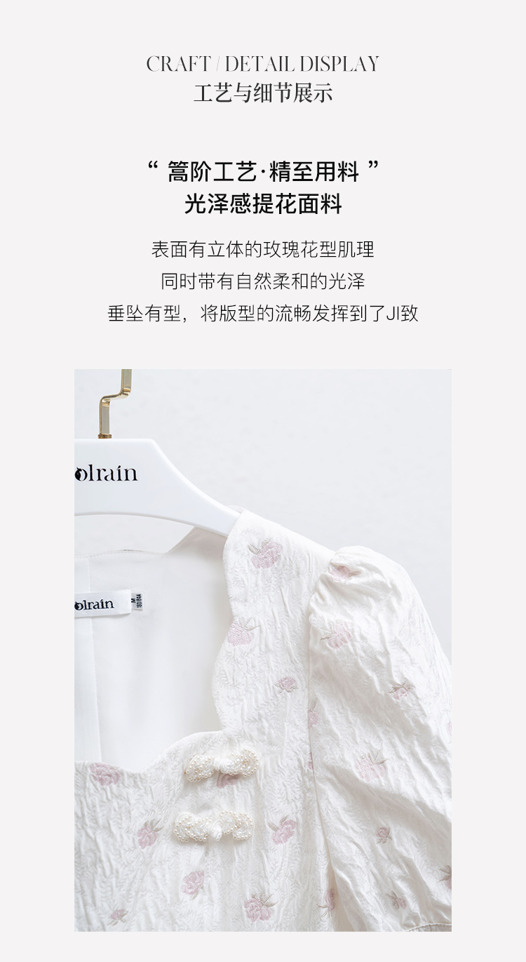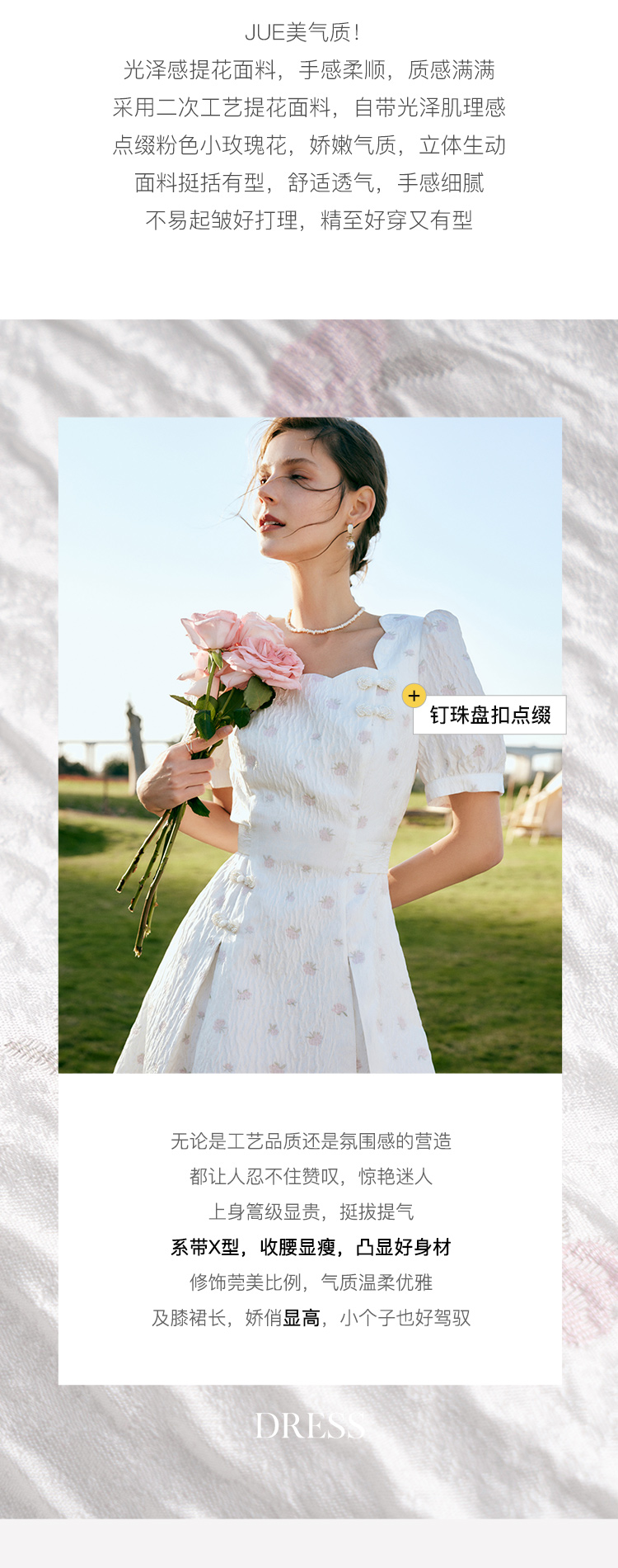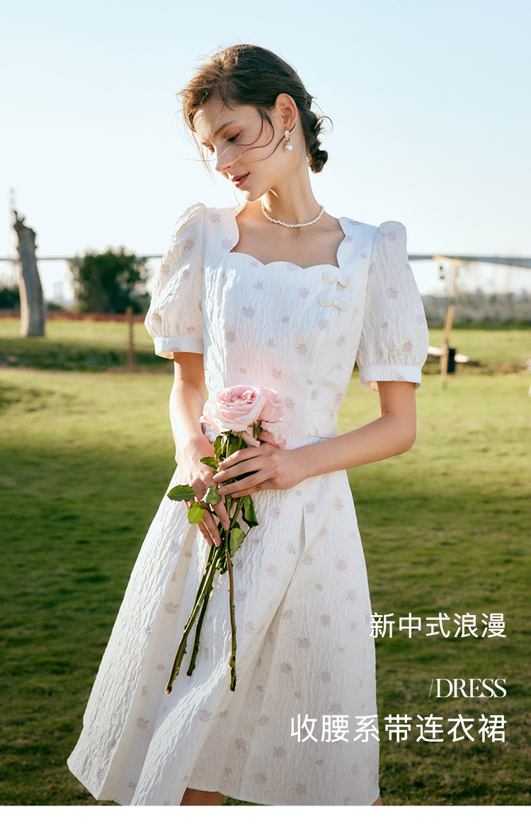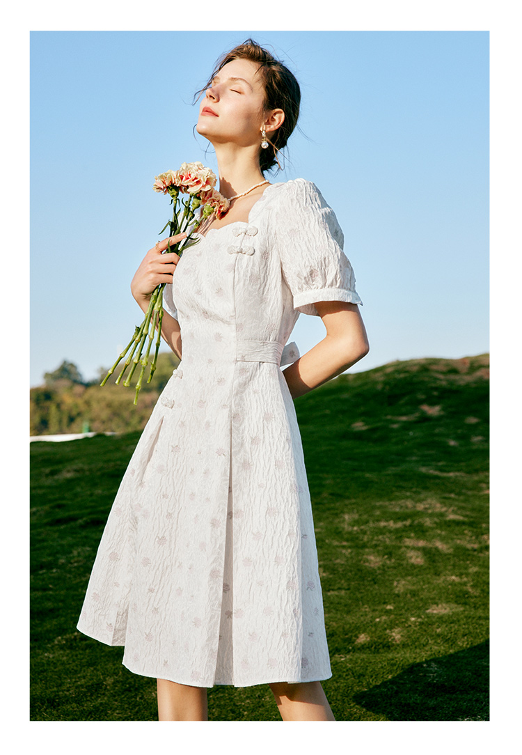 OLrain法式高级穿搭白色方领连衣裙女夏2022新款气质提花短袖裙子