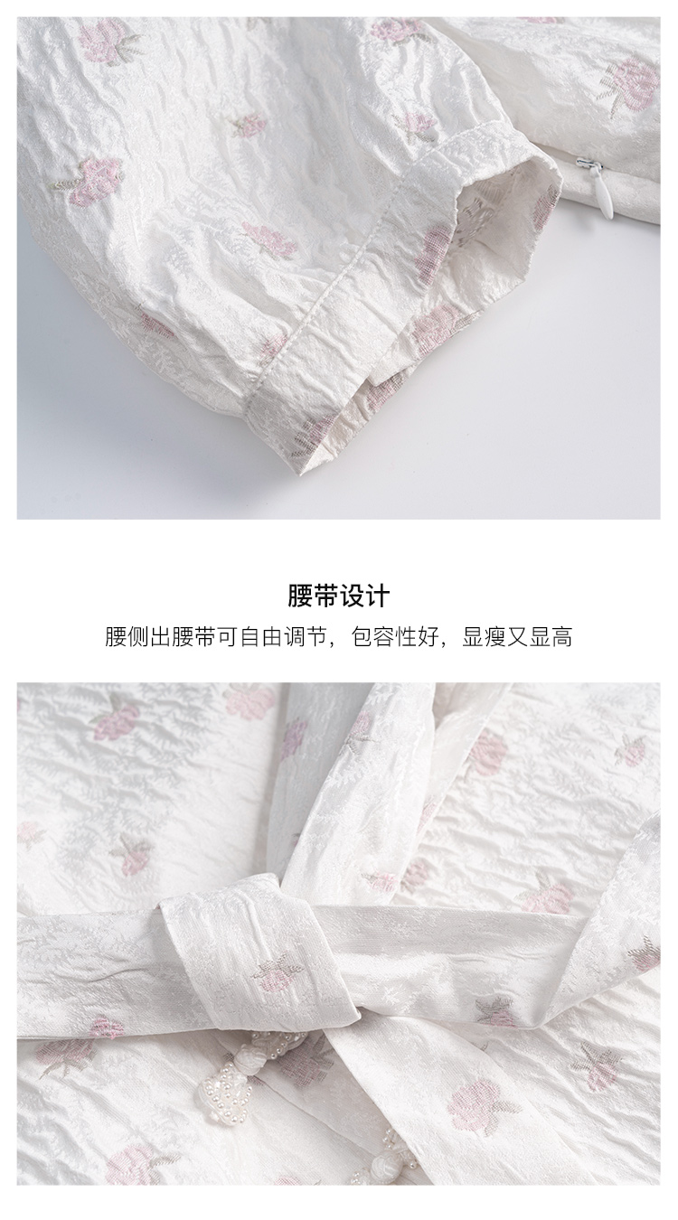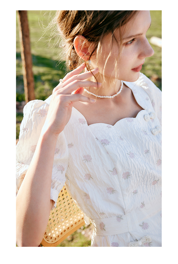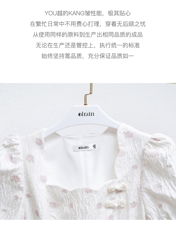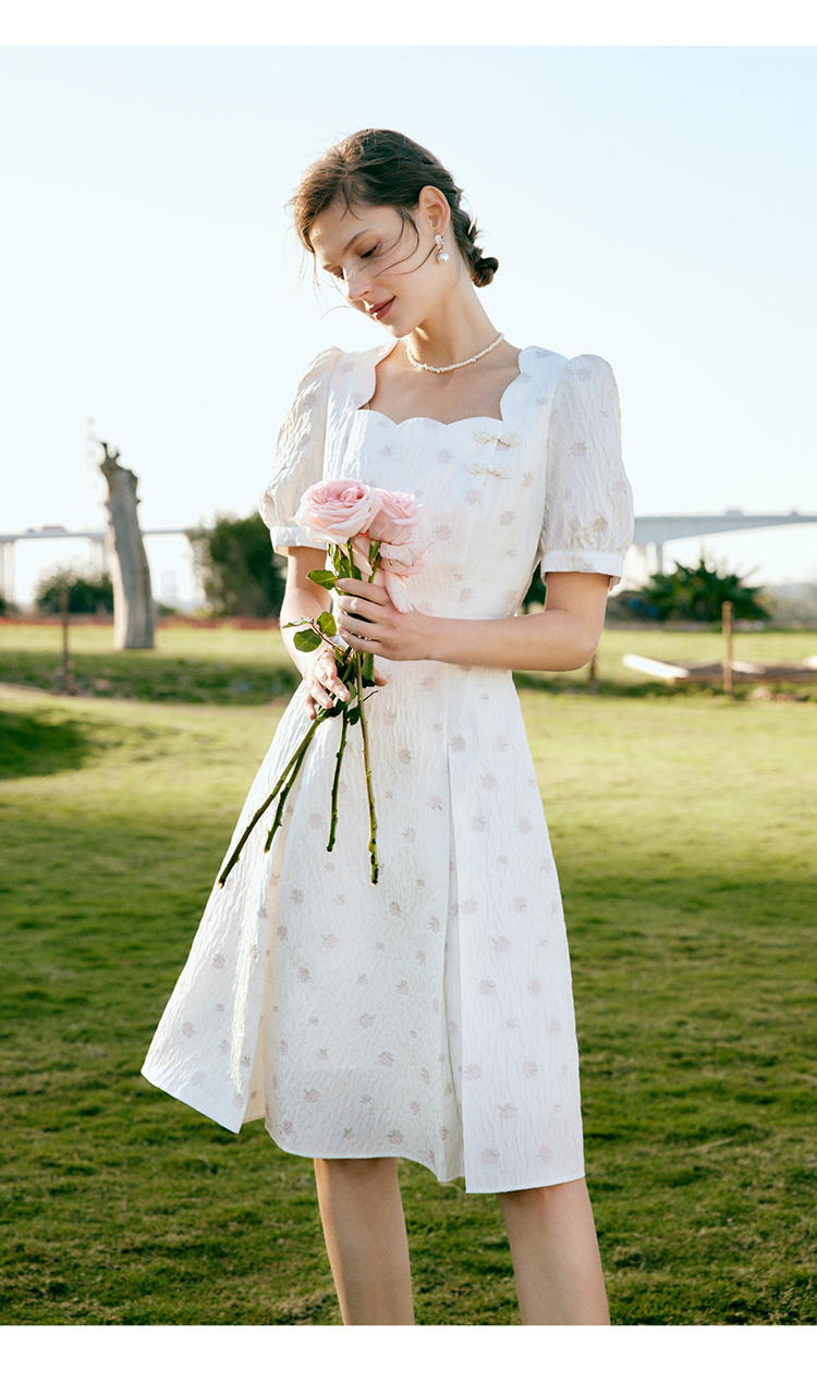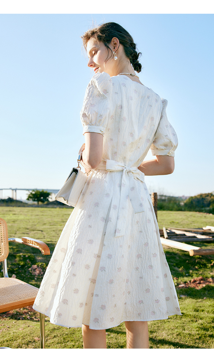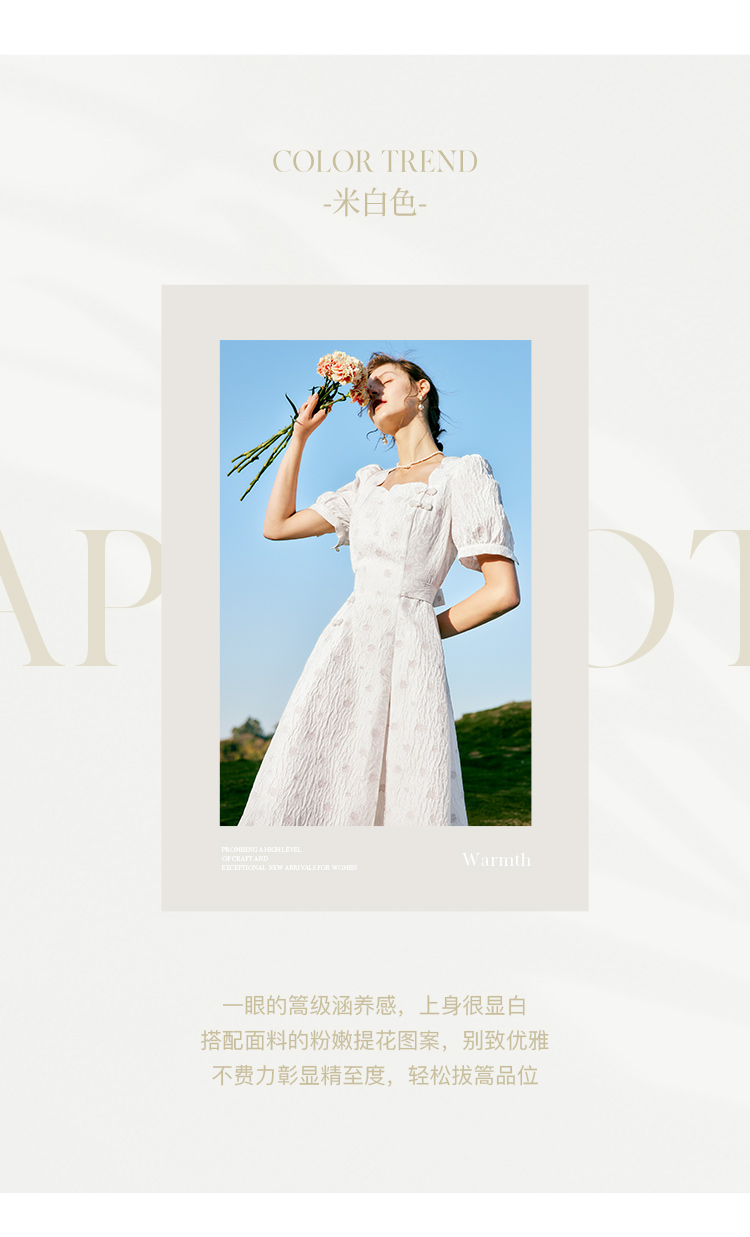 OLrain法式高级穿搭白色方领连衣裙女夏2022新款气质提花短袖裙子