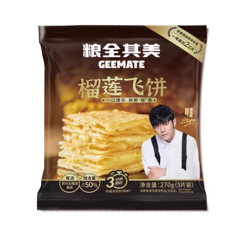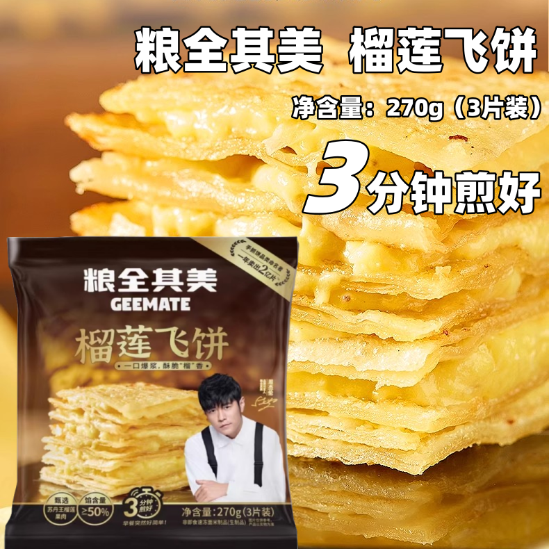 270g(3片装)粮全其美 榴莲飞饼 冷冻半成品 速食早餐榴莲煎饼