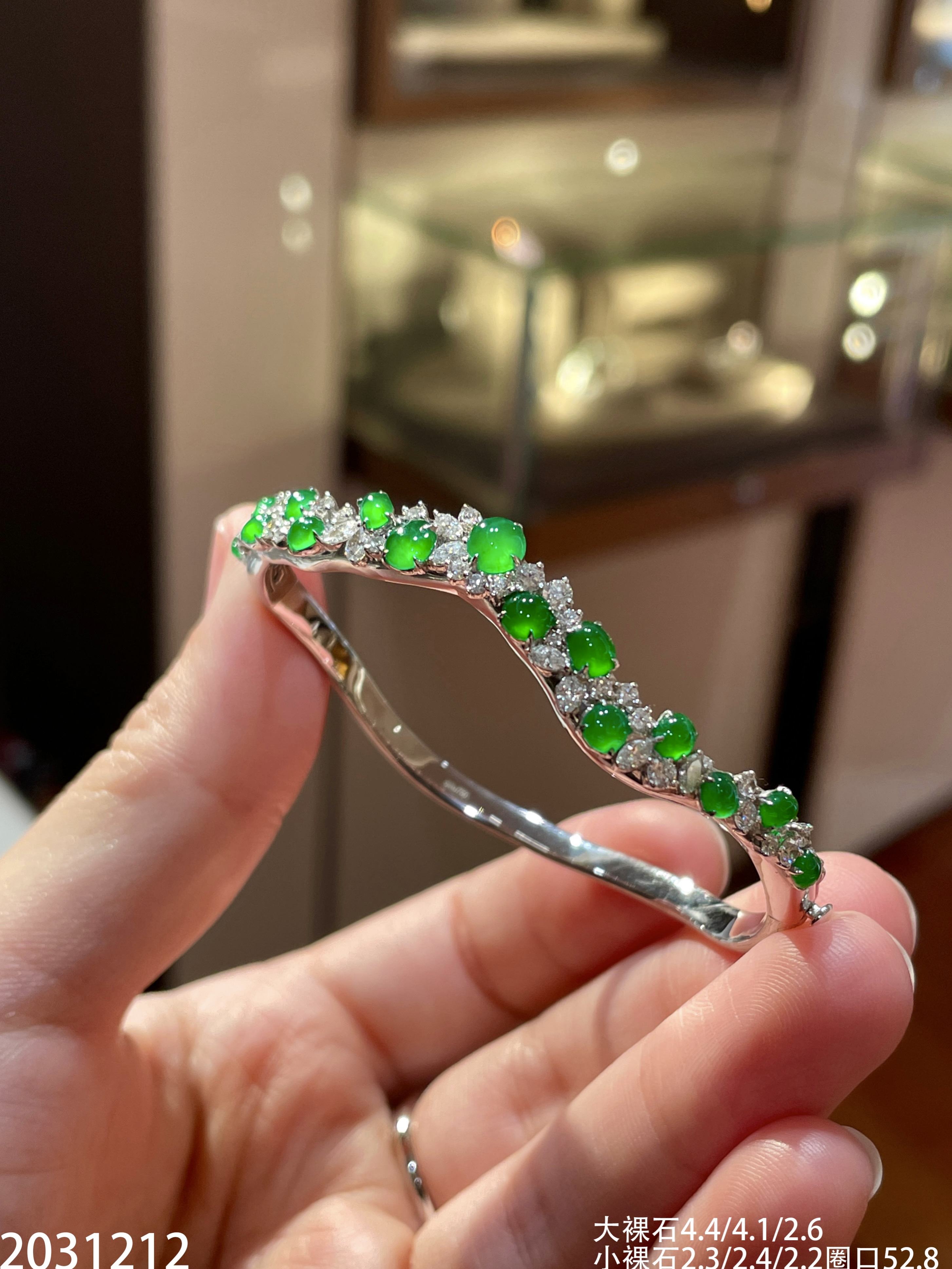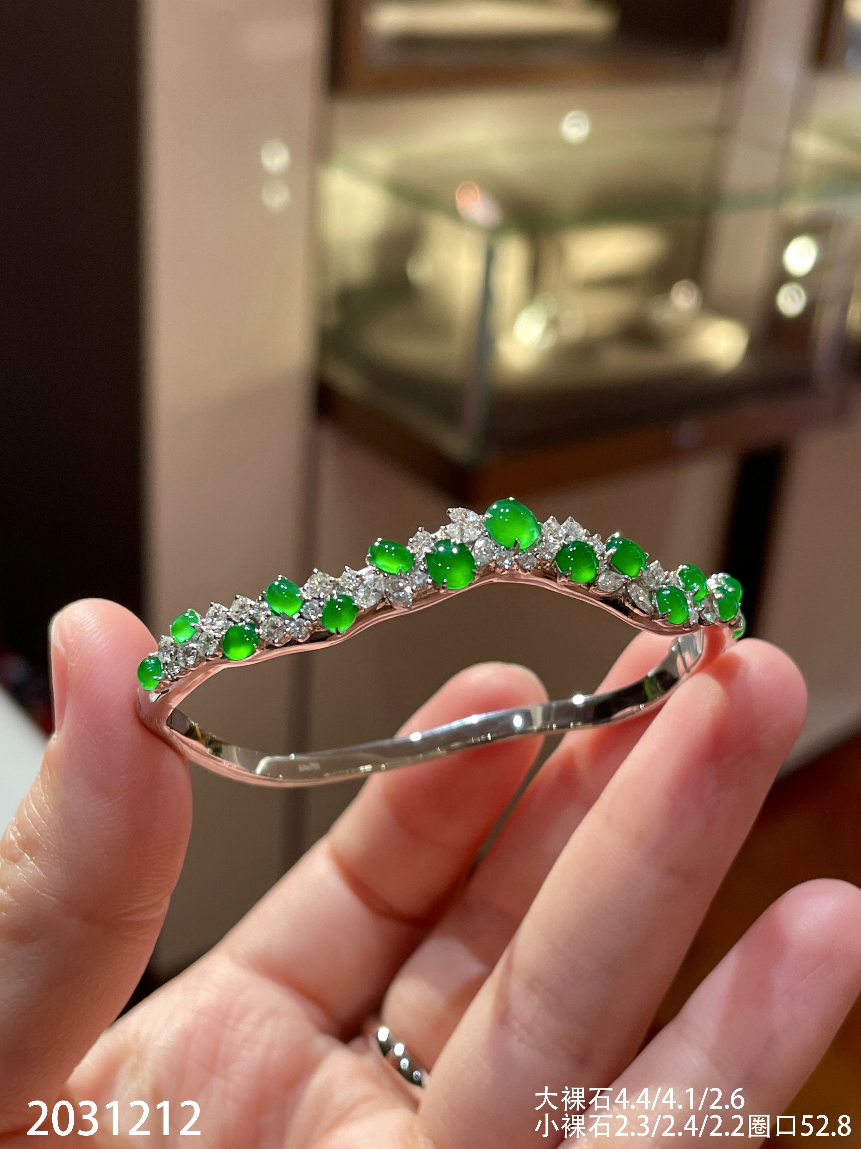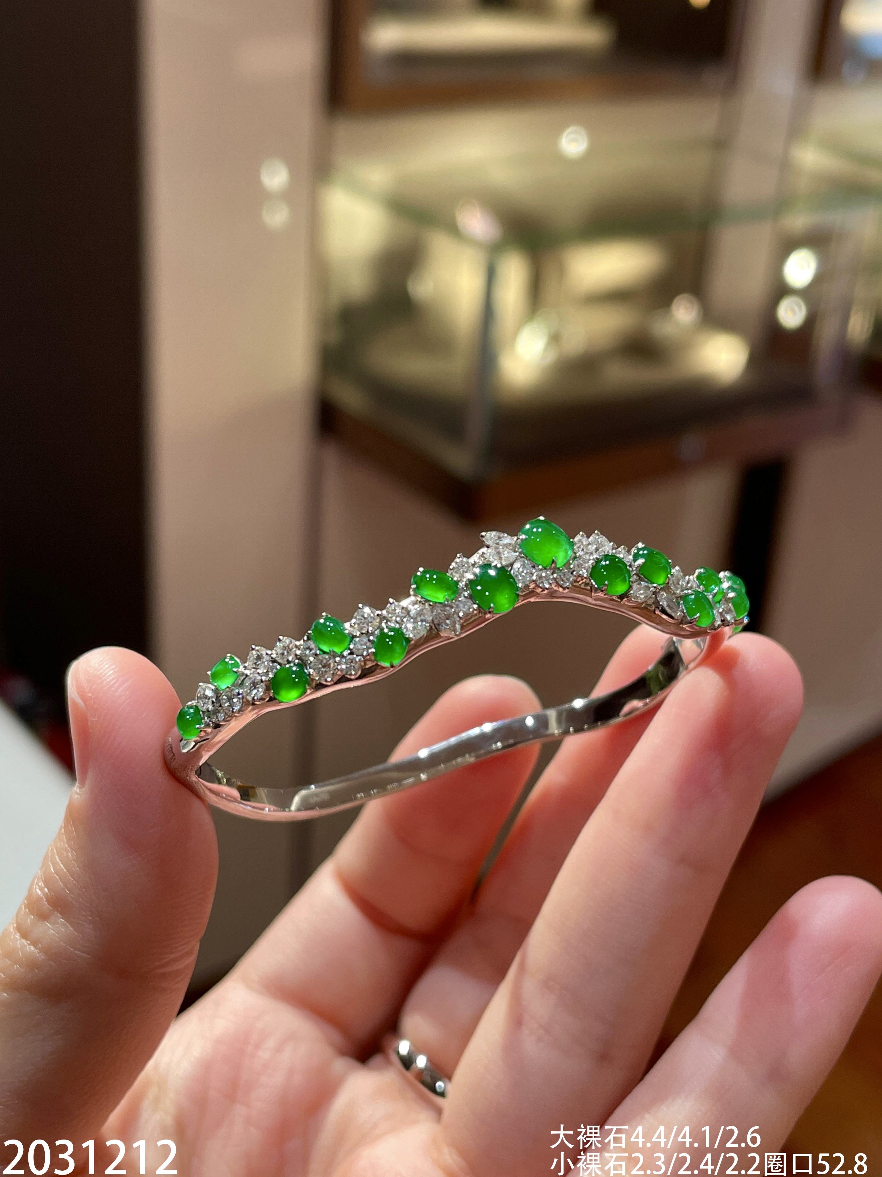 玻璃艳绿蛋面手镯 59999【2031212】圈口52.8