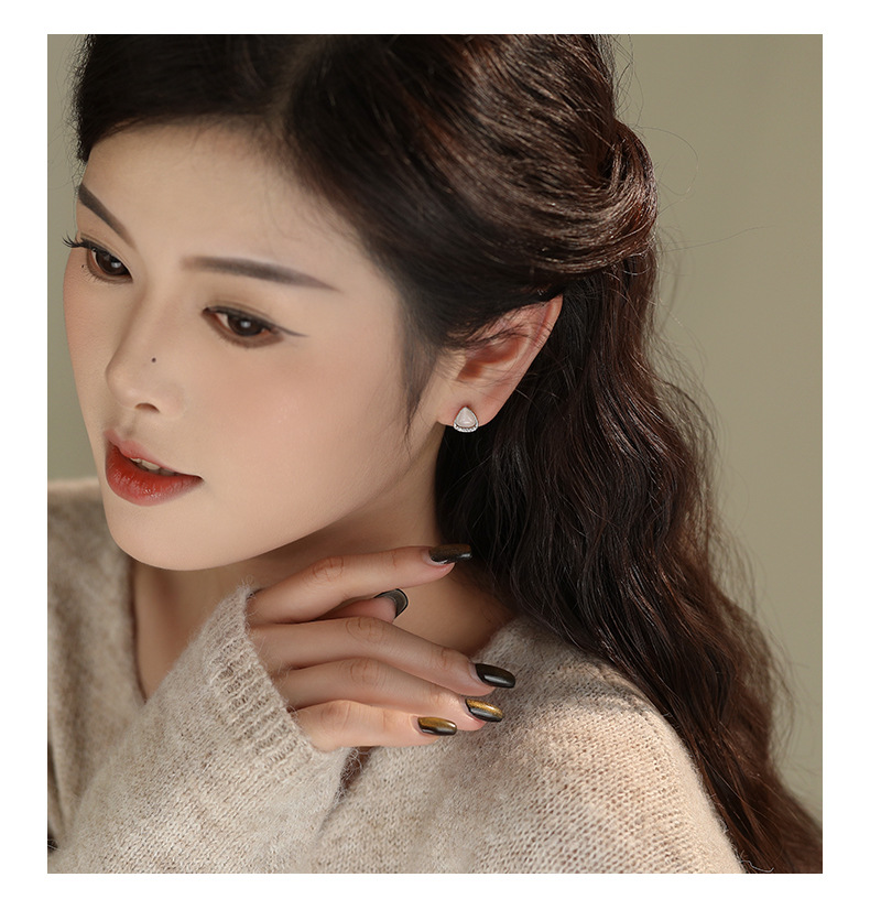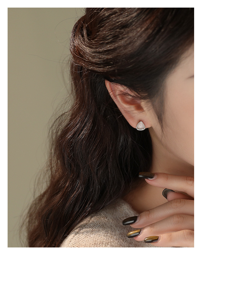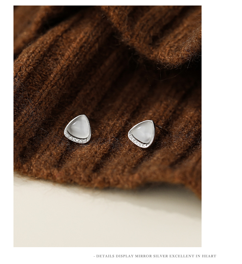 【清乐】S999银三角形猫眼石耳钉【YXS-E4983】