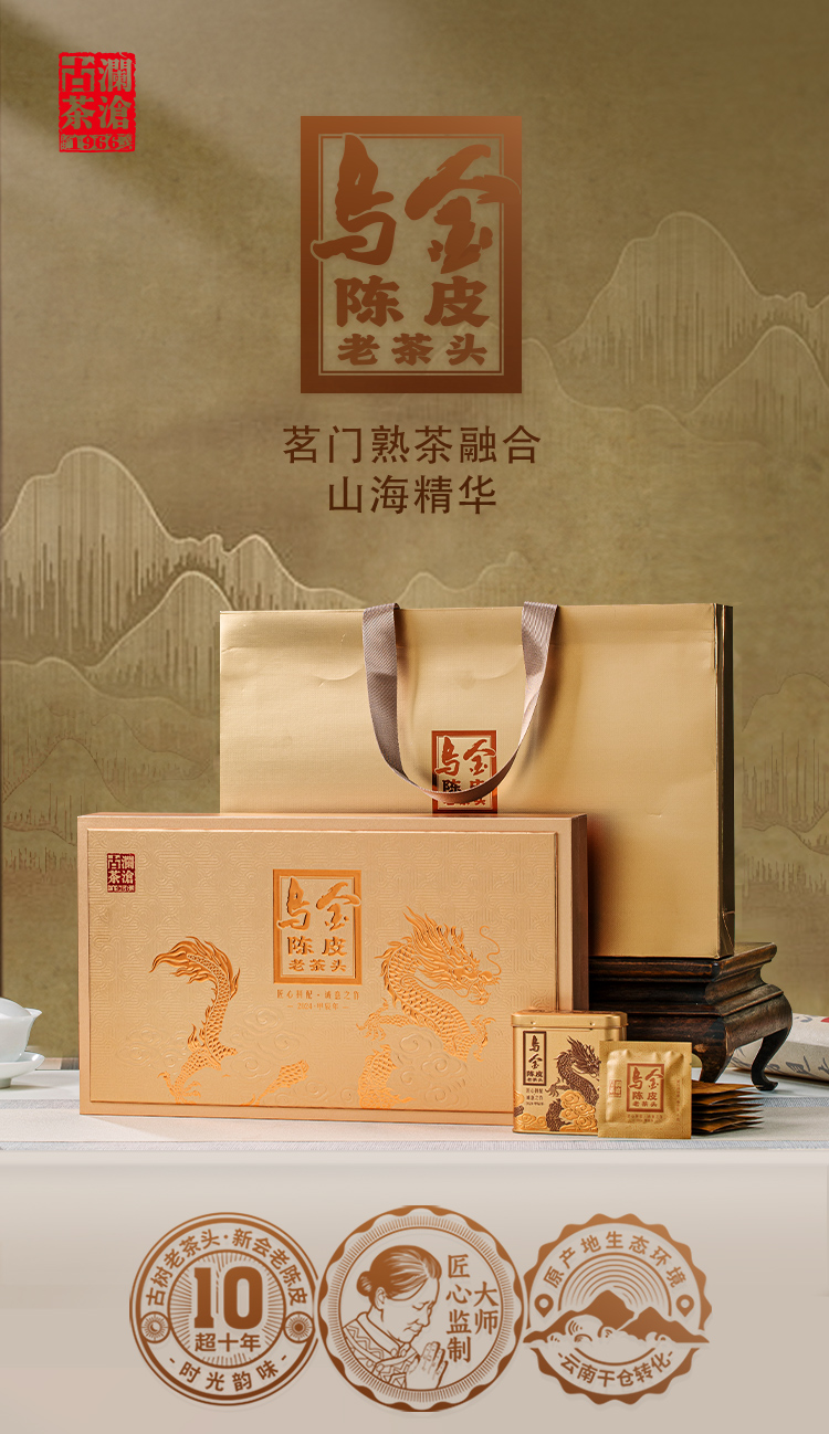 澜沧古茶2024年乌金陈皮老茶头普洱熟茶云南名山古树茶礼盒装160g