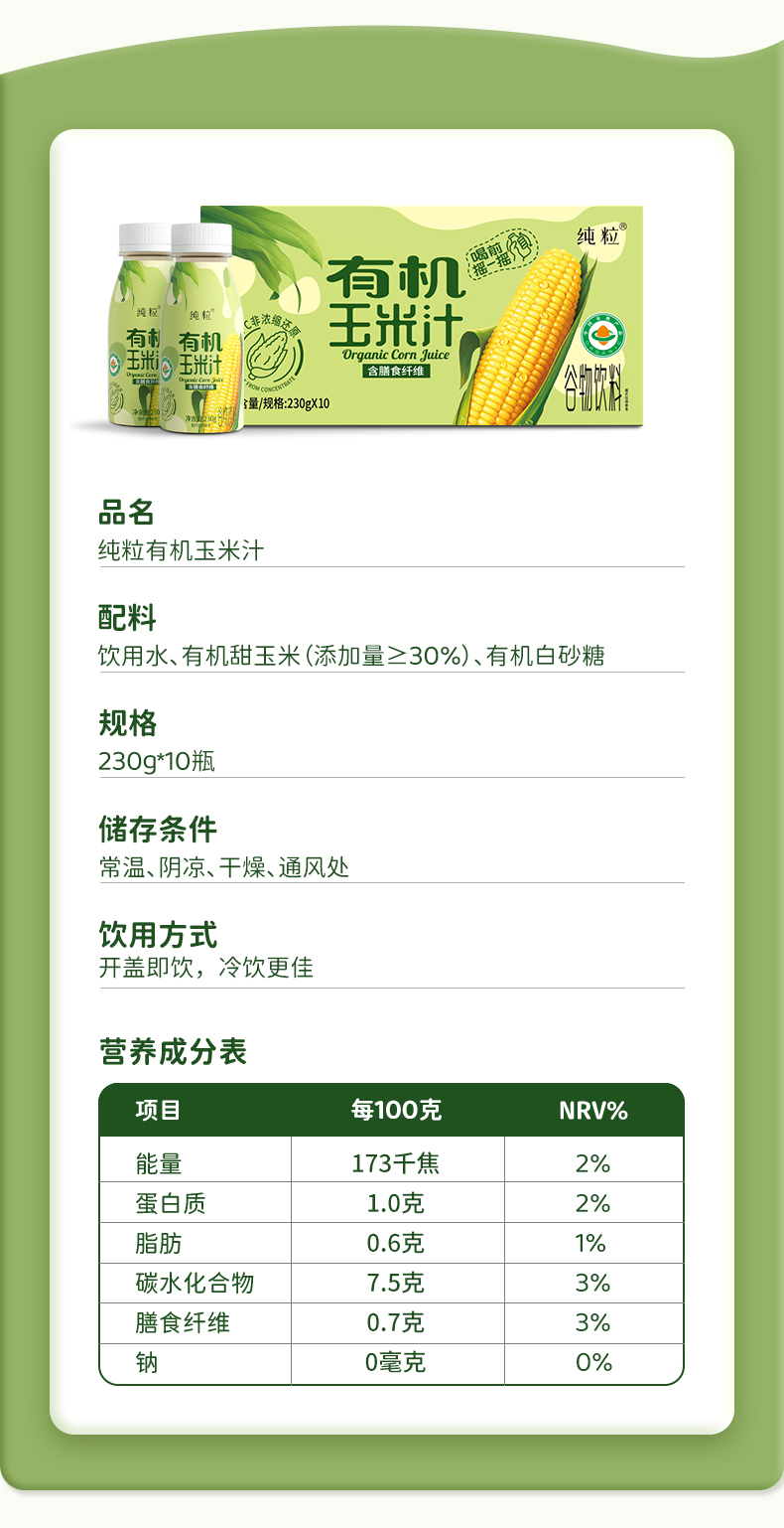 【商超同款】有机玉米汁饮料0脂饮料果蔬汁五谷杂粮早餐必备230g*10