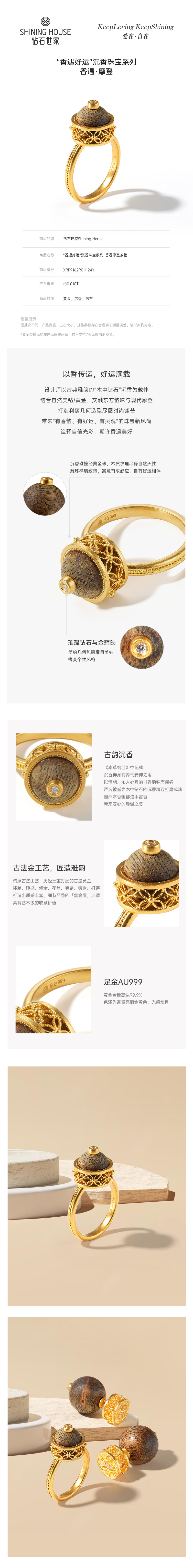 【钜惠价】【沉香黄金】【香遇·摩登系列】钻石世家 足金钻石戒指 古韵沉香与华贵黄金碰撞组合 汇聚非遗之美【黄金产品不支持无理由退换货】预计3-5天发货