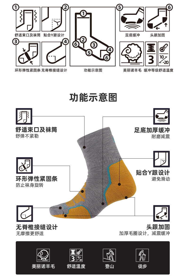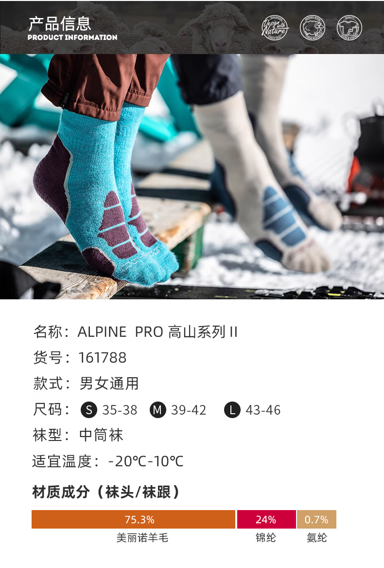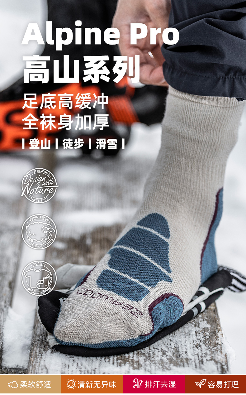 【189元2双】ZEALWOOD赛乐ALPINE高山系列II美丽诺羊毛登山户外保暖速干功能袜