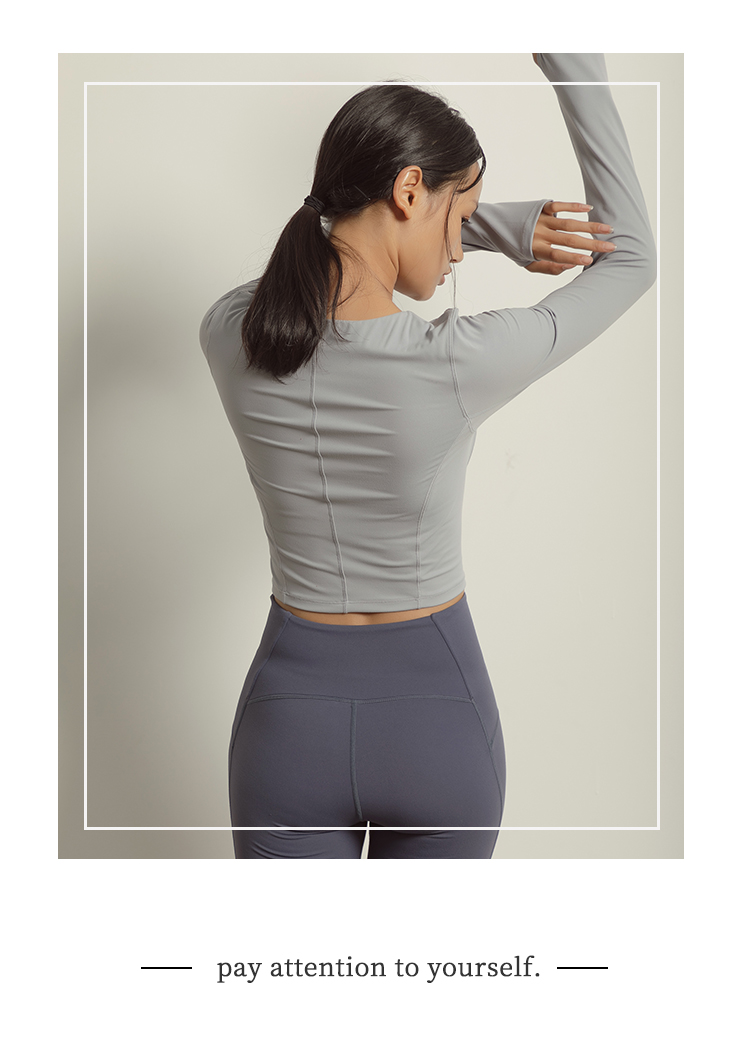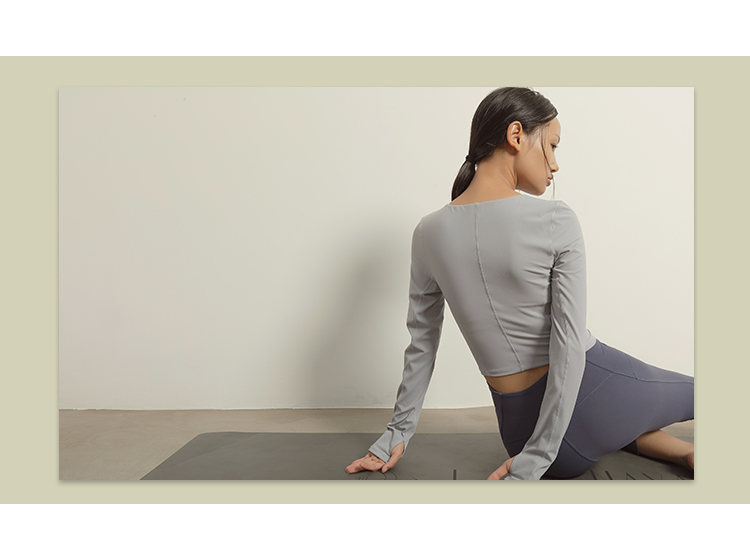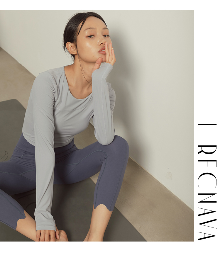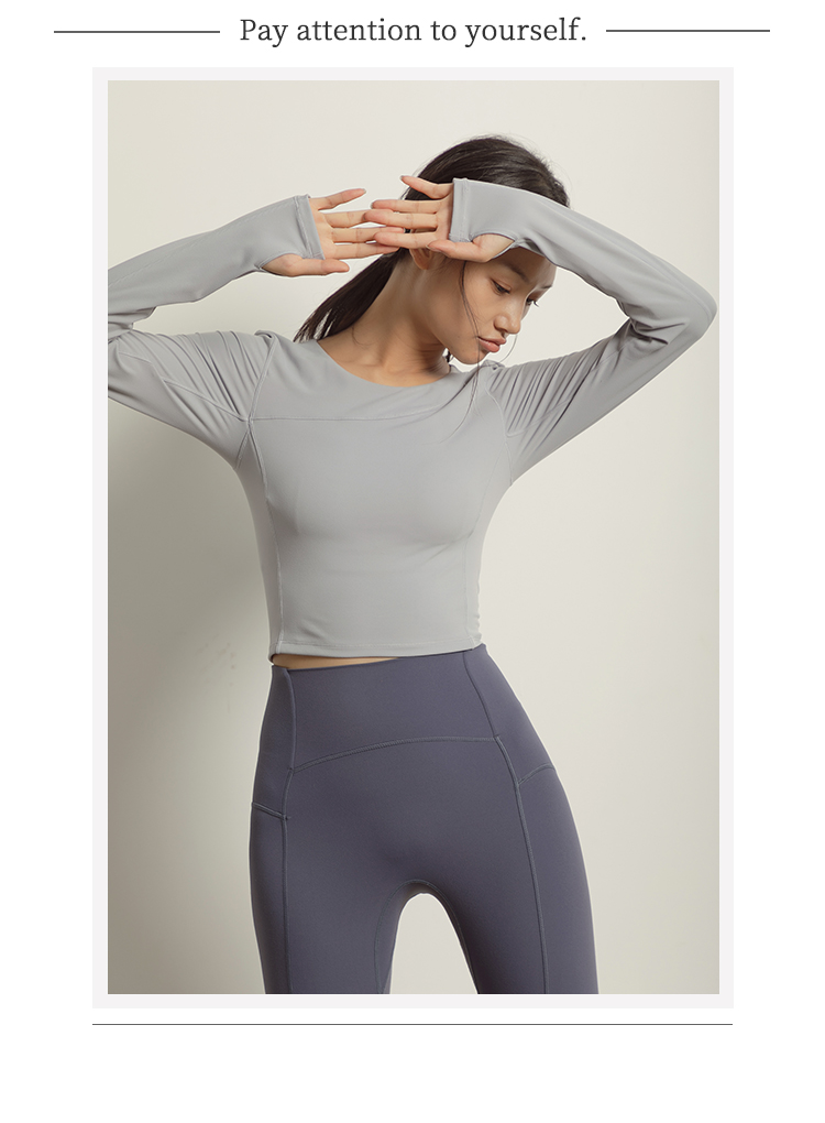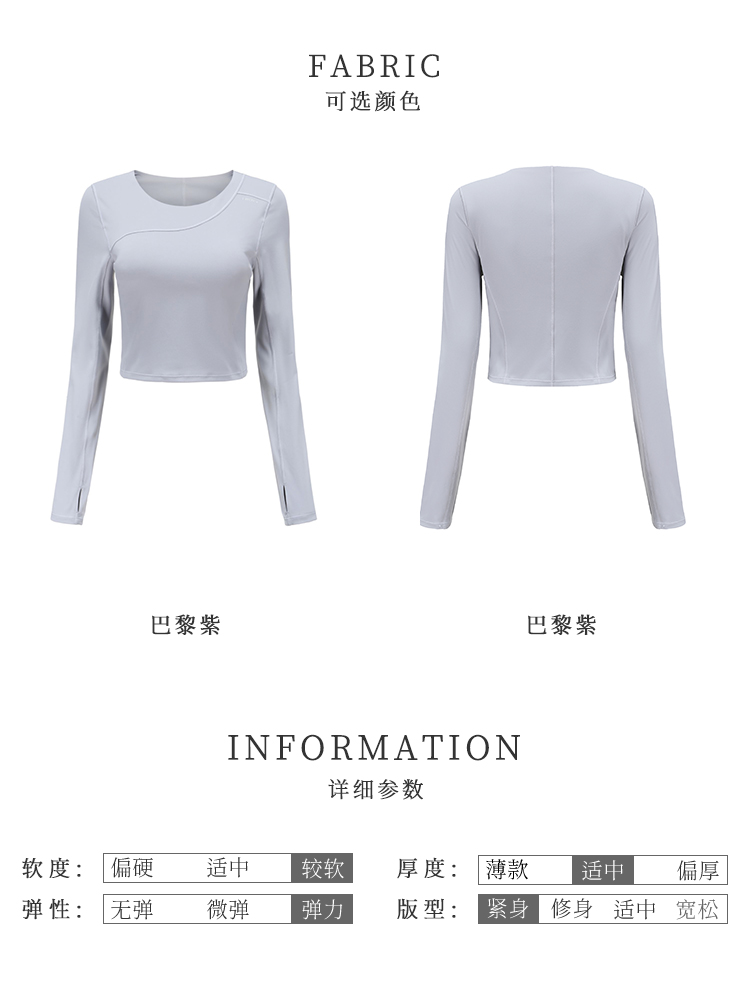 【裸感】圆领巴黎紫显瘦裸感瑜伽服上衣带胸垫长袖