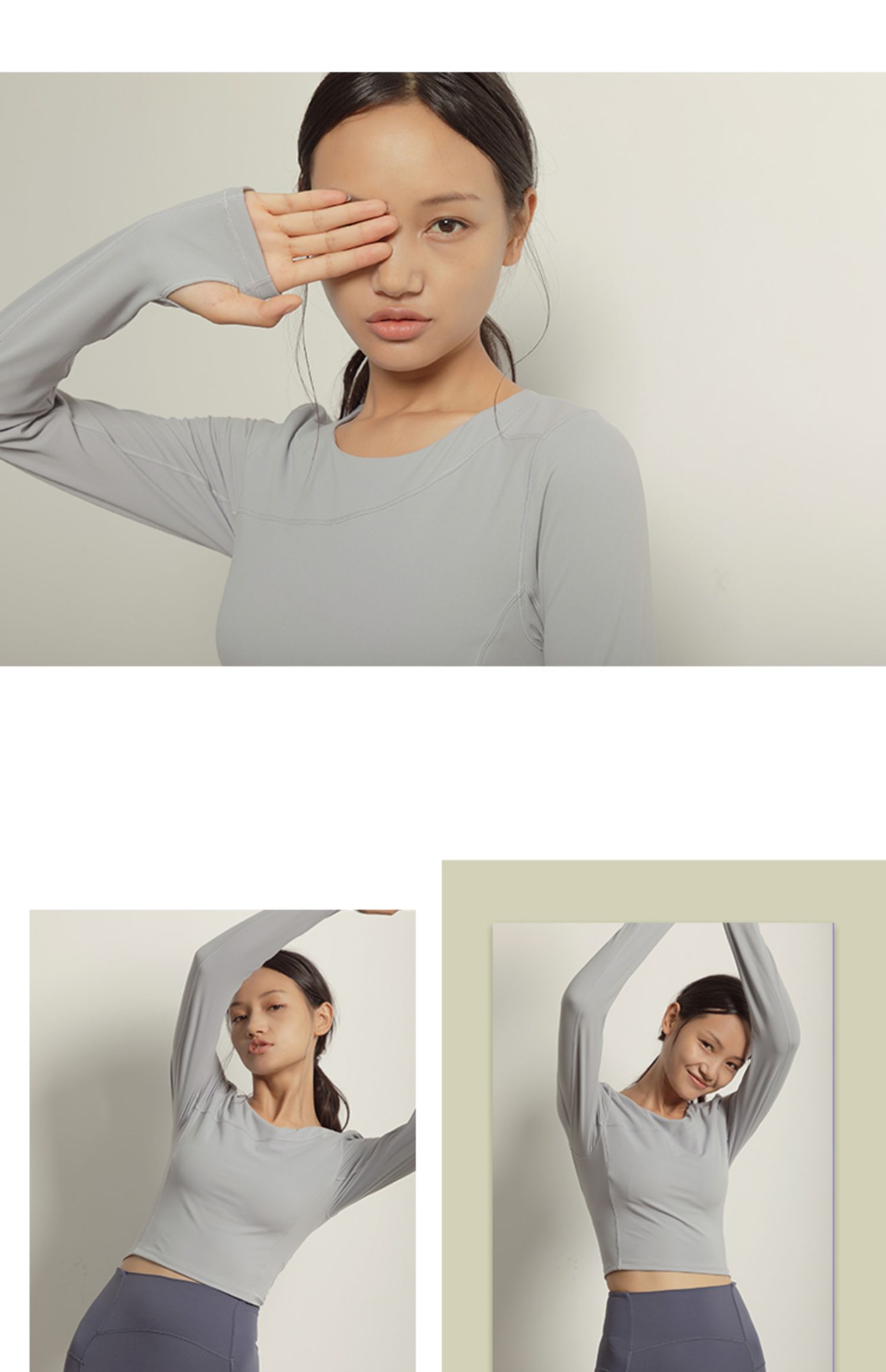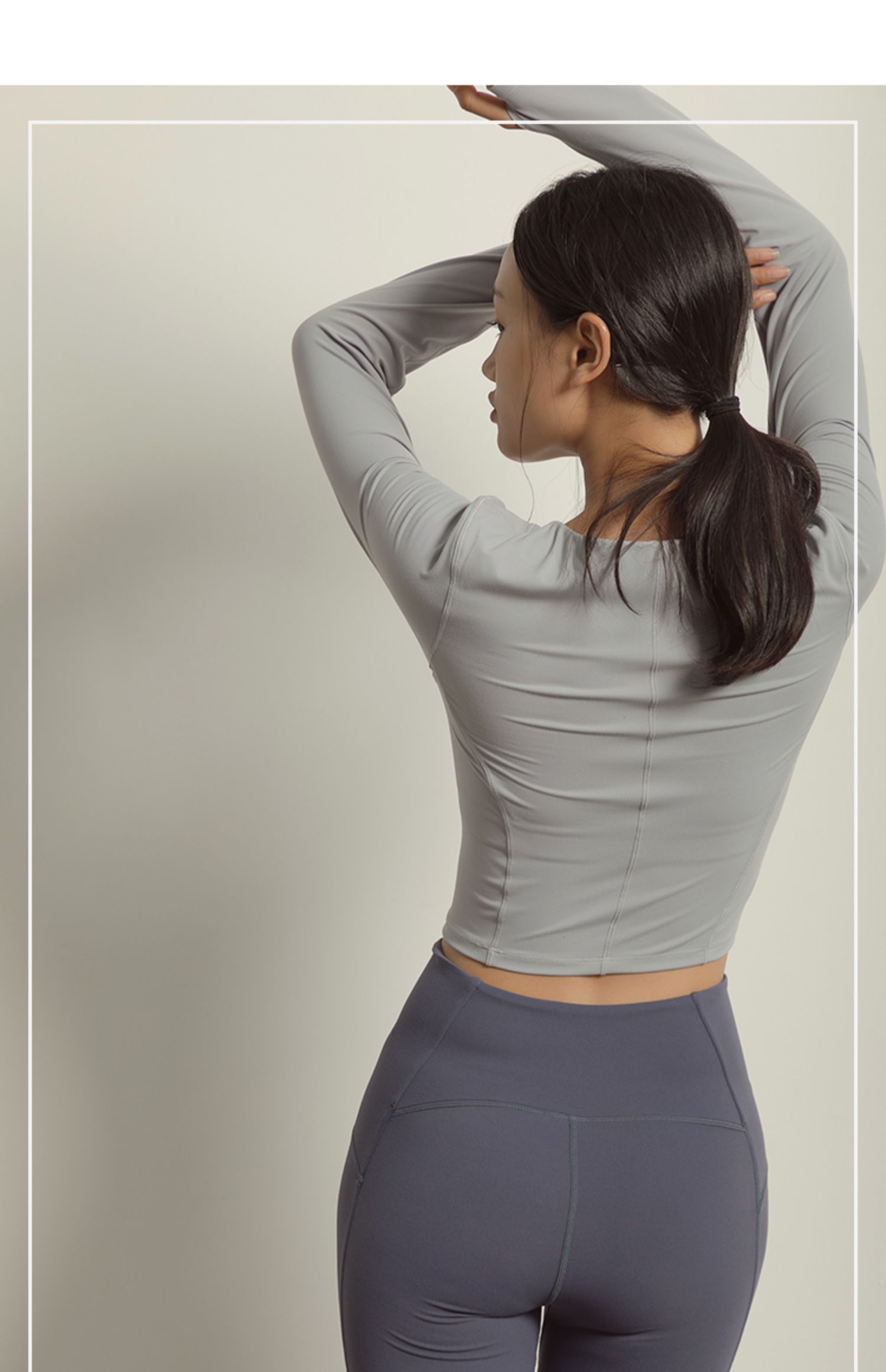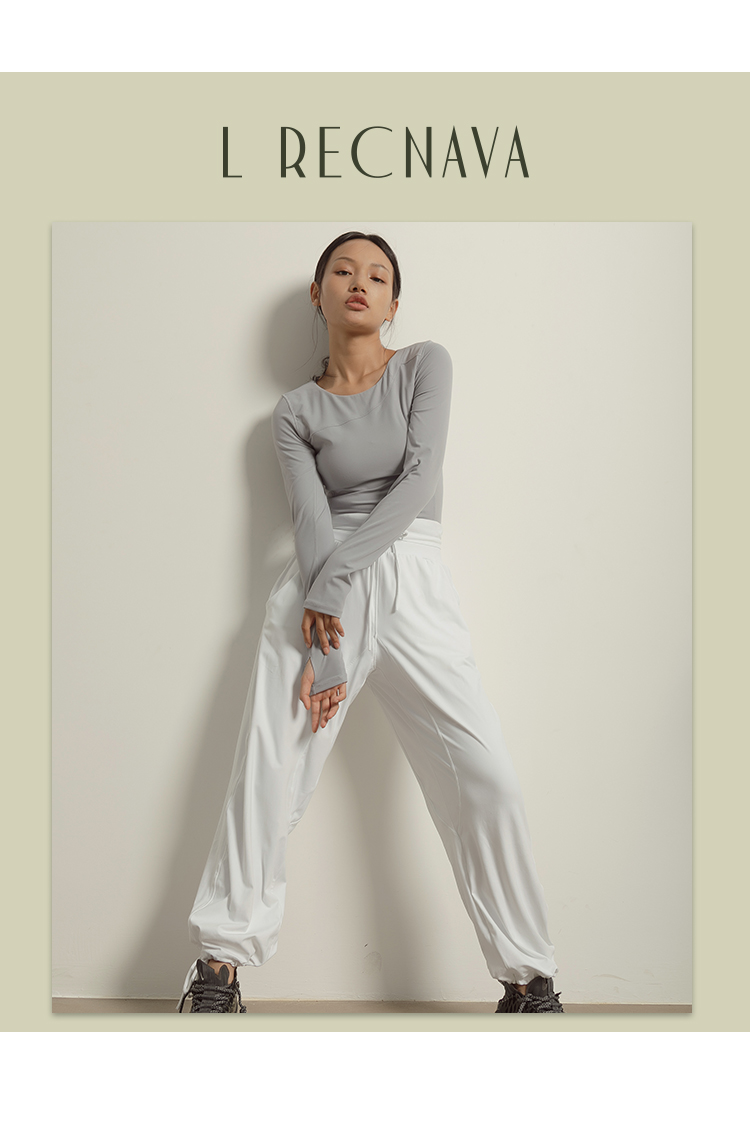 【裸感】圆领巴黎紫显瘦裸感瑜伽服上衣带胸垫长袖