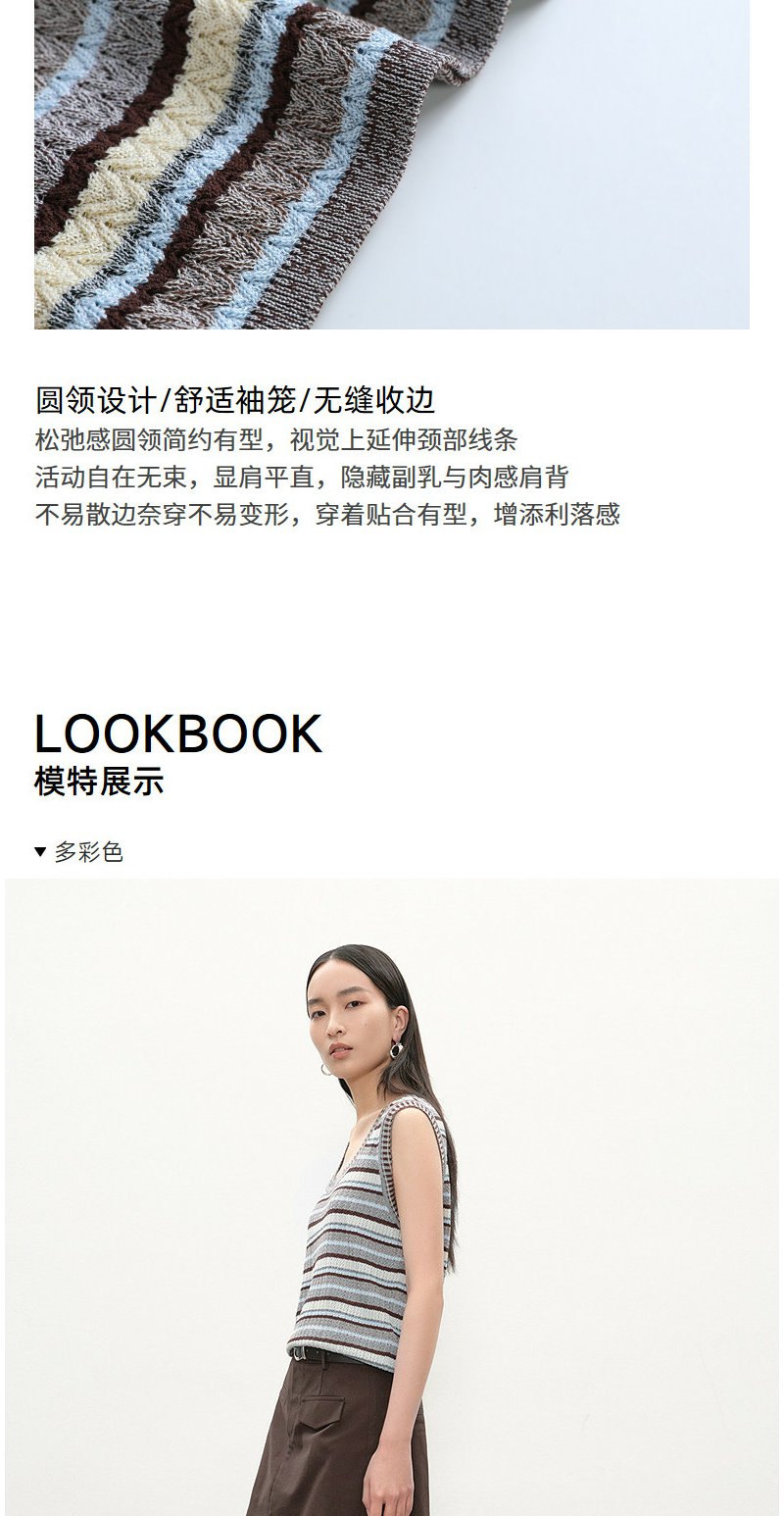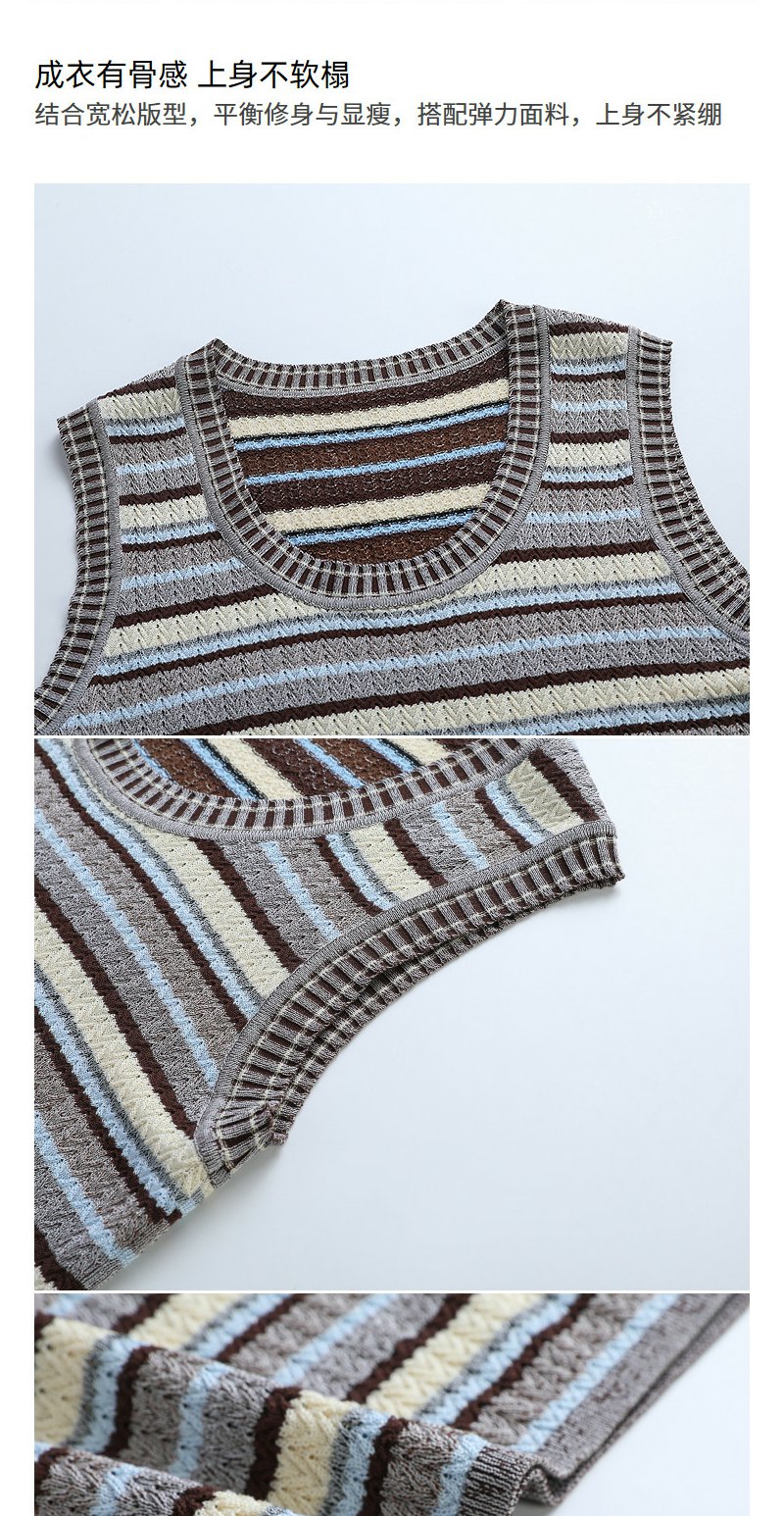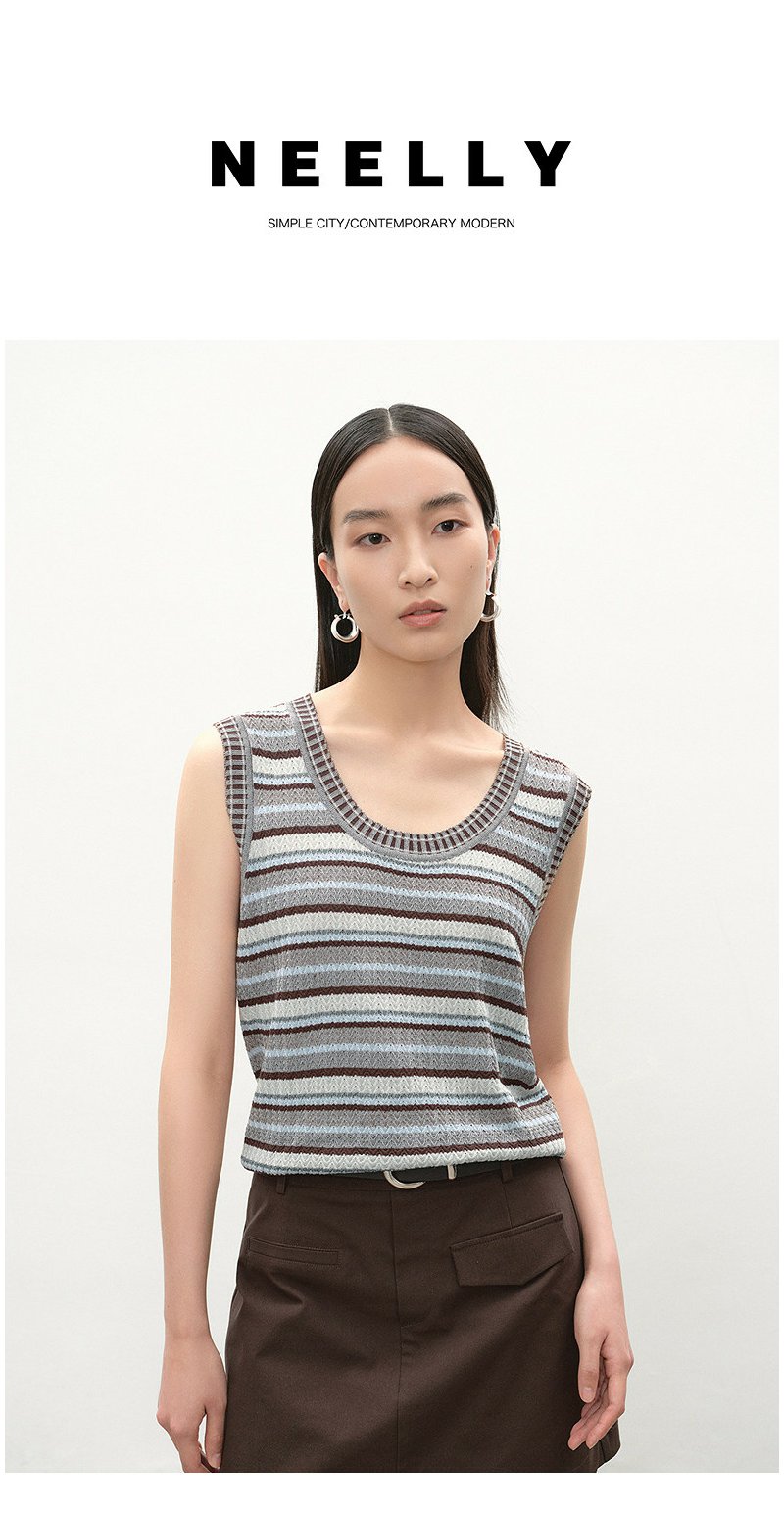 NEELLY纳俪商场同款夏季新款复古条纹撞色针织衫女显瘦百搭背心N26054A04611