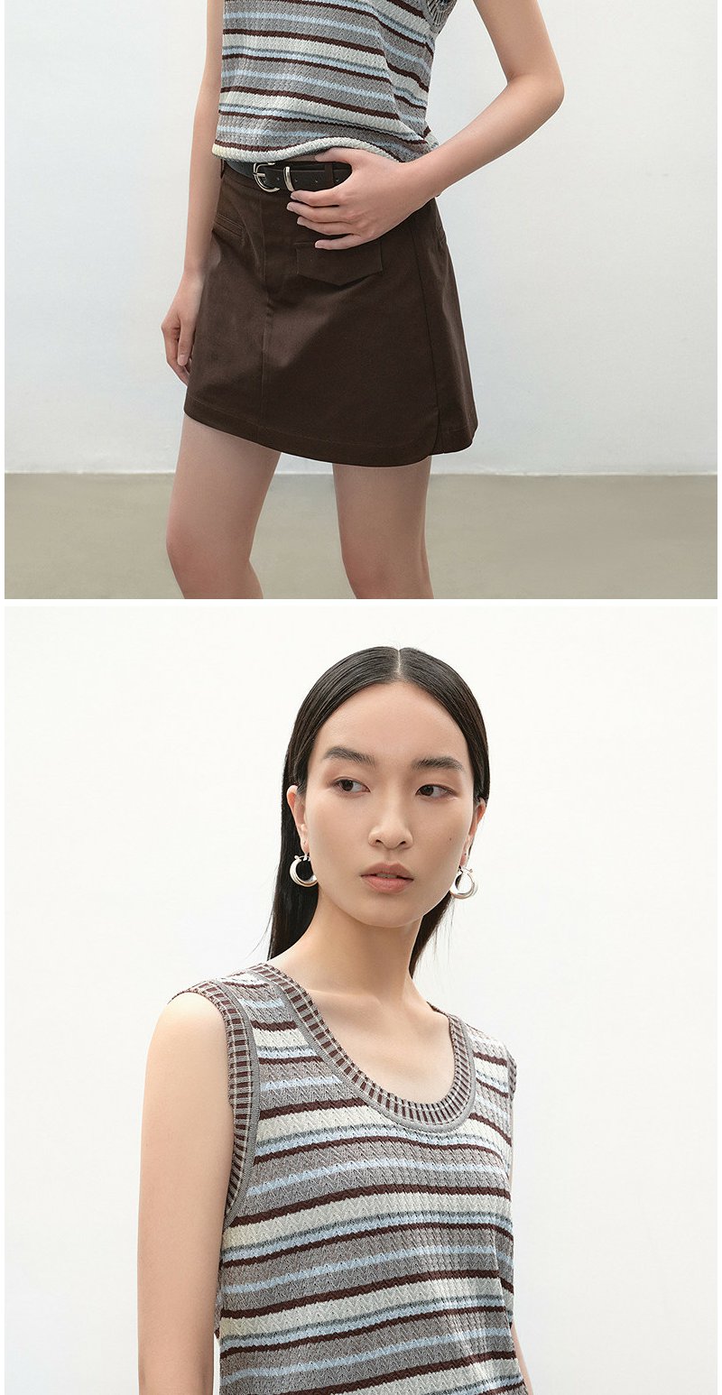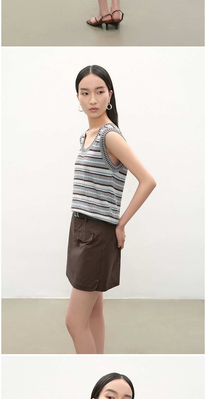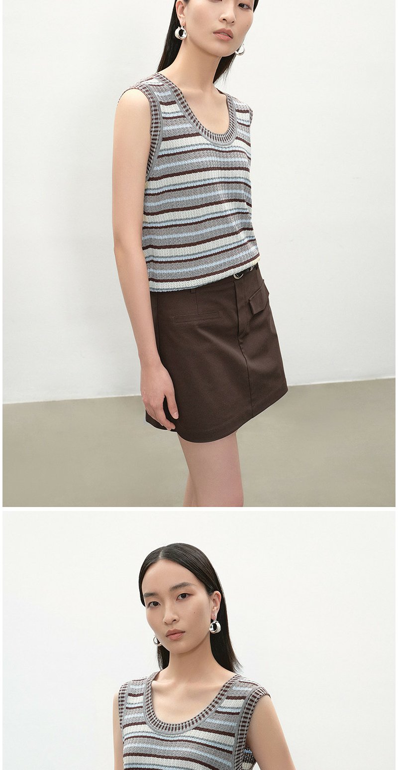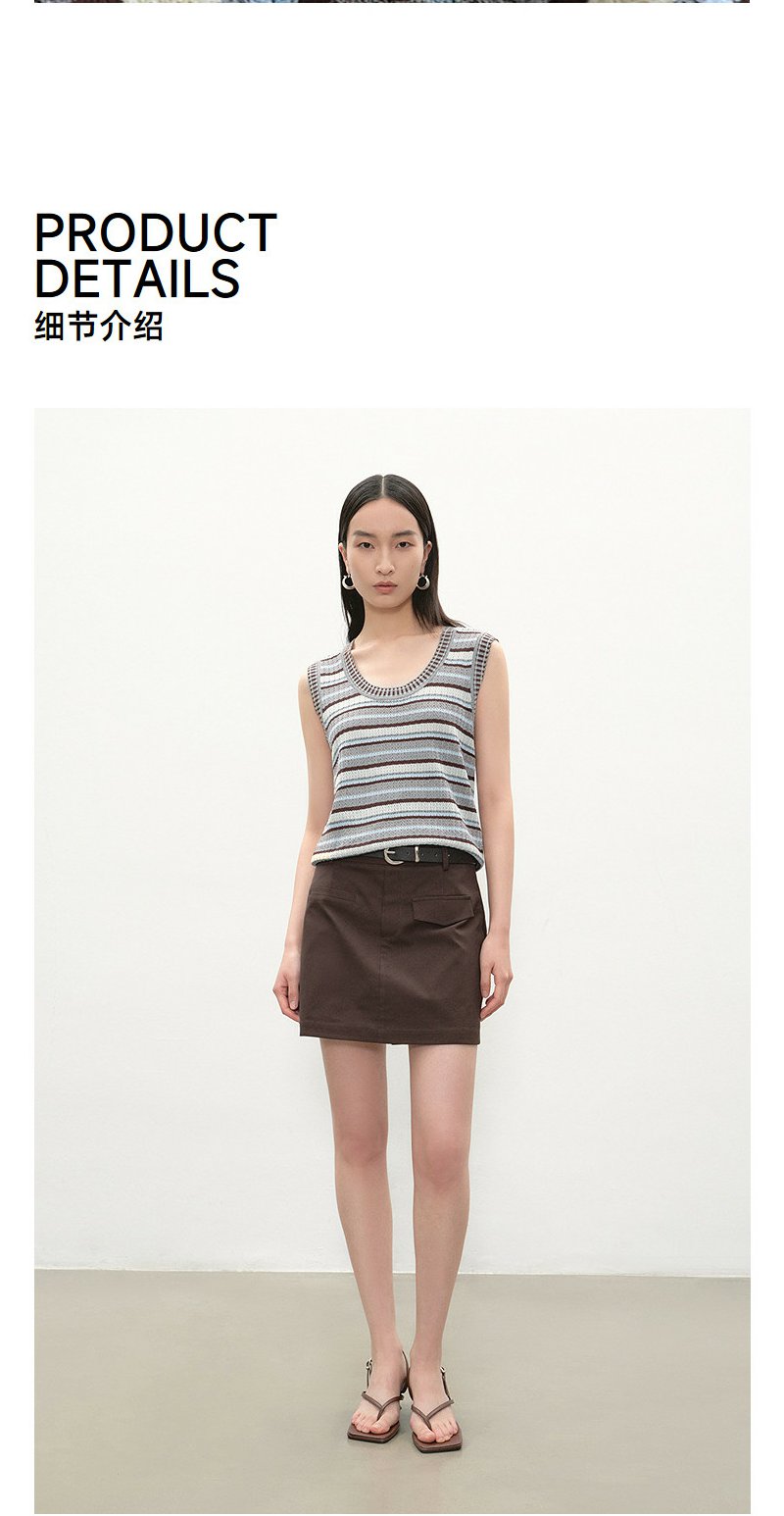 NEELLY纳俪商场同款夏季新款复古条纹撞色针织衫女显瘦百搭背心N26054A04611