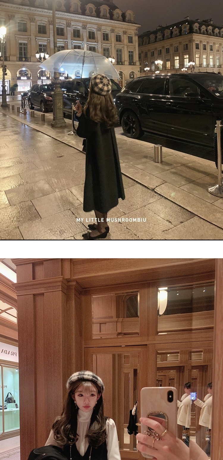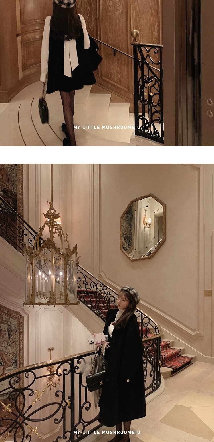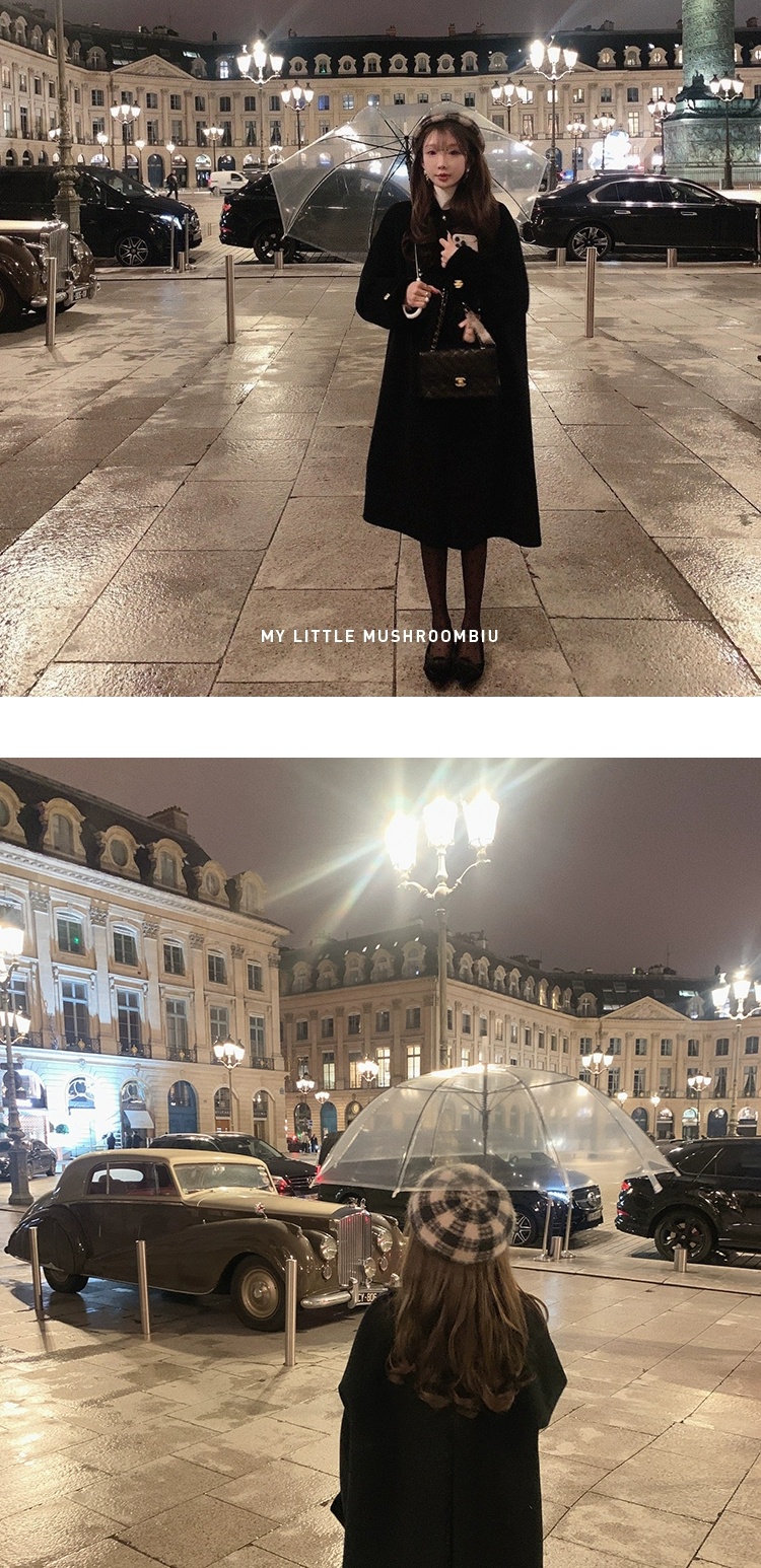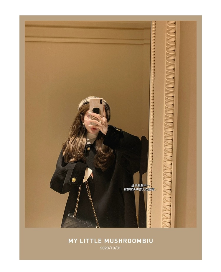金蘑菇菇 巴黎旧梦 中古大衣系列/ 优雅赫本风娃娃领双面呢大衣