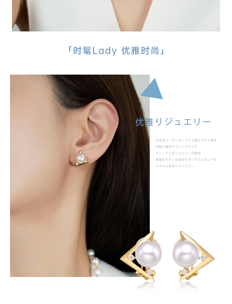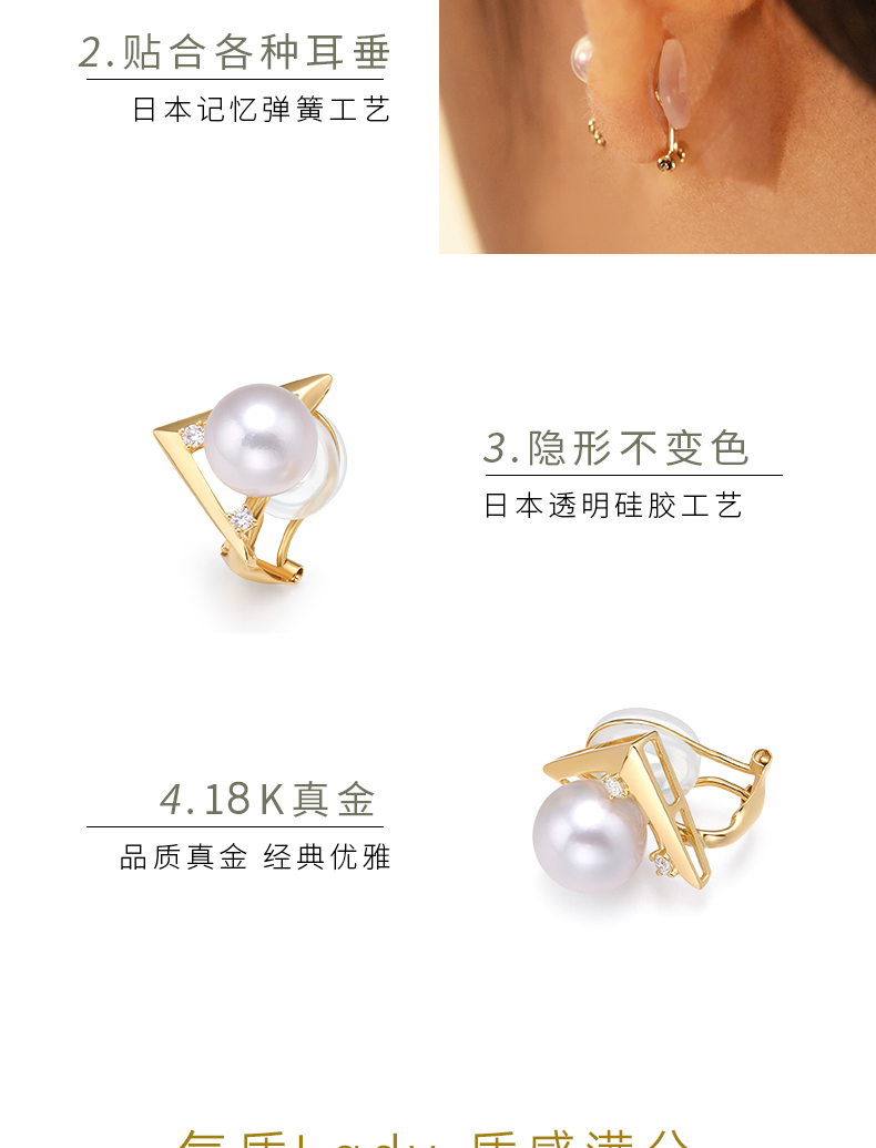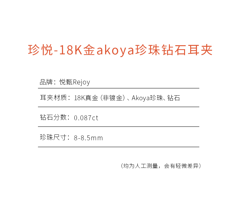 【天猫同款】悦甄 18k金钻石珍珠耳夹8-8.5mm 珍悦