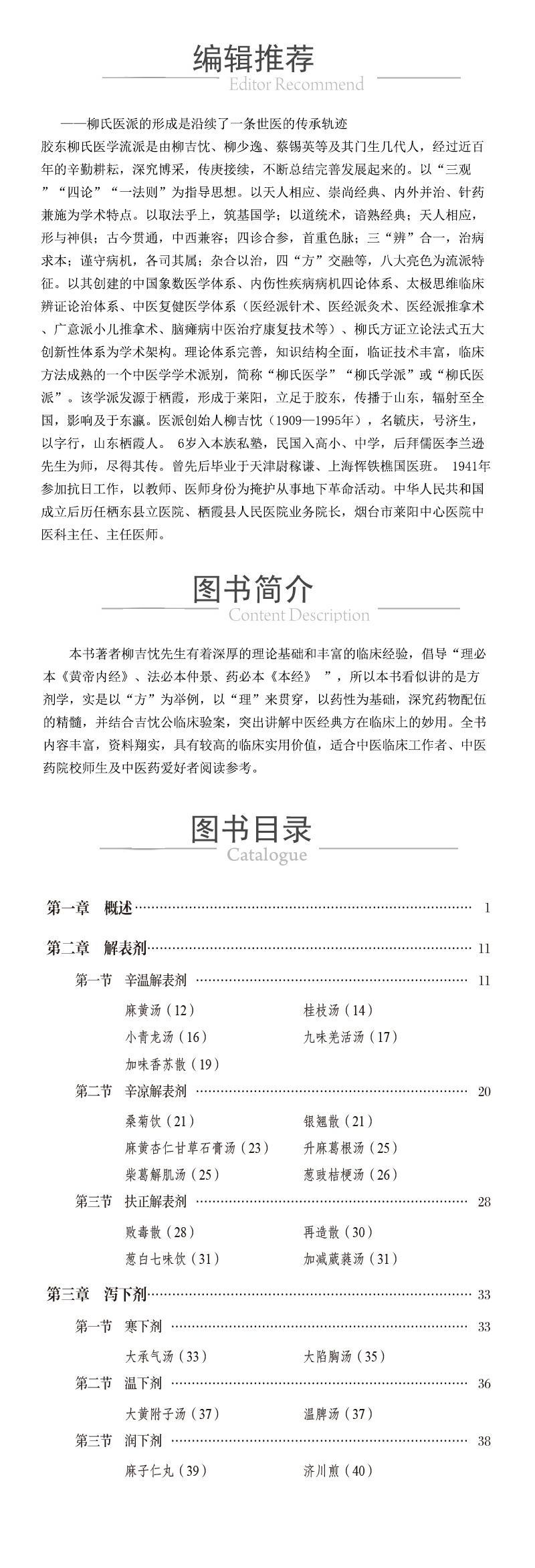 本书著者柳吉忱先生有着深厚的理论基础和丰富的临床经验,倡导“理必本《黄帝内经》、法必本仲景、药必本《本经》”,所以本书看似讲的是方剂学,实是以“方”为举例,以“理”来贯穿,以药性为基础,深究药物配伍的精髓,并结合吉忱公临床验案,突出讲解中医经典方在临床上的妙用。全书内容丰富,资料翔实,具有较高的临床实用价值,适合中医临床工作者、中医药院校师生及中医药爱好者阅读参考。