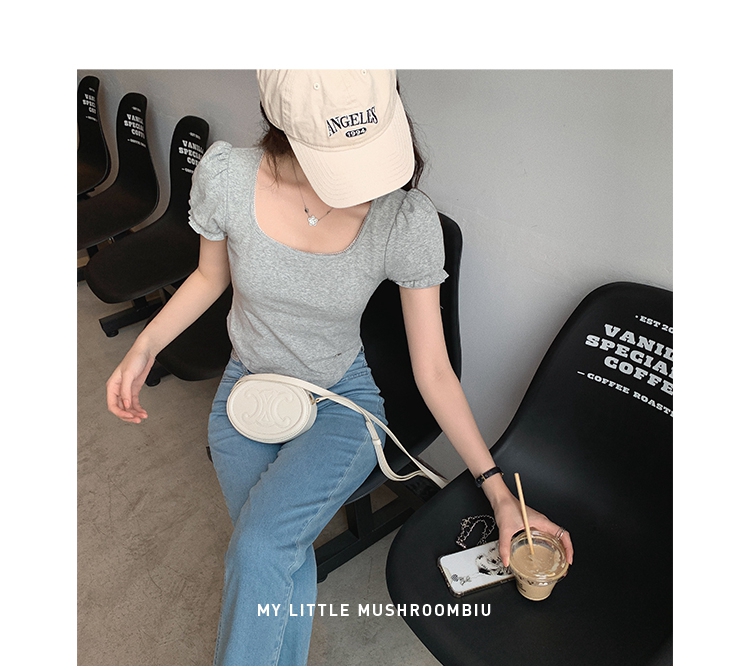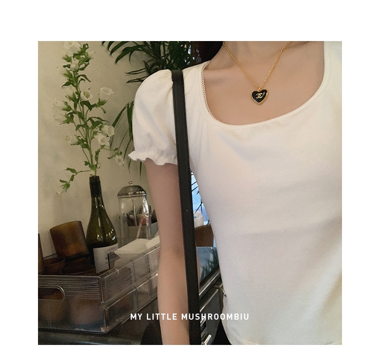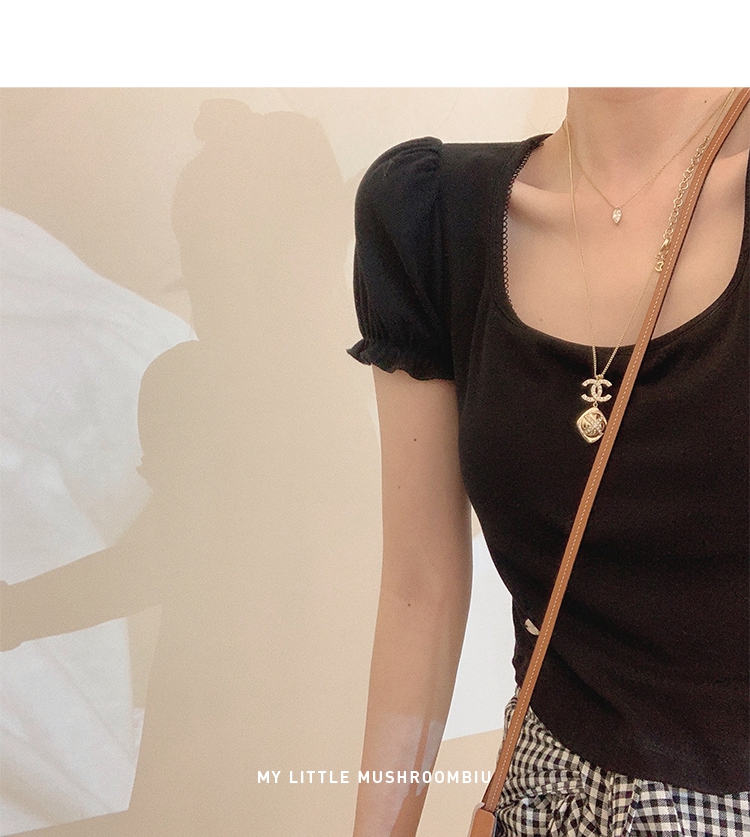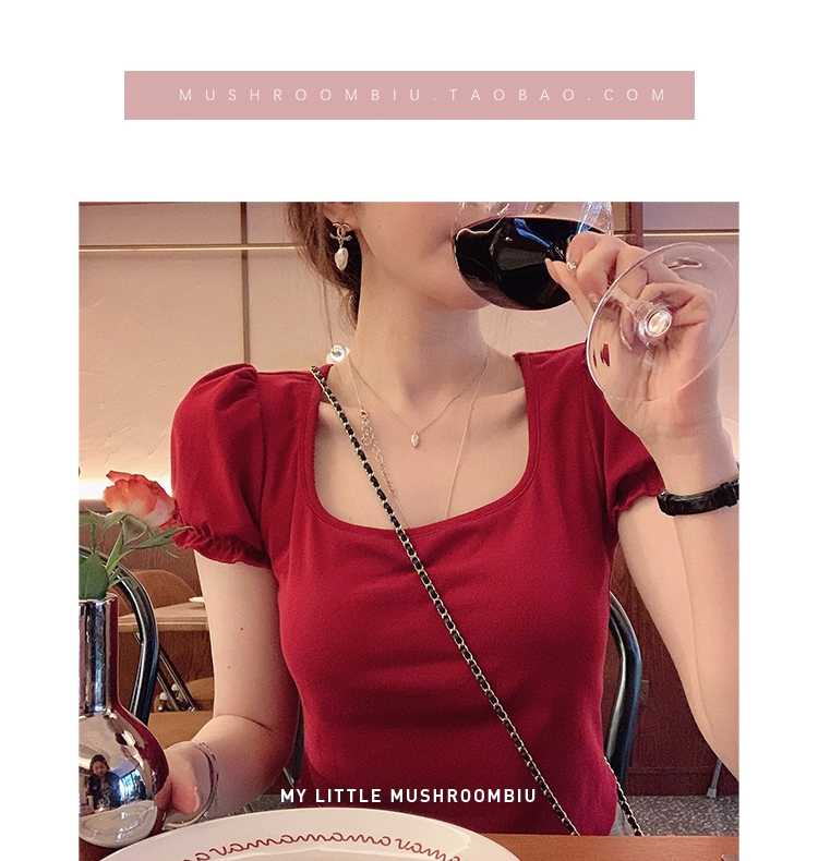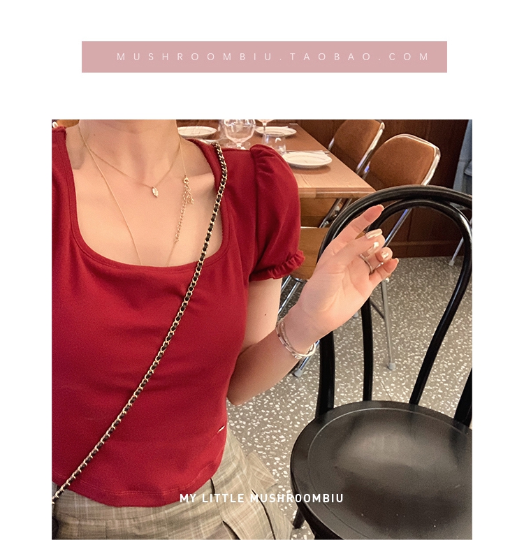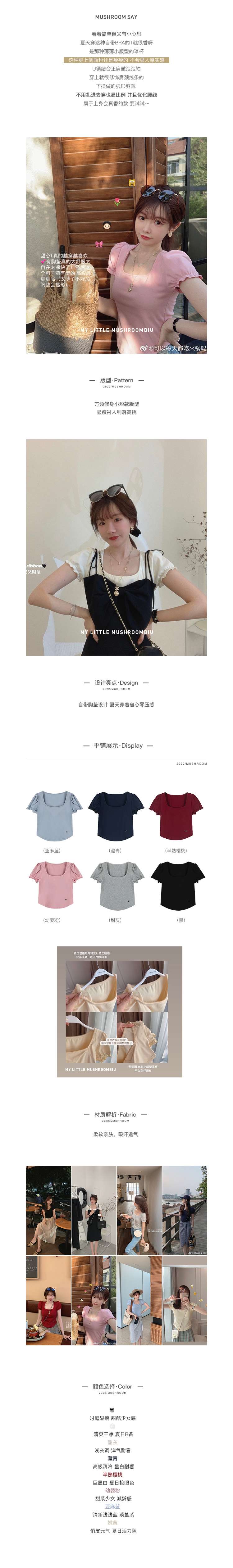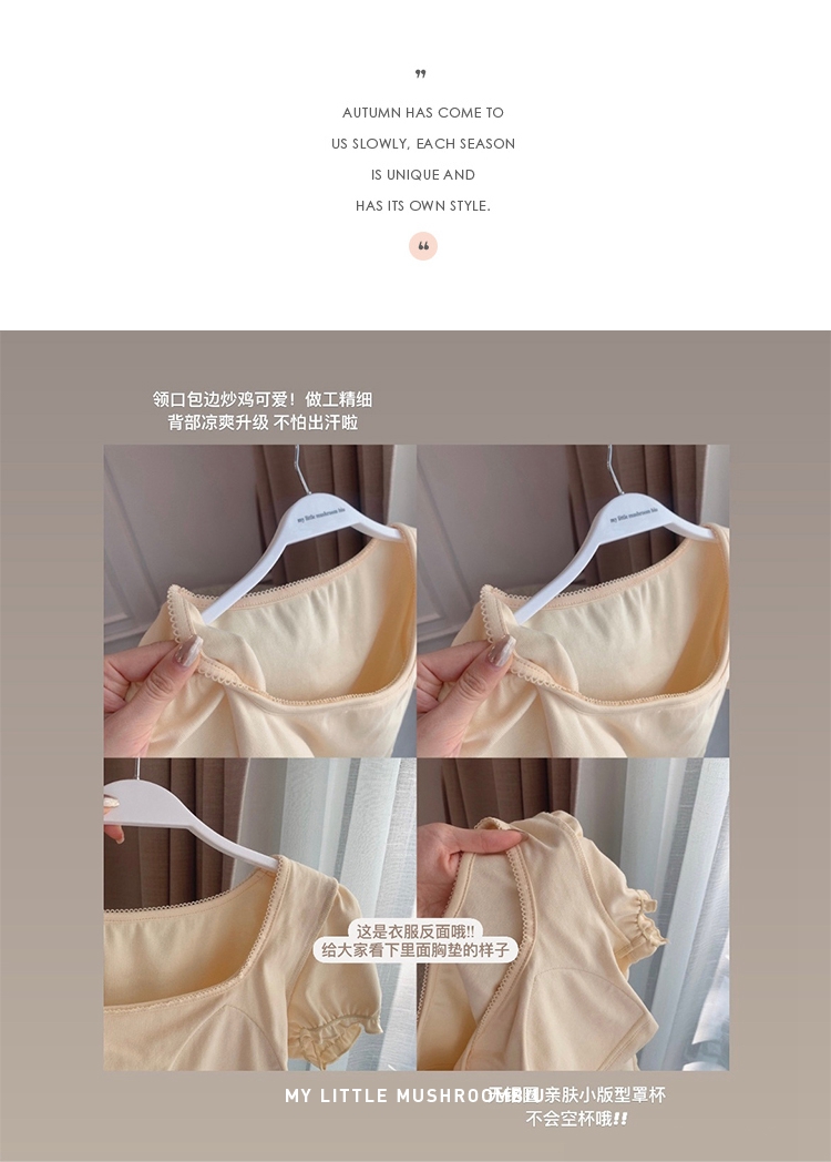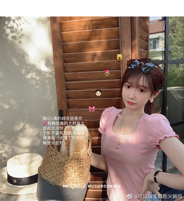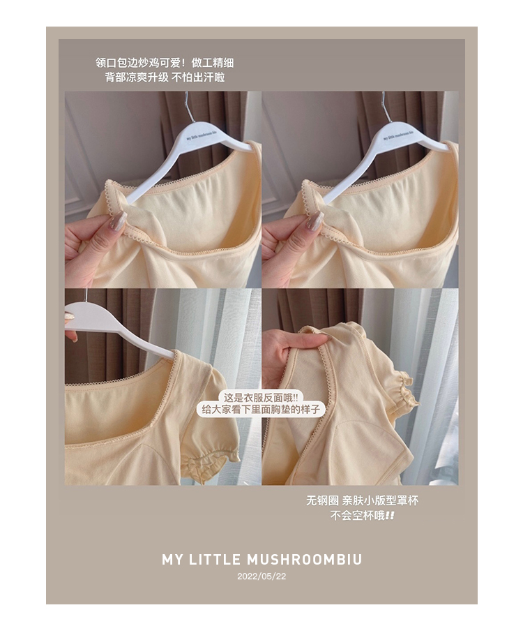 金蘑菇菇【sweetheart甜心t】无钢圈免文胸一体式设计感方领短袖t