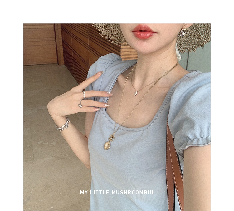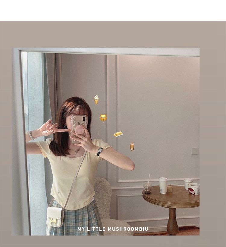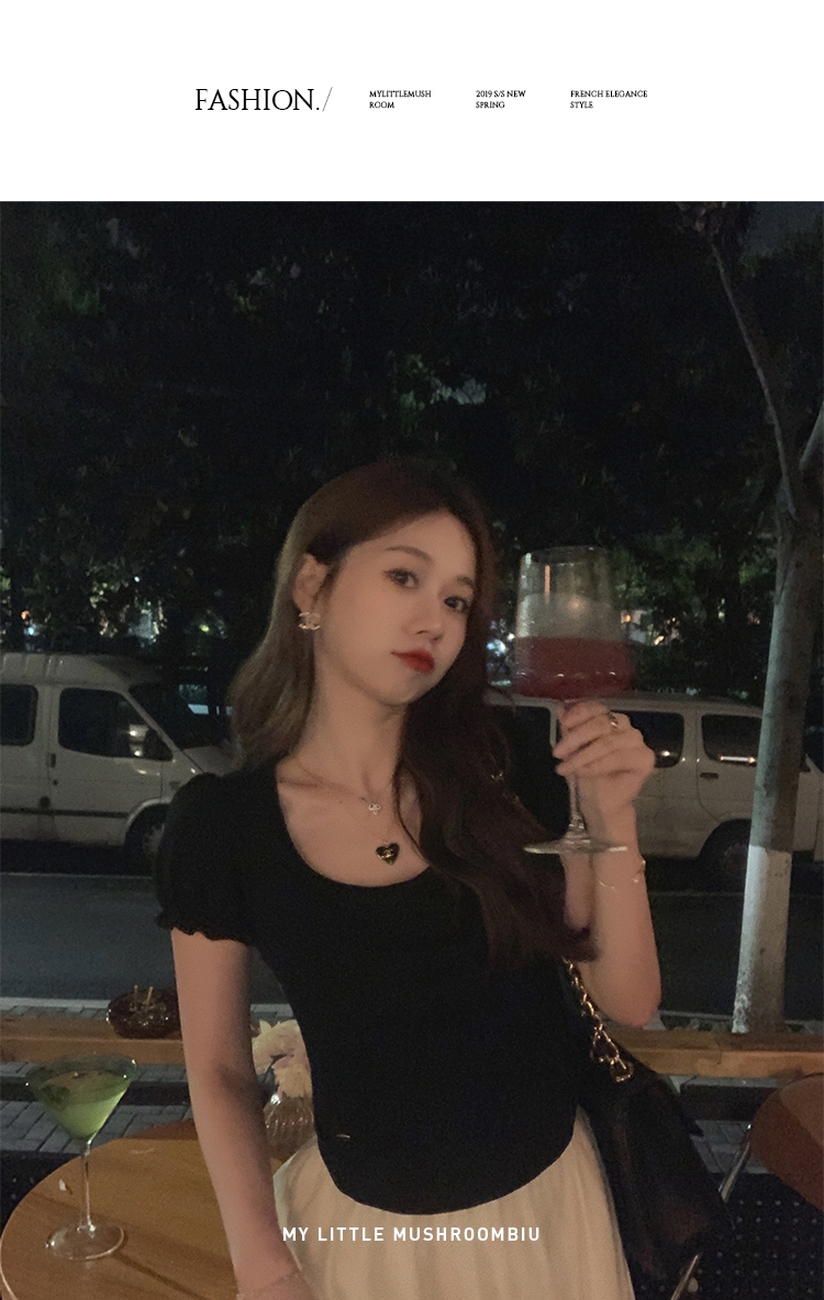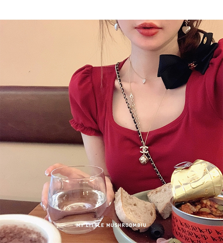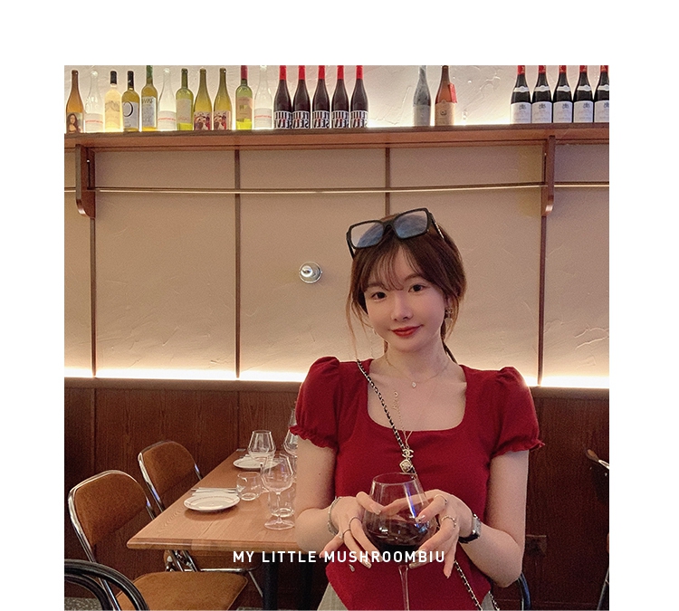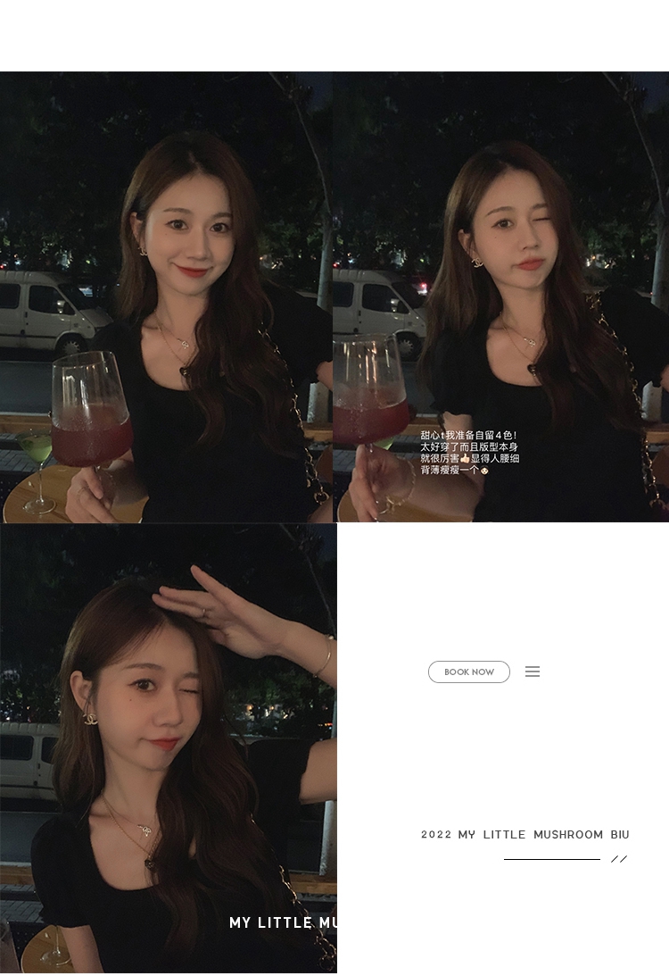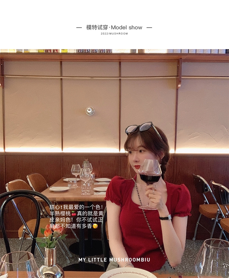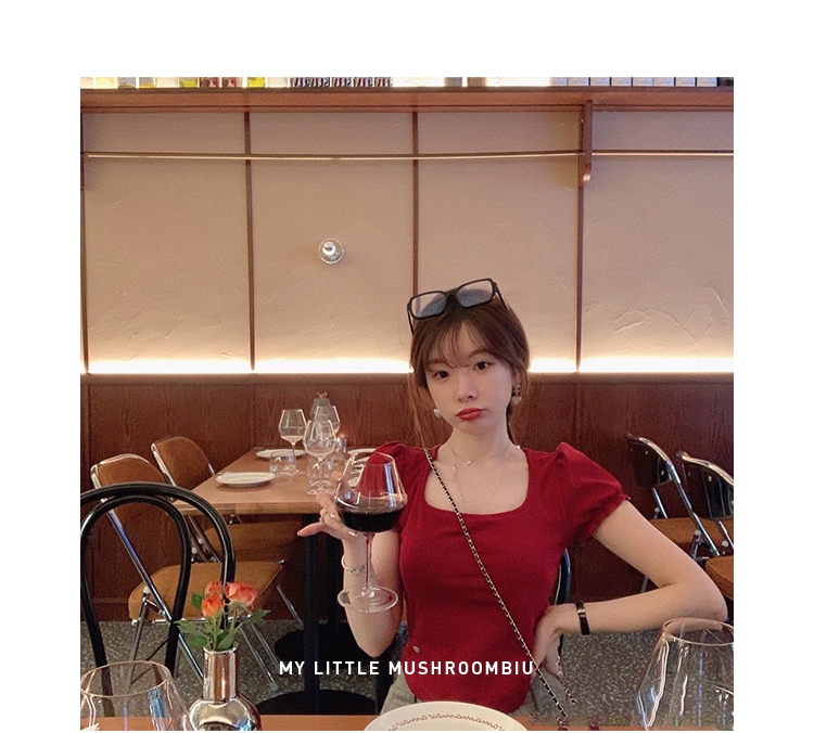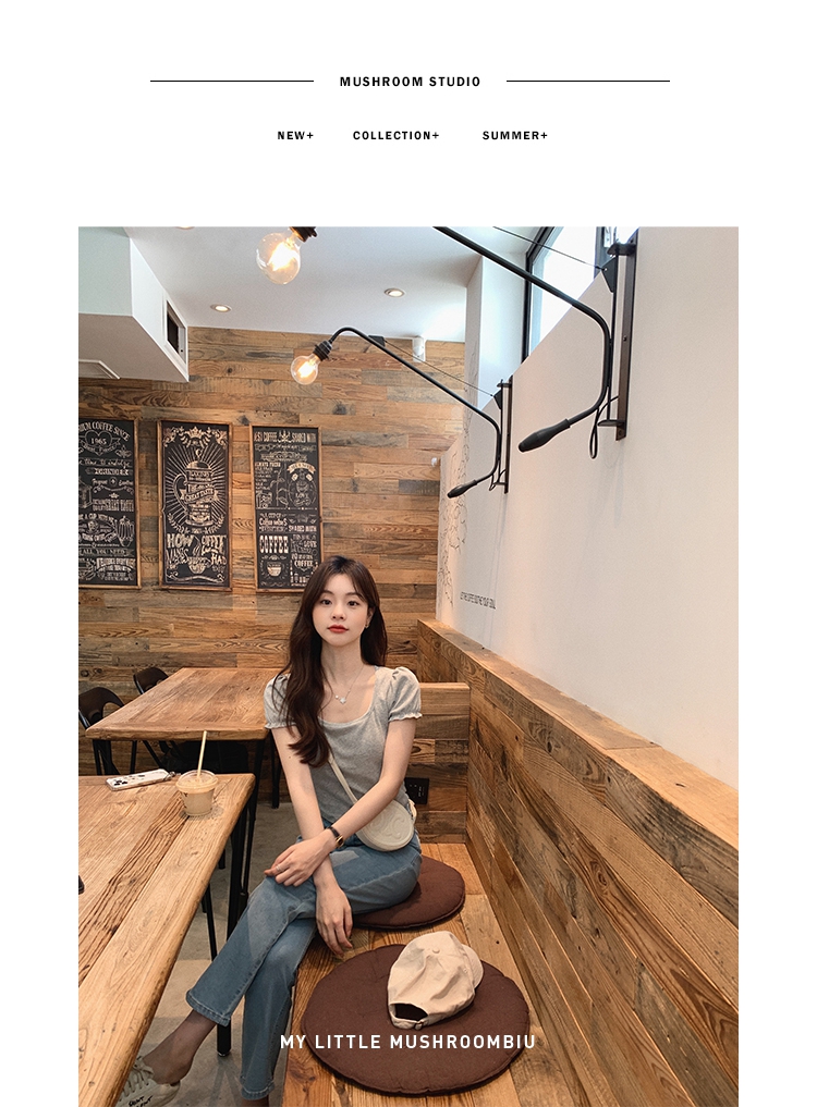 金蘑菇菇【sweetheart甜心t】无钢圈免文胸一体式设计感方领短袖t