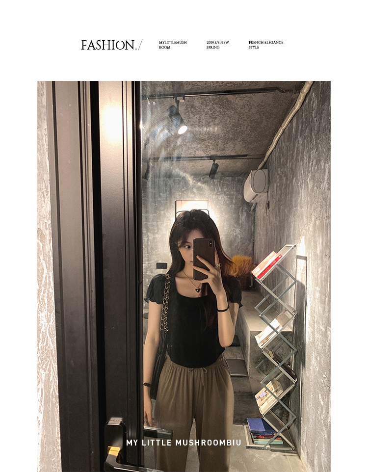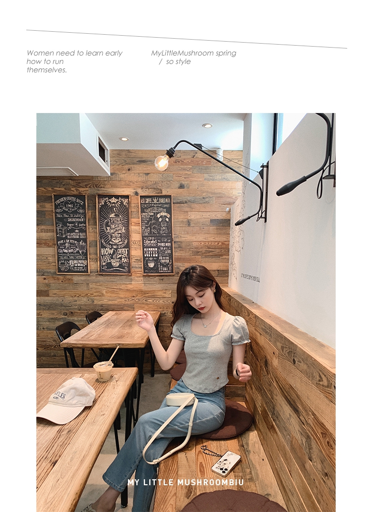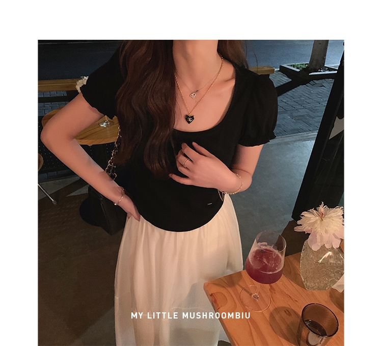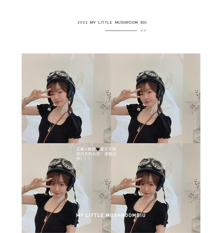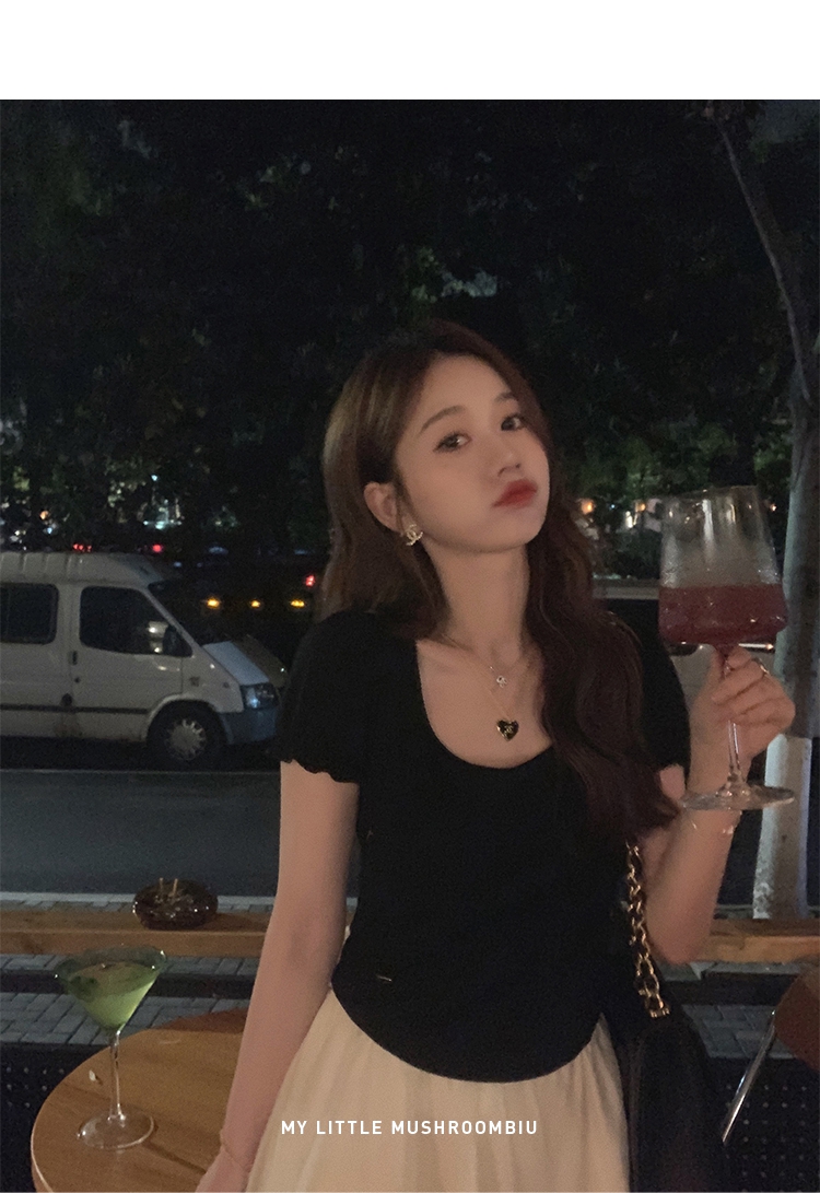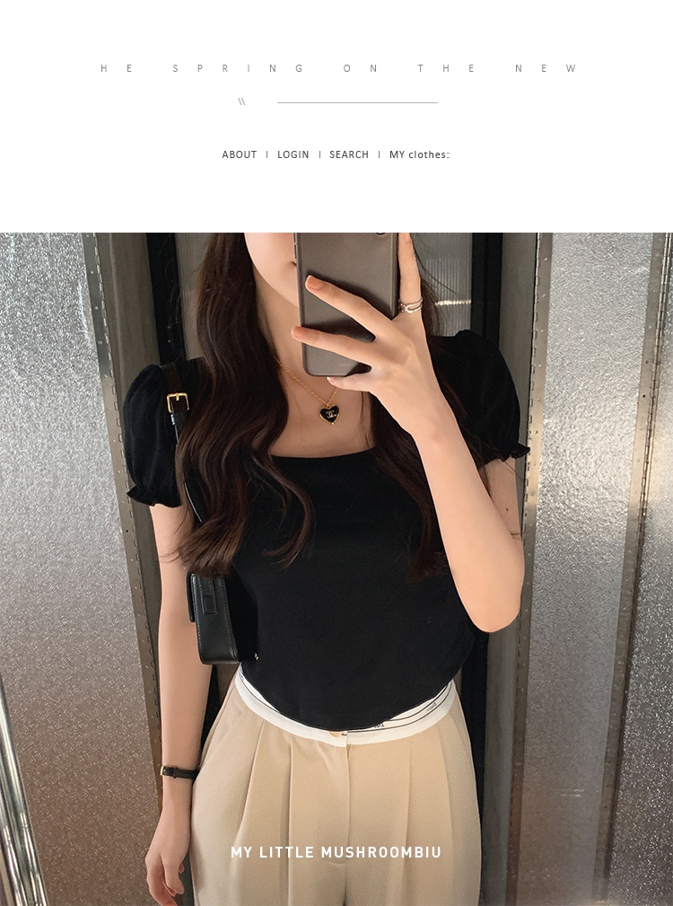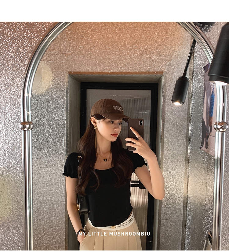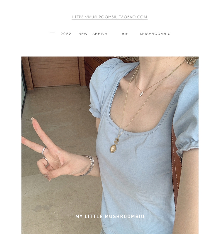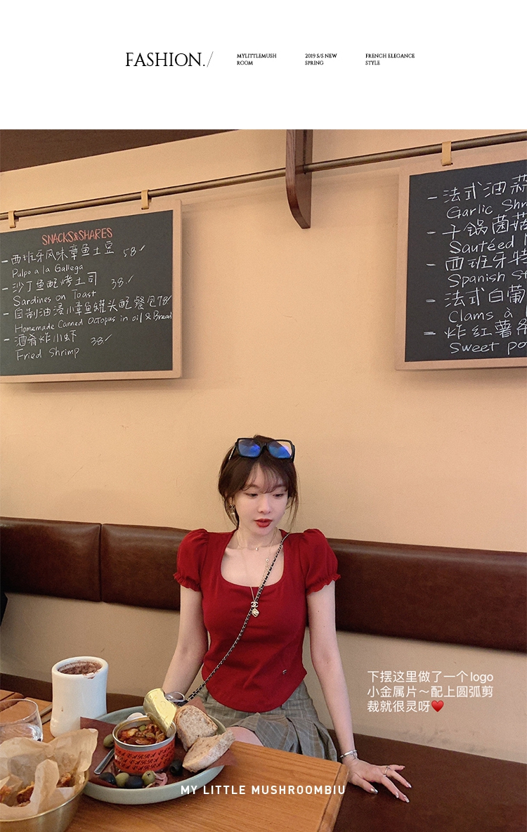 金蘑菇菇【sweetheart甜心t】无钢圈免文胸一体式设计感方领短袖t
