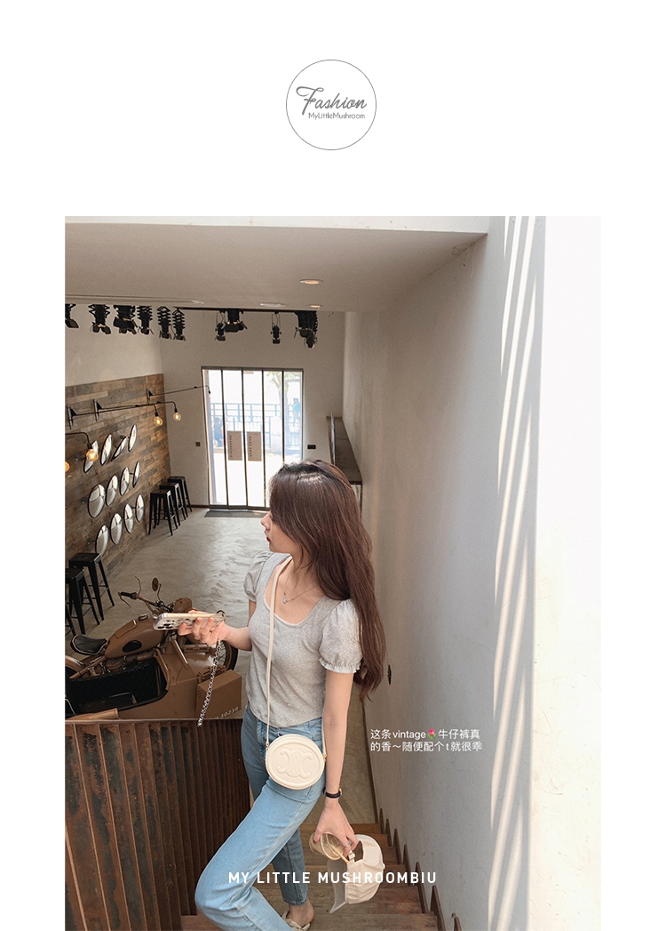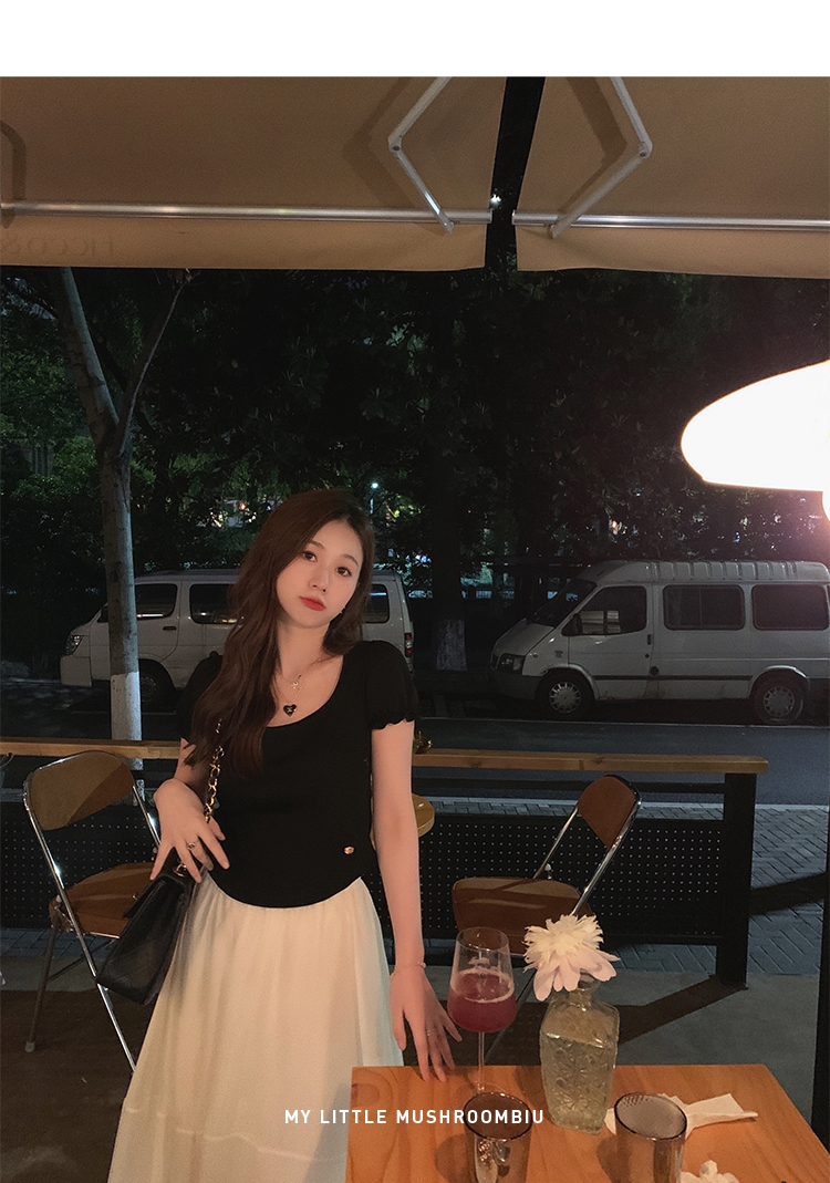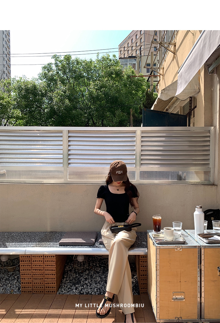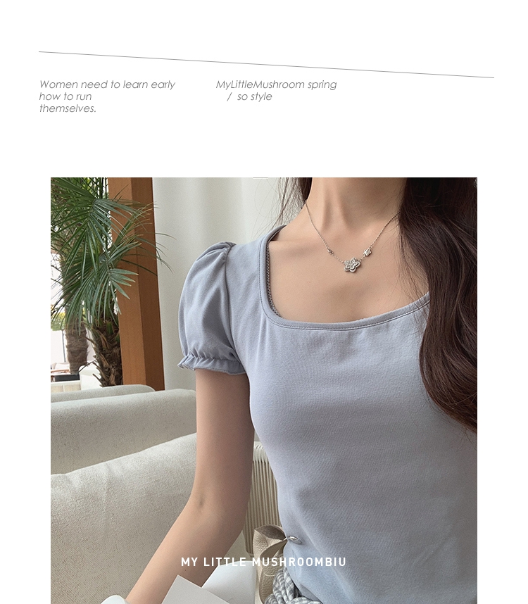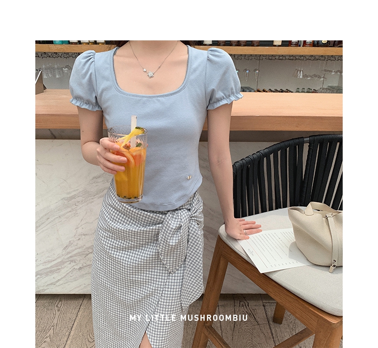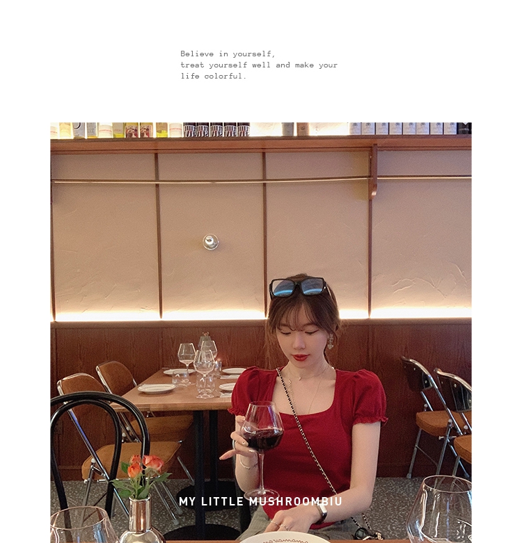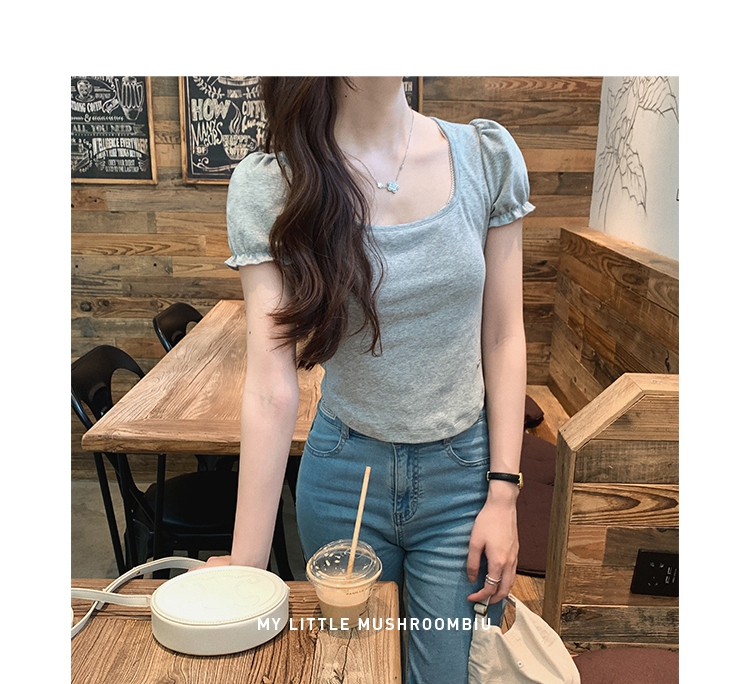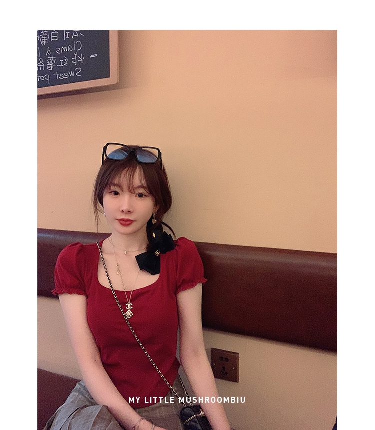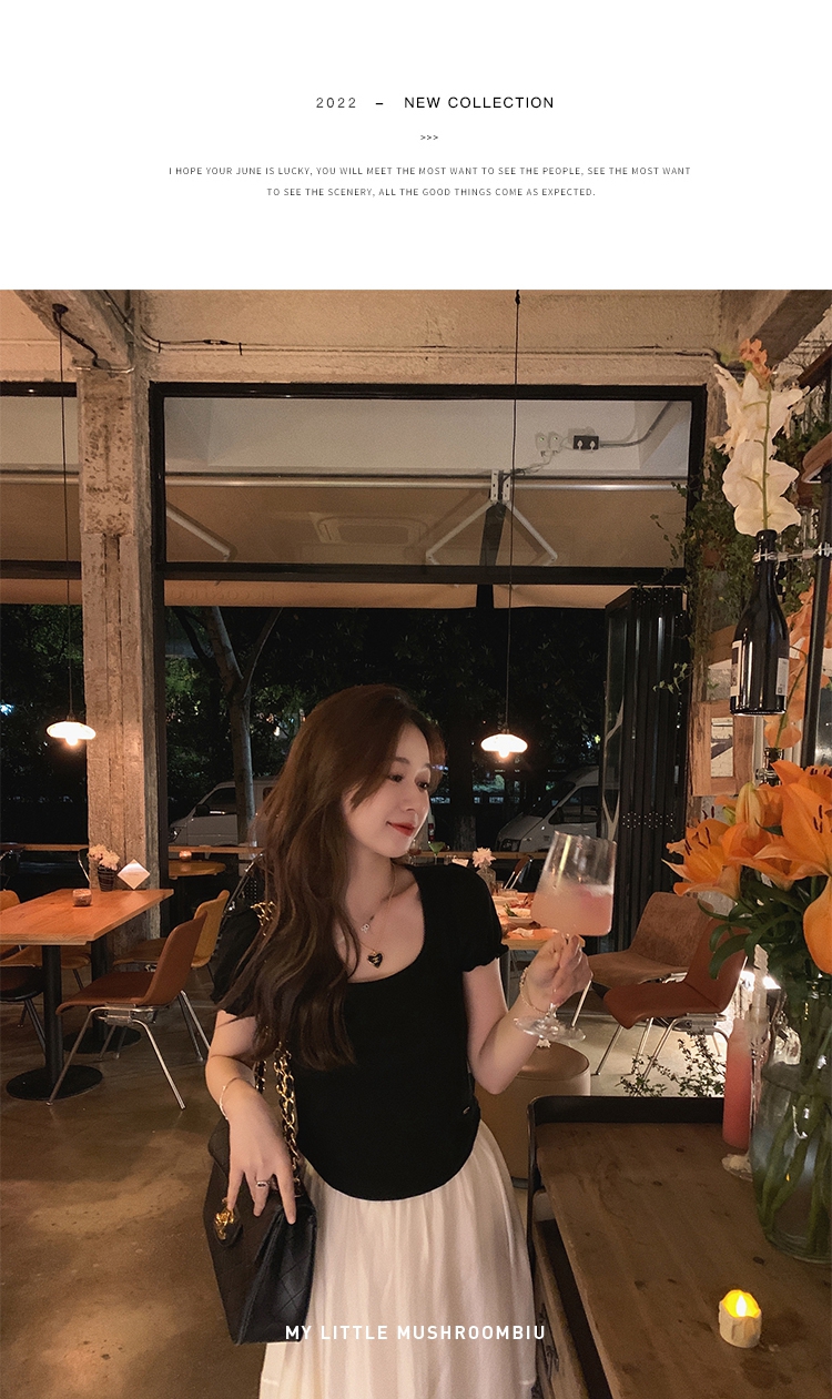 金蘑菇菇【sweetheart甜心t】无钢圈免文胸一体式设计感方领短袖t