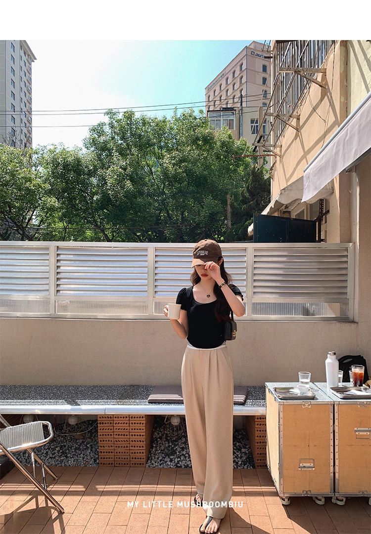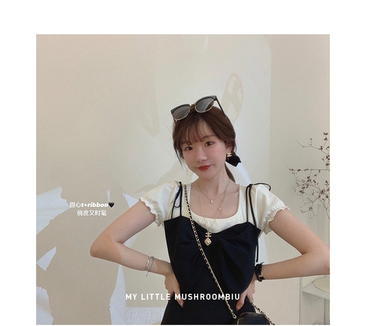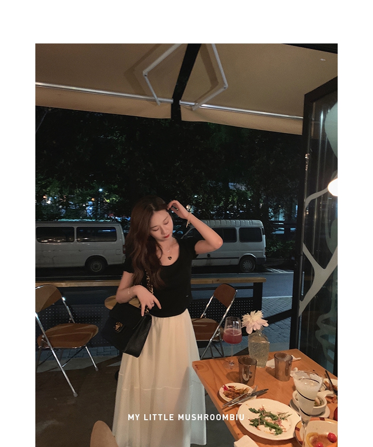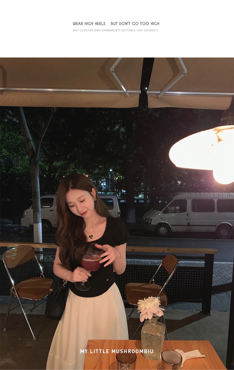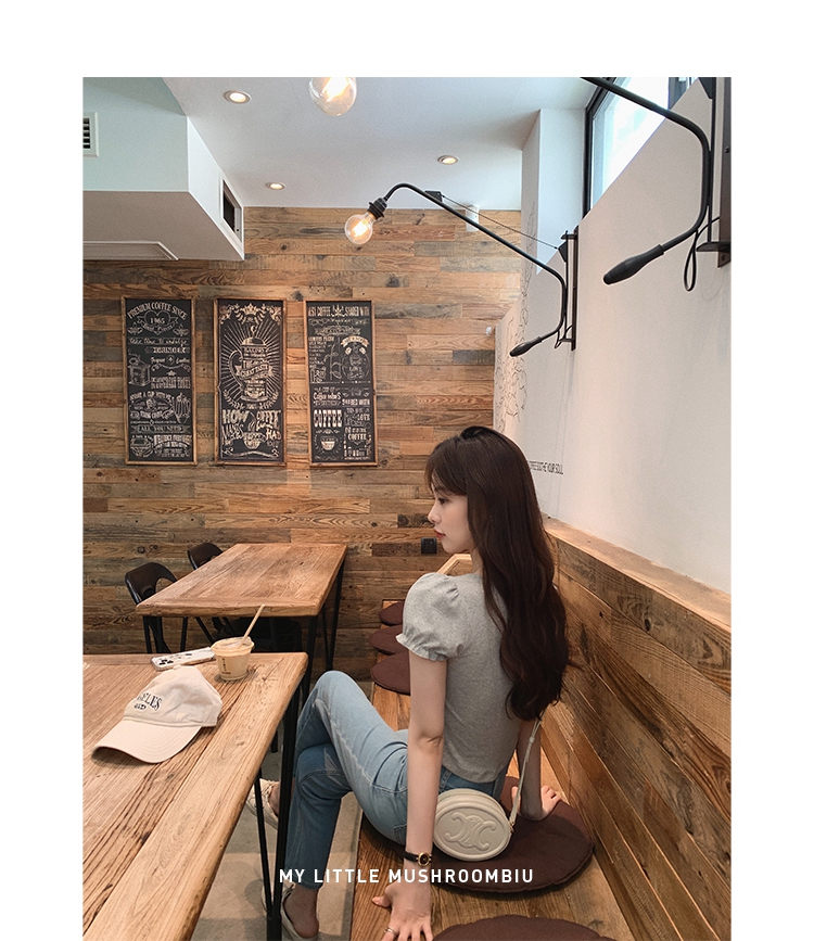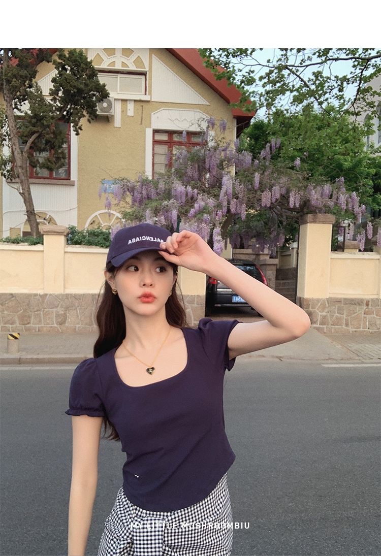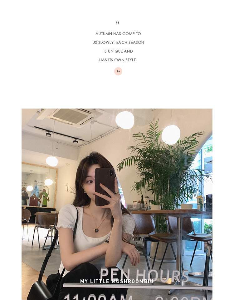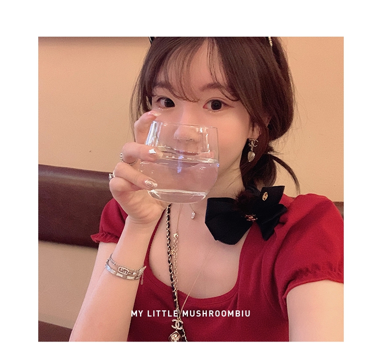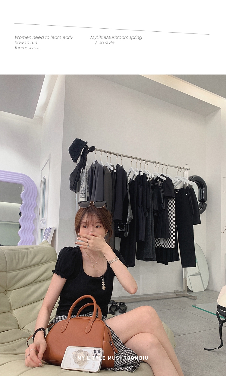 金蘑菇菇【sweetheart甜心t】无钢圈免文胸一体式设计感方领短袖t