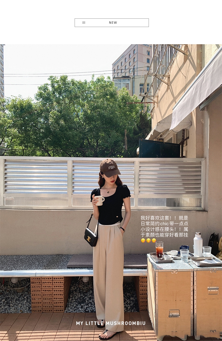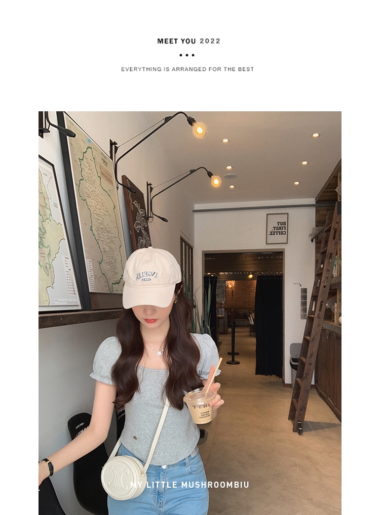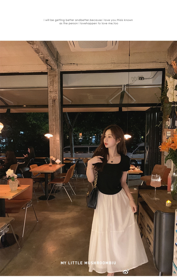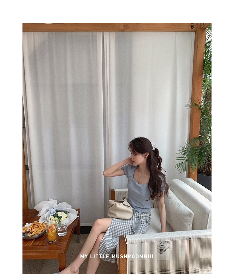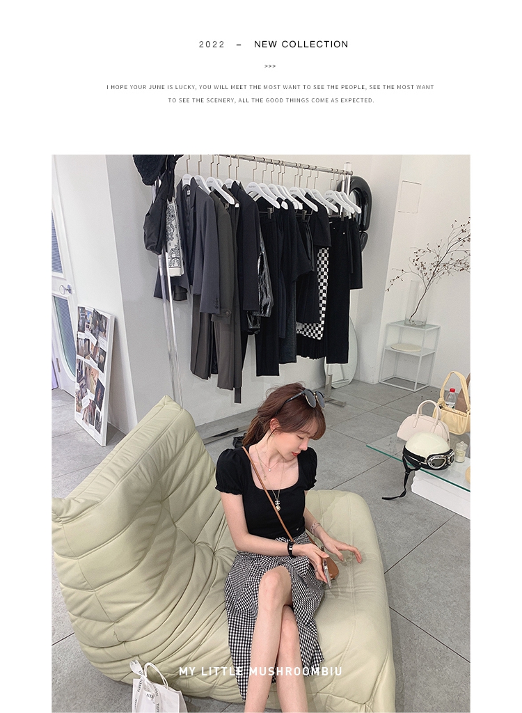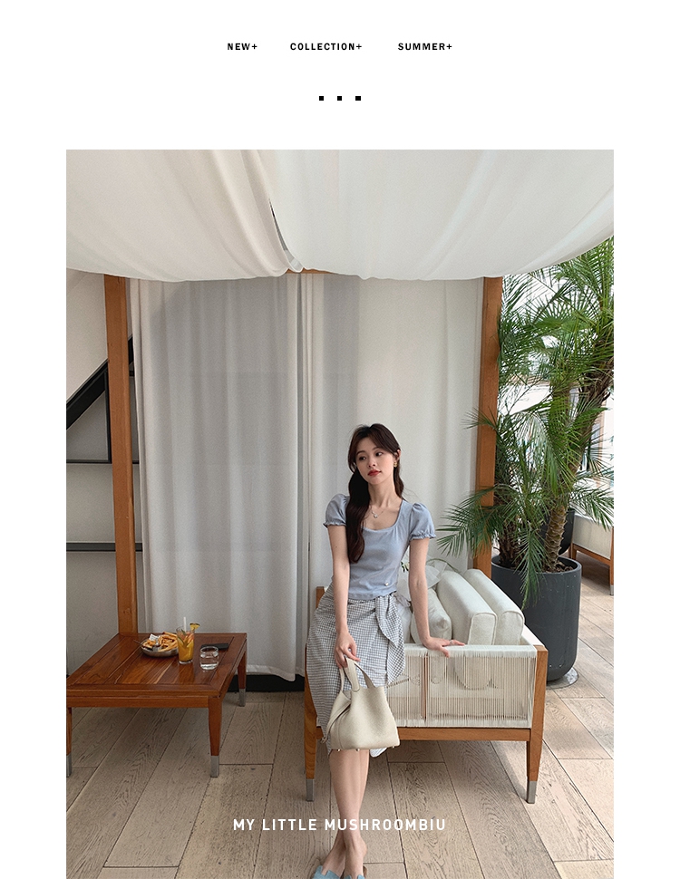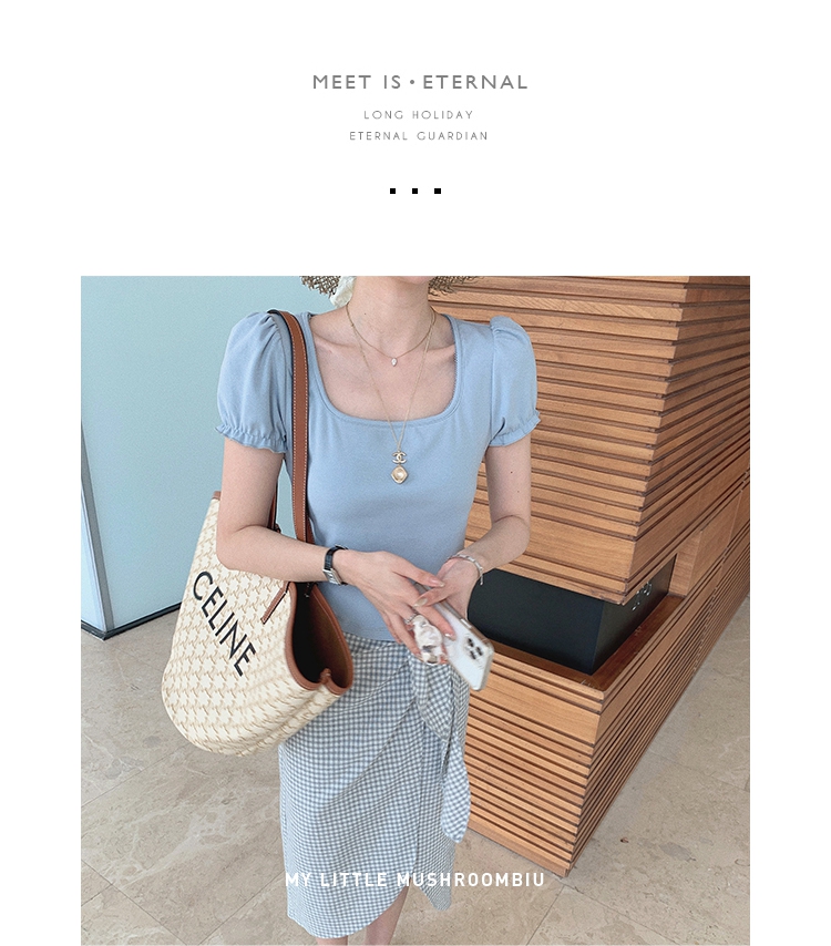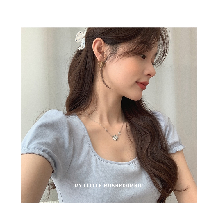 金蘑菇菇【sweetheart甜心t】无钢圈免文胸一体式设计感方领短袖t
