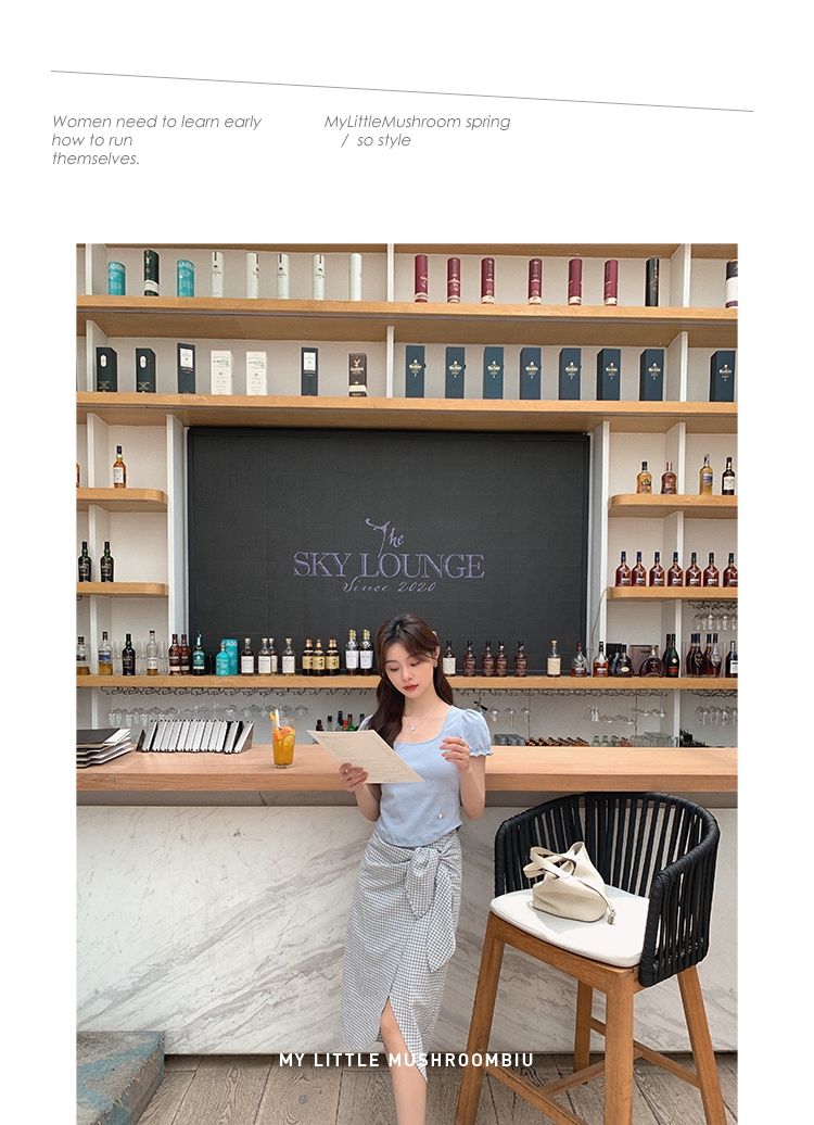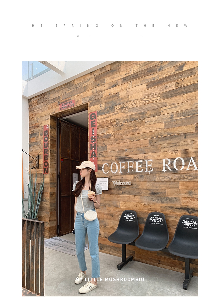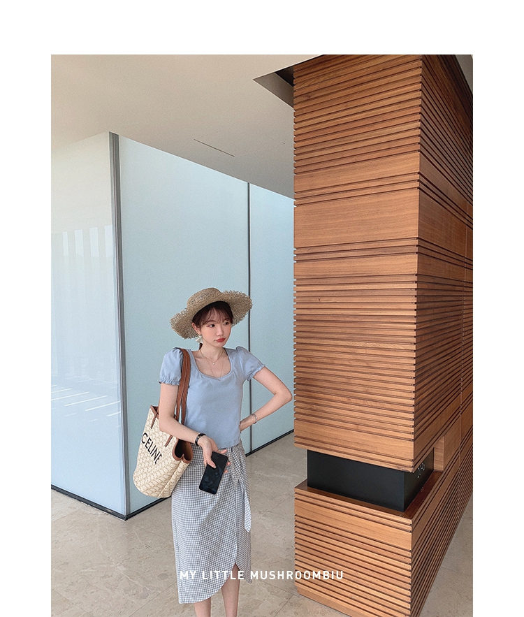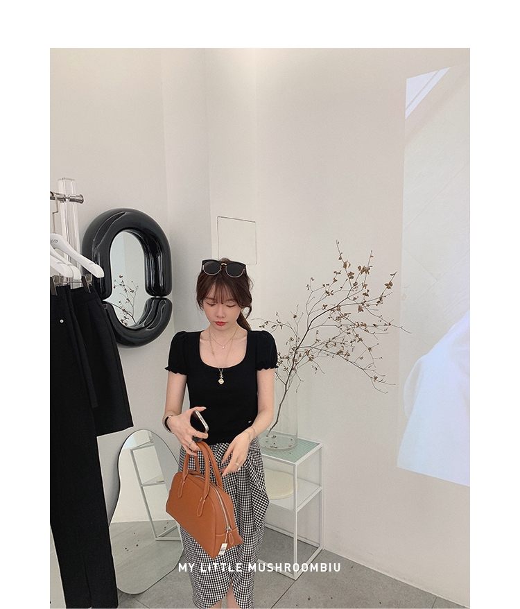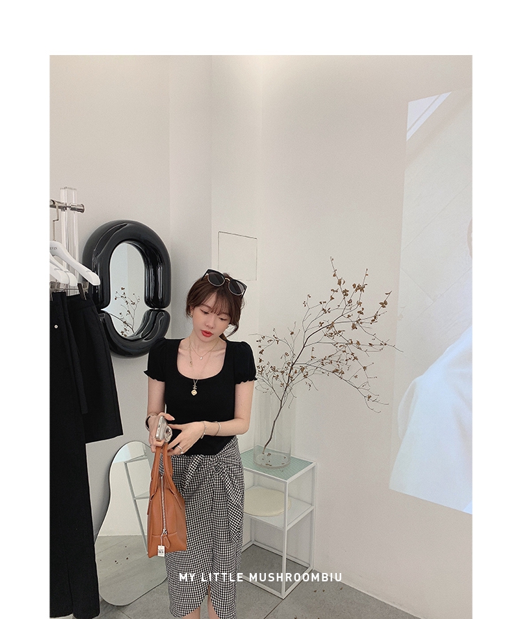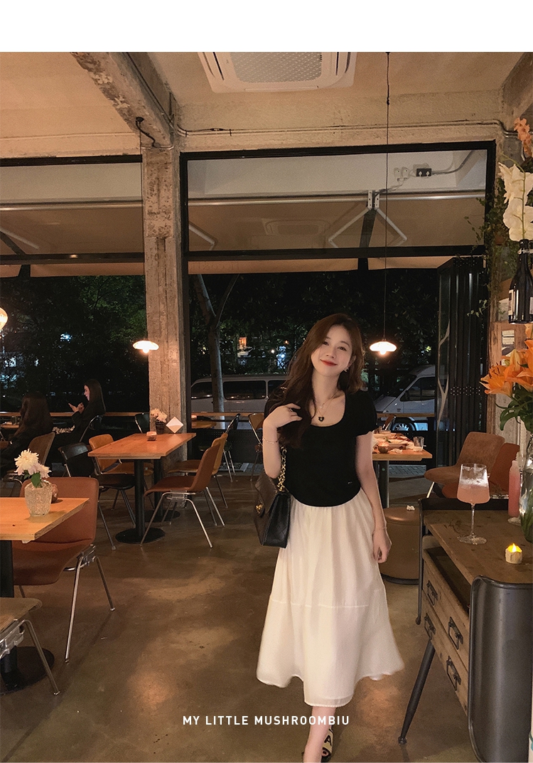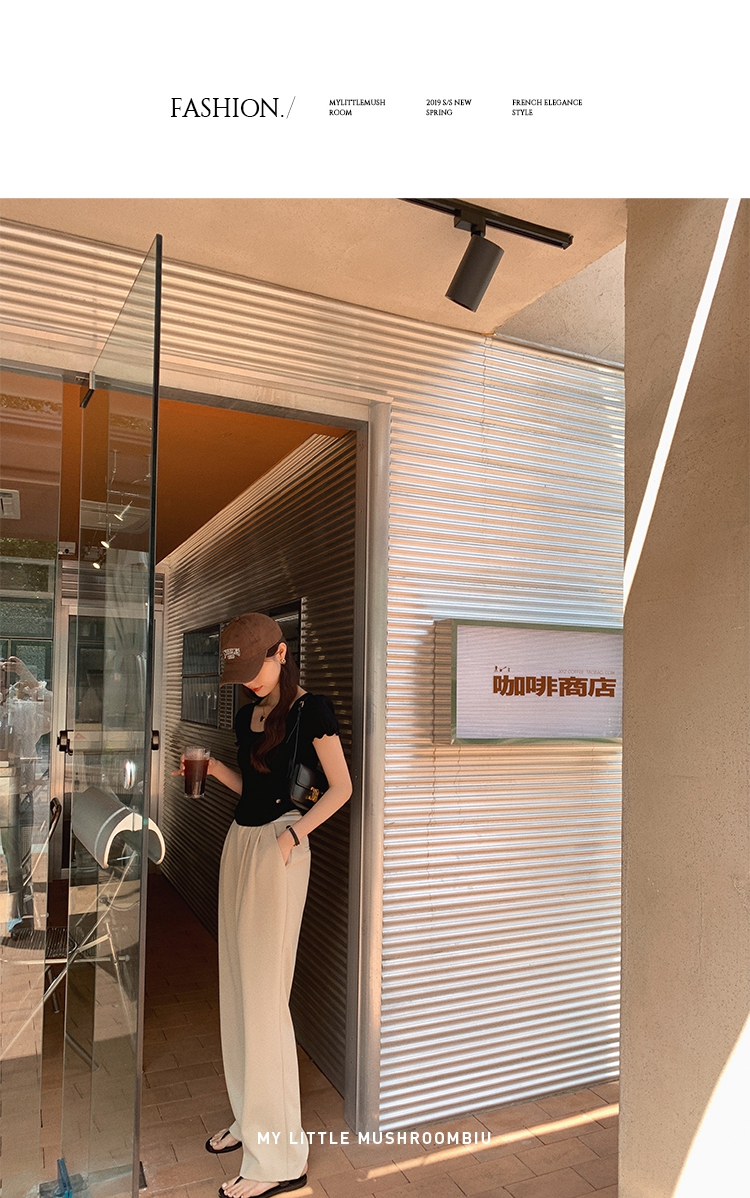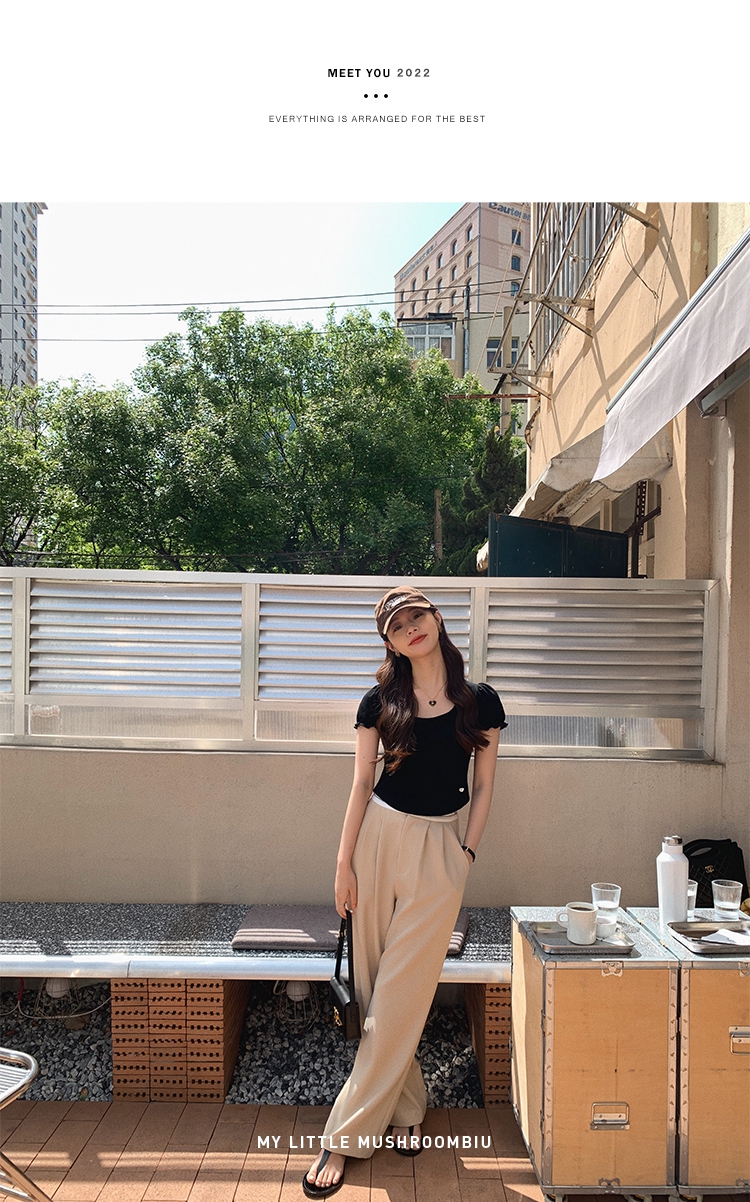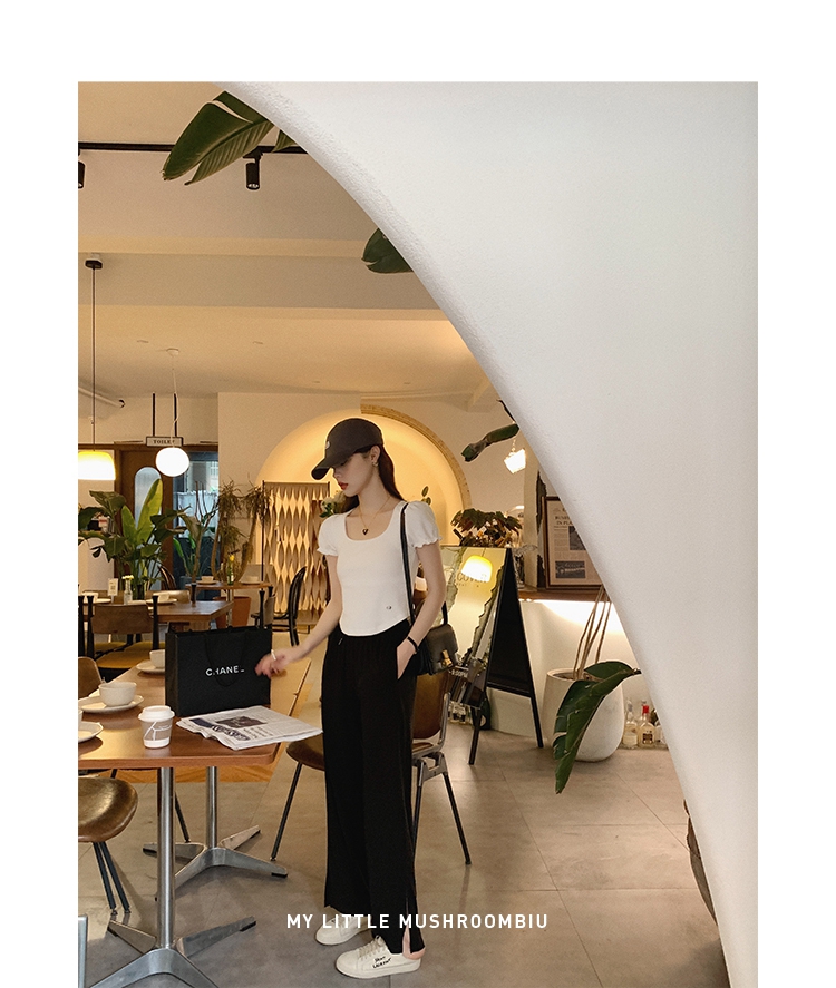 金蘑菇菇【sweetheart甜心t】无钢圈免文胸一体式设计感方领短袖t