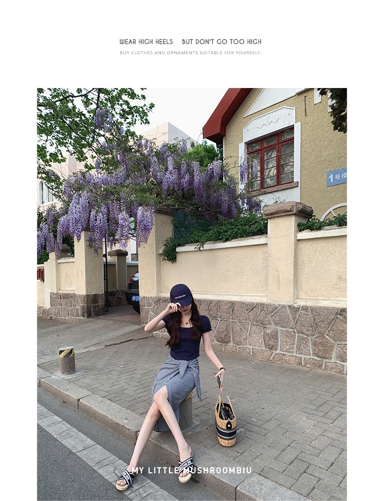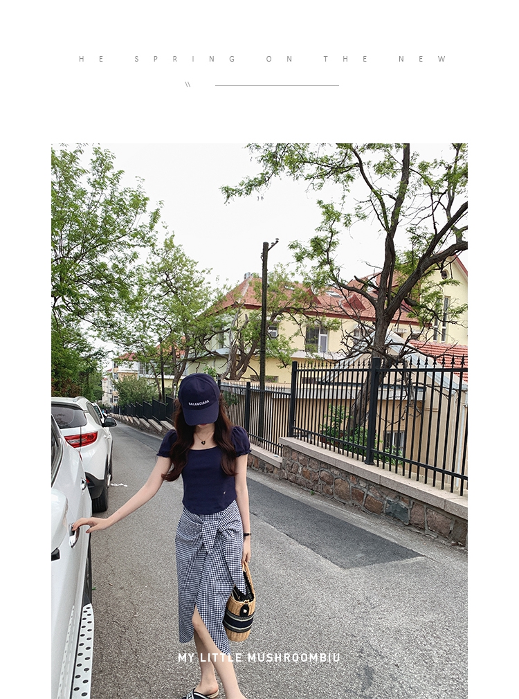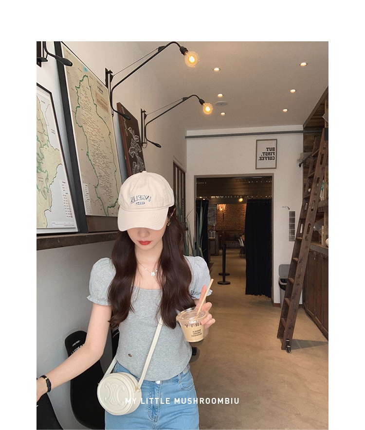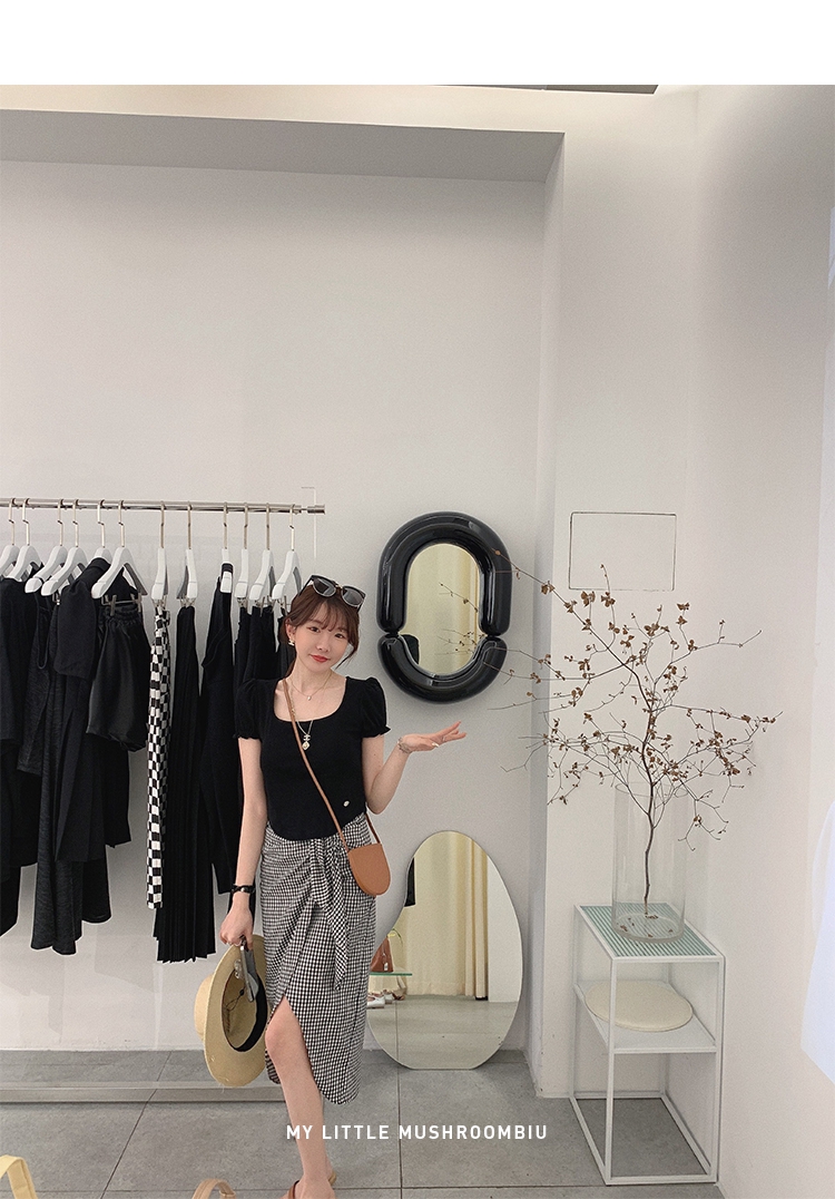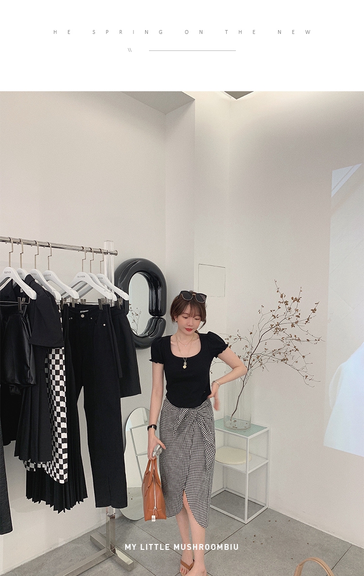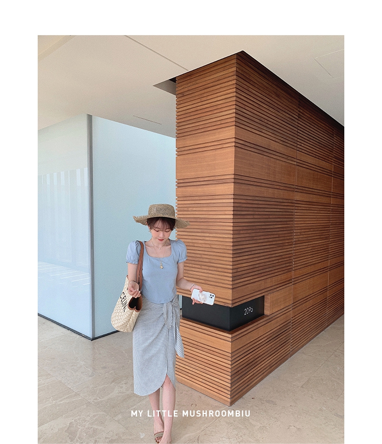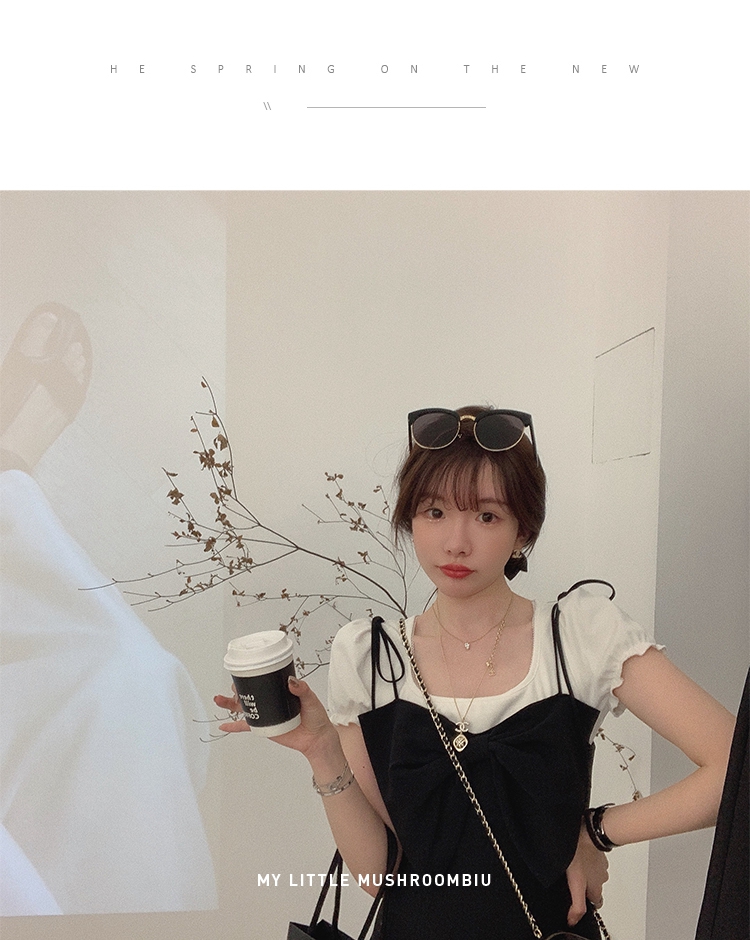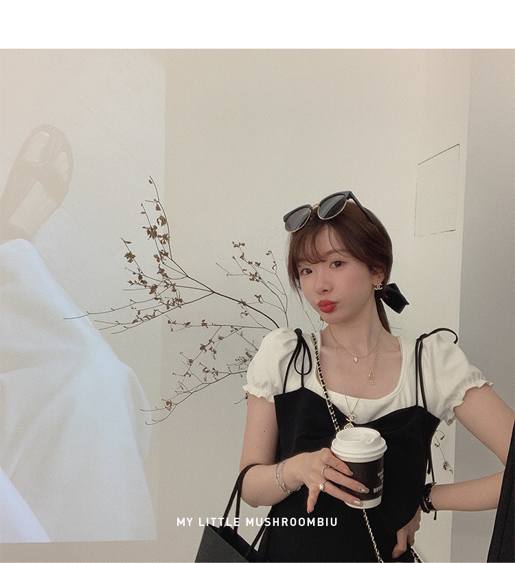 金蘑菇菇【sweetheart甜心t】无钢圈免文胸一体式设计感方领短袖t