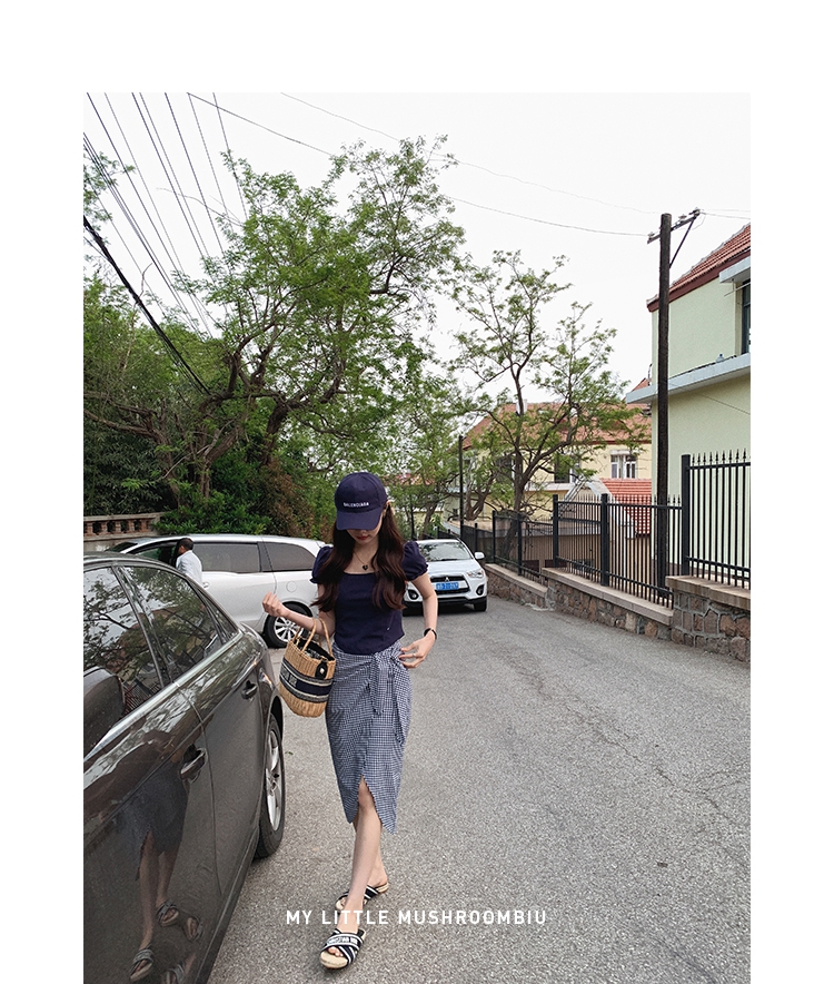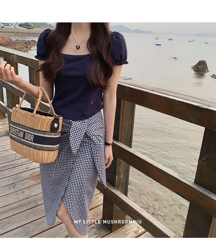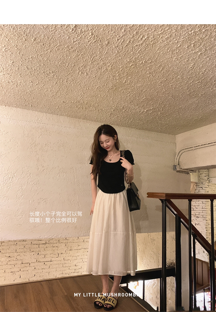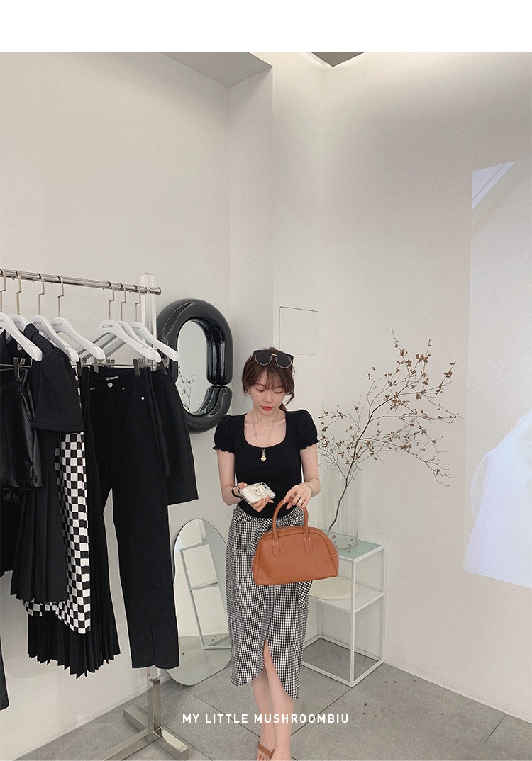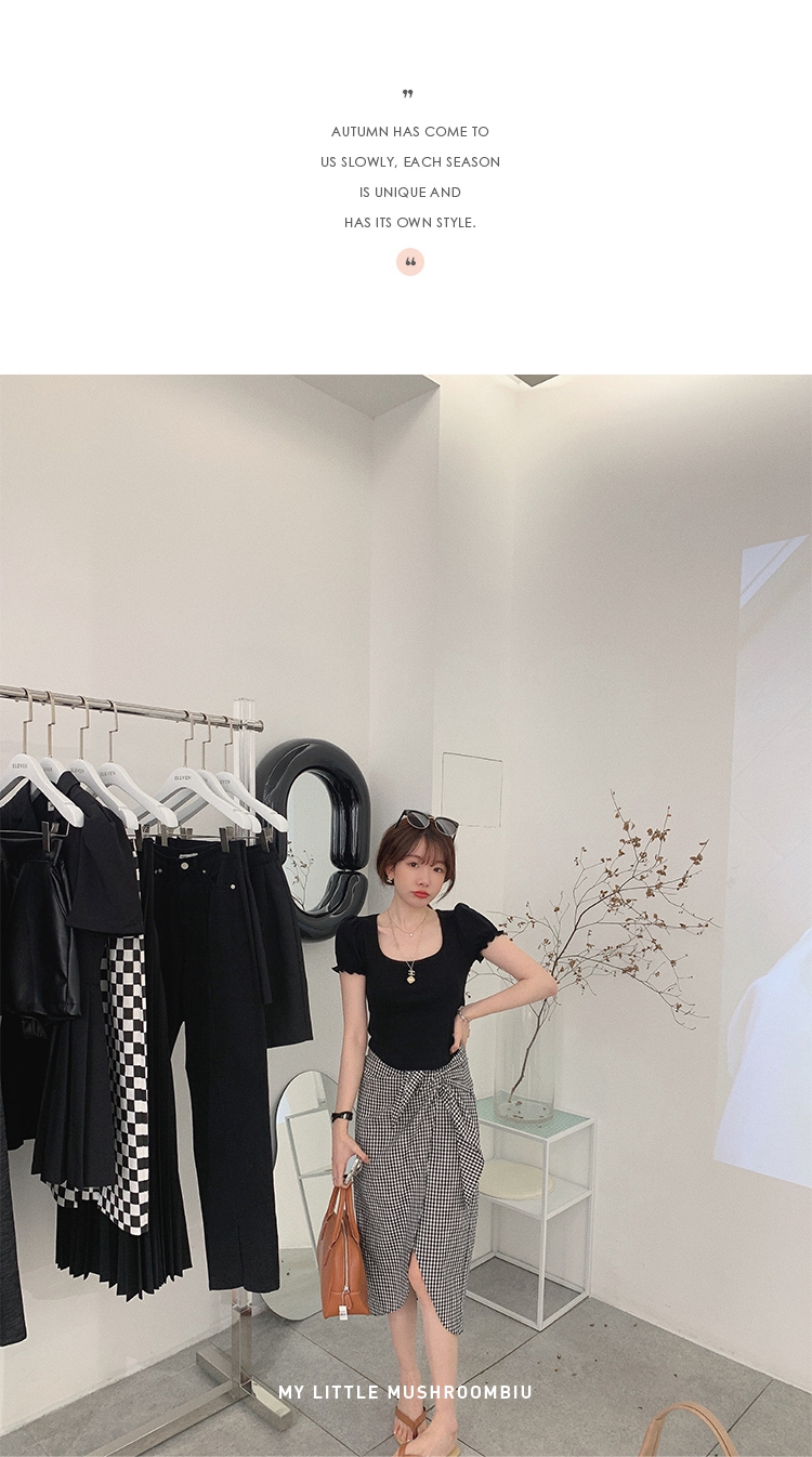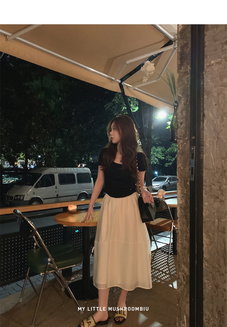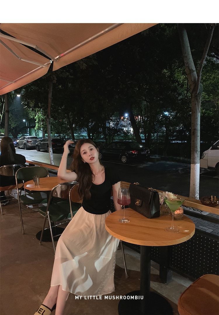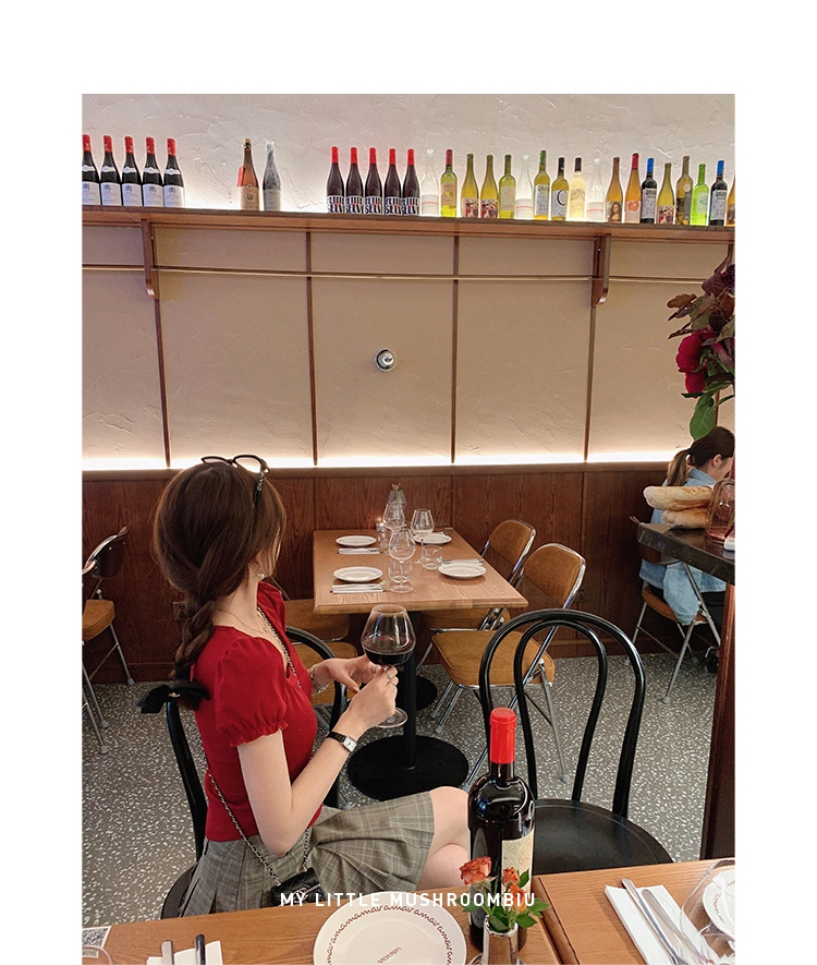 金蘑菇菇【sweetheart甜心t】无钢圈免文胸一体式设计感方领短袖t