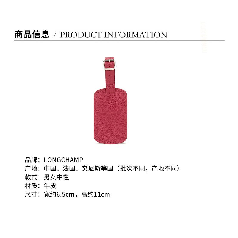 品牌:Longchamp/珑骧产地:中国、法国、突尼斯等国(批次不同,产地不同)款式:男女中性产品颜色:玫红色材质:牛皮产品尺寸:宽约6.5cm,高约11cm(不含挂带长度)(注:所有尺寸皆为手工测量,存在误差,请以实物为准!)