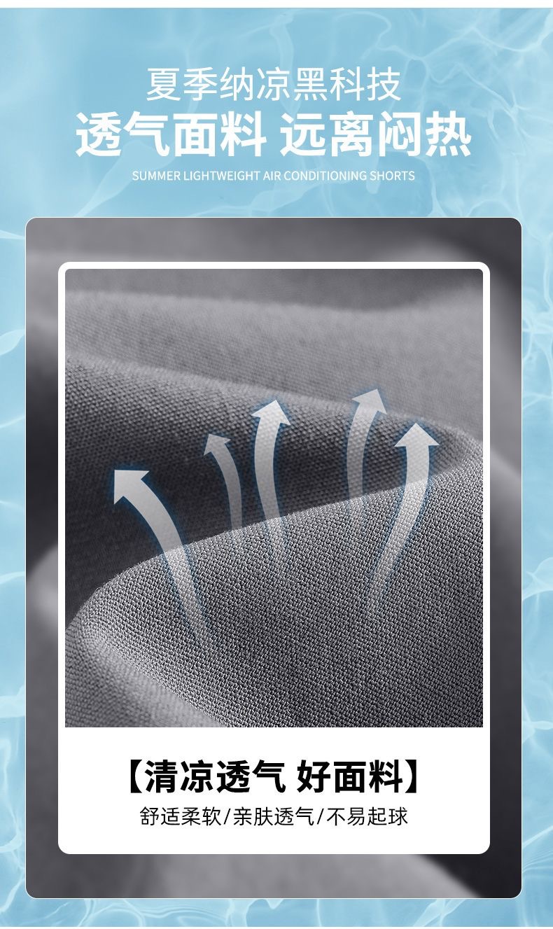 【轻薄空调短裤】降温速干黑科技面料,冰丝超薄清凉透气,细致走线大口袋设计,夏季薄款男士运动中裤 宽松胖子黑色冰丝五分男裤子短裤
