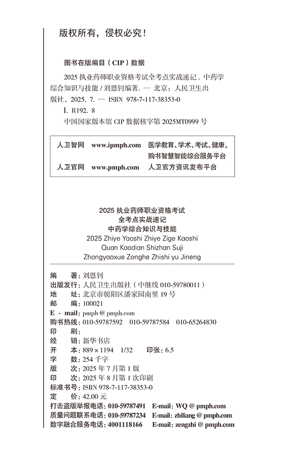 书名:2025执业药师职业资格考试 全考点实战速记 中药学综合知识与技能(考试用书/执业药师/2025版)