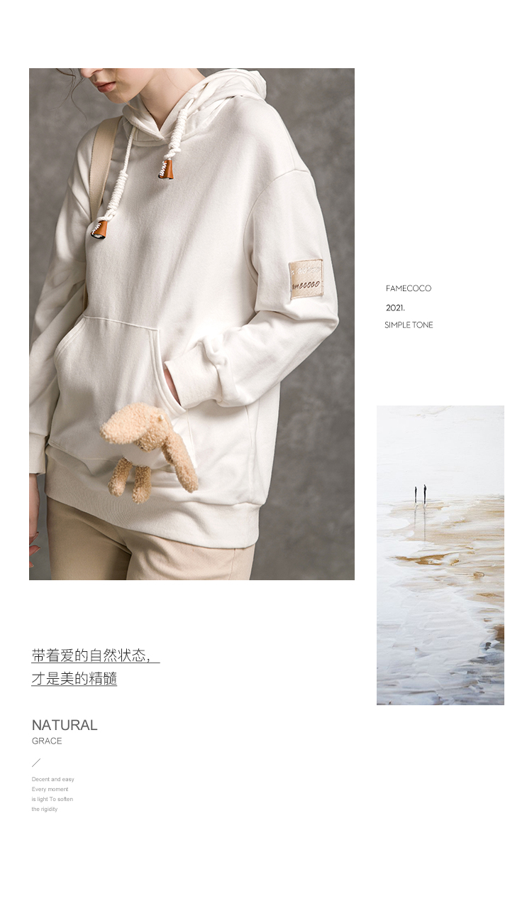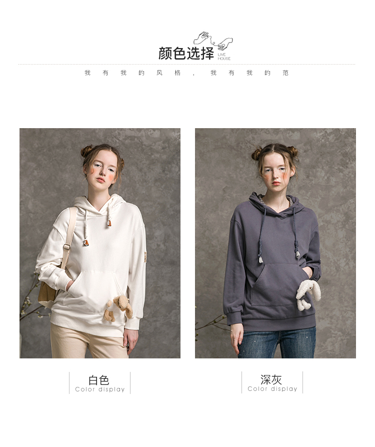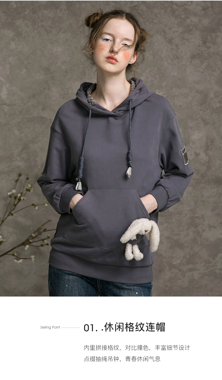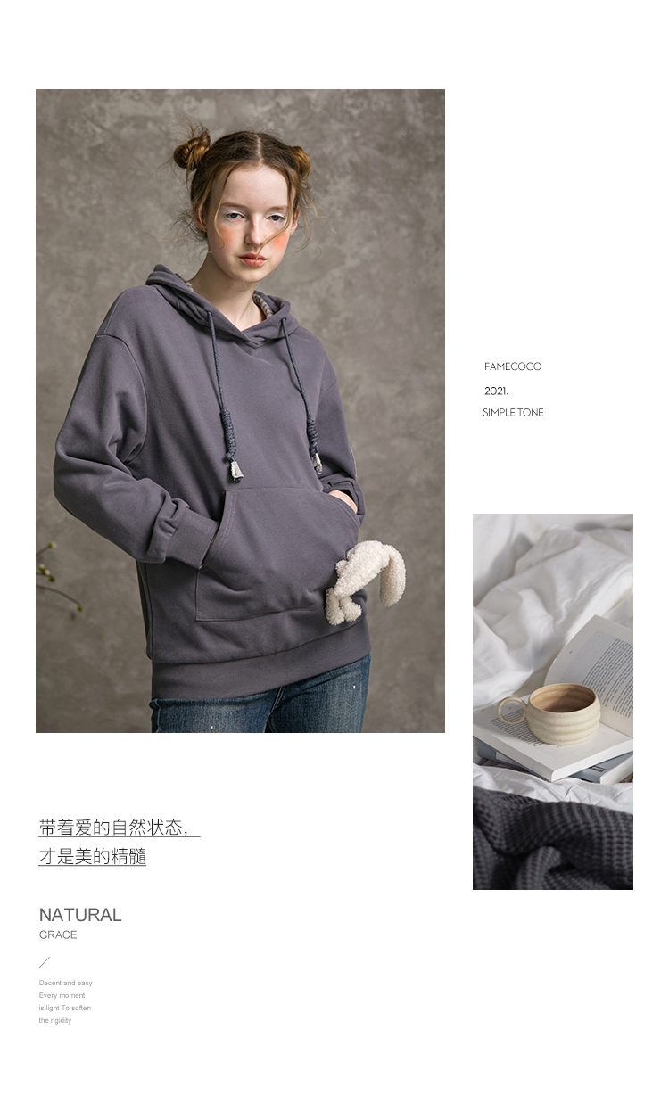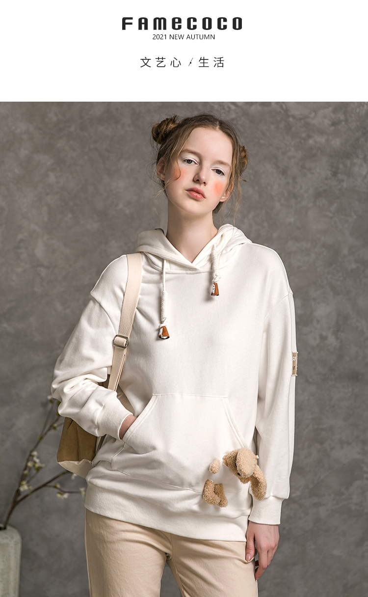 famecoco范可儿连帽卫衣女秋季长袖宽松韩版F216BL004