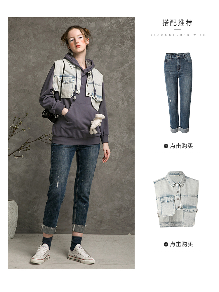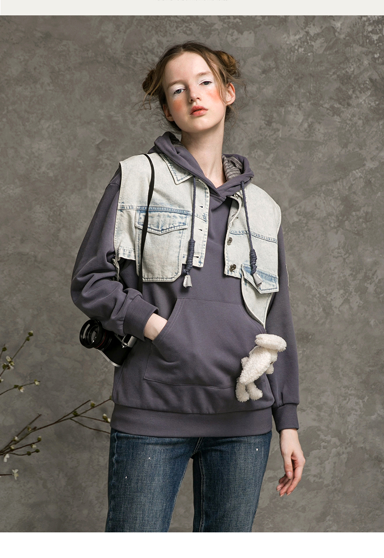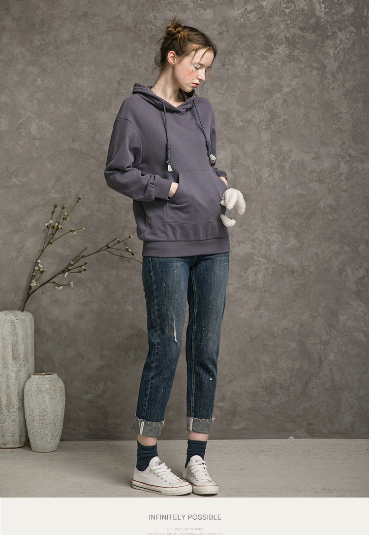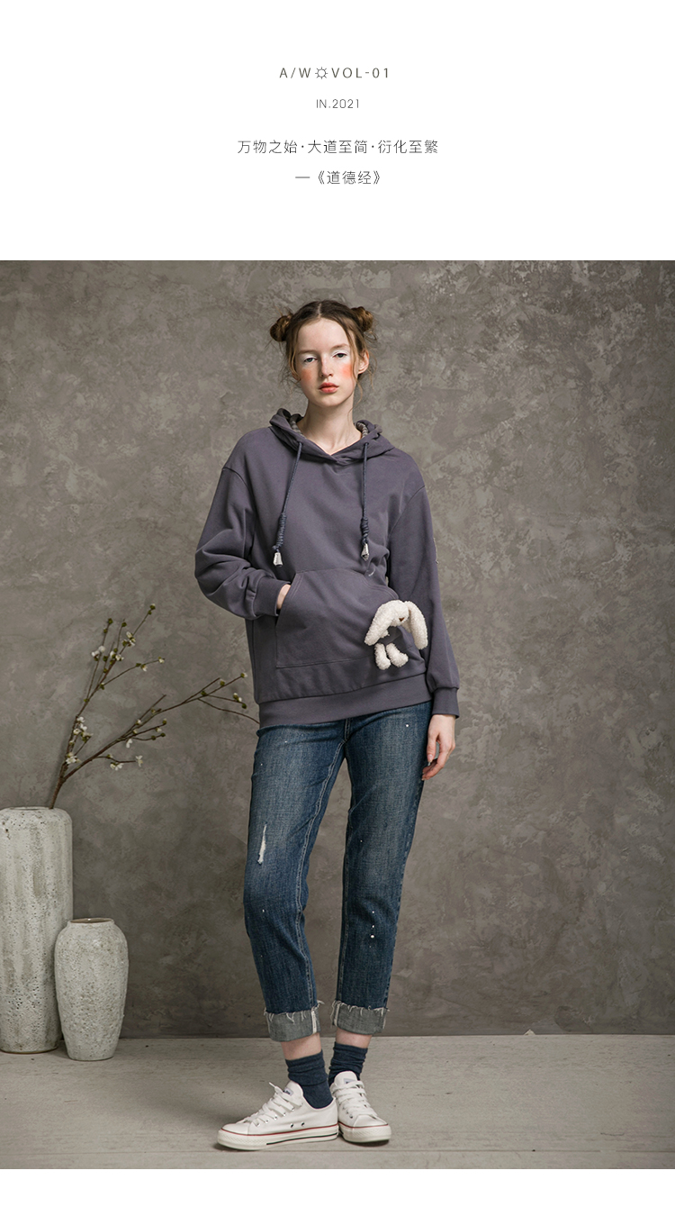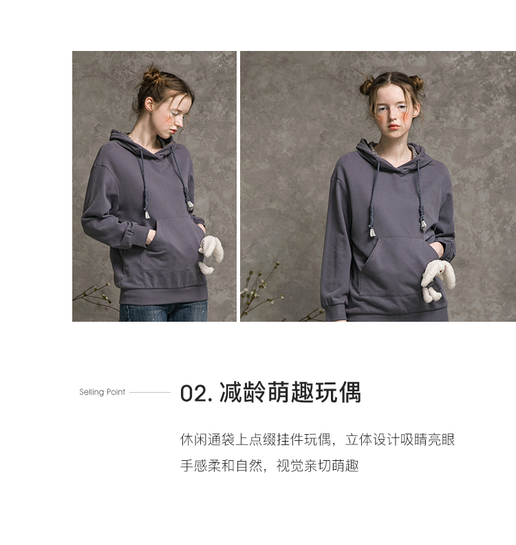 famecoco范可儿连帽卫衣女秋季长袖宽松韩版F216BL004